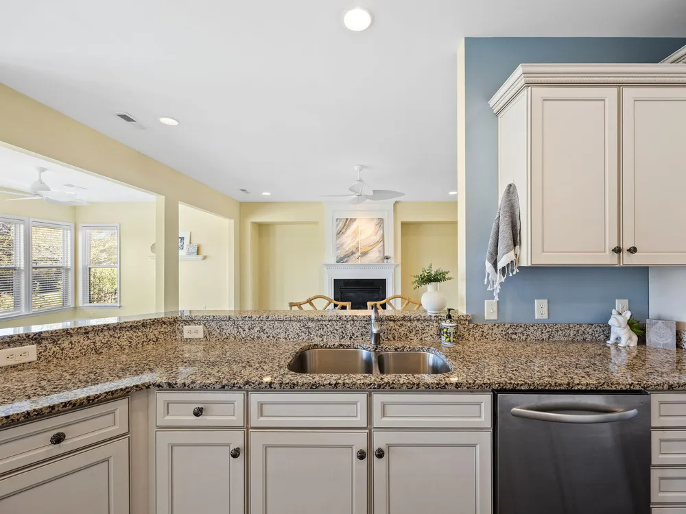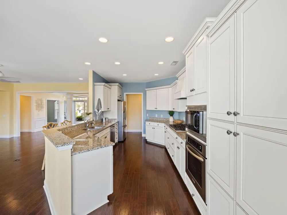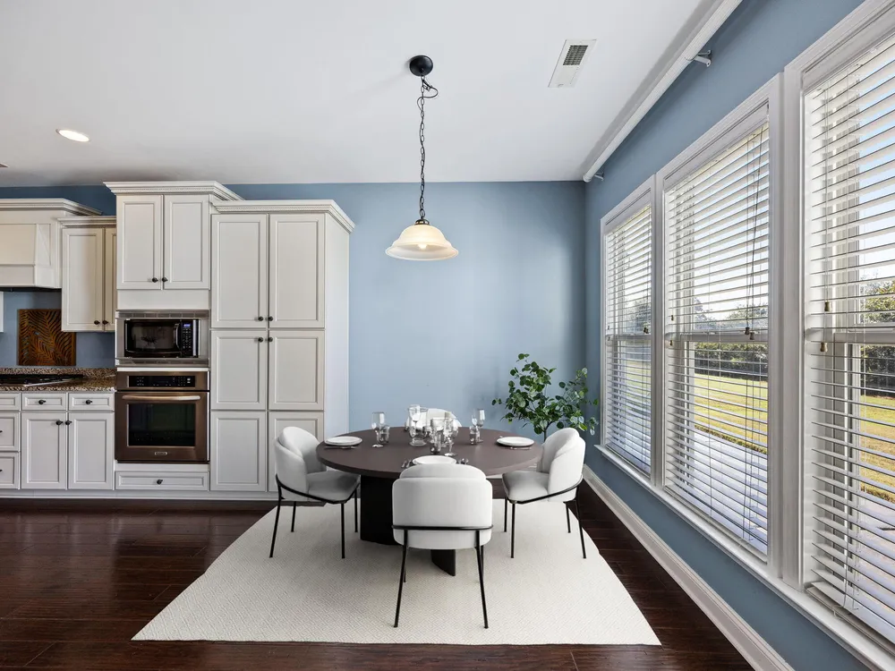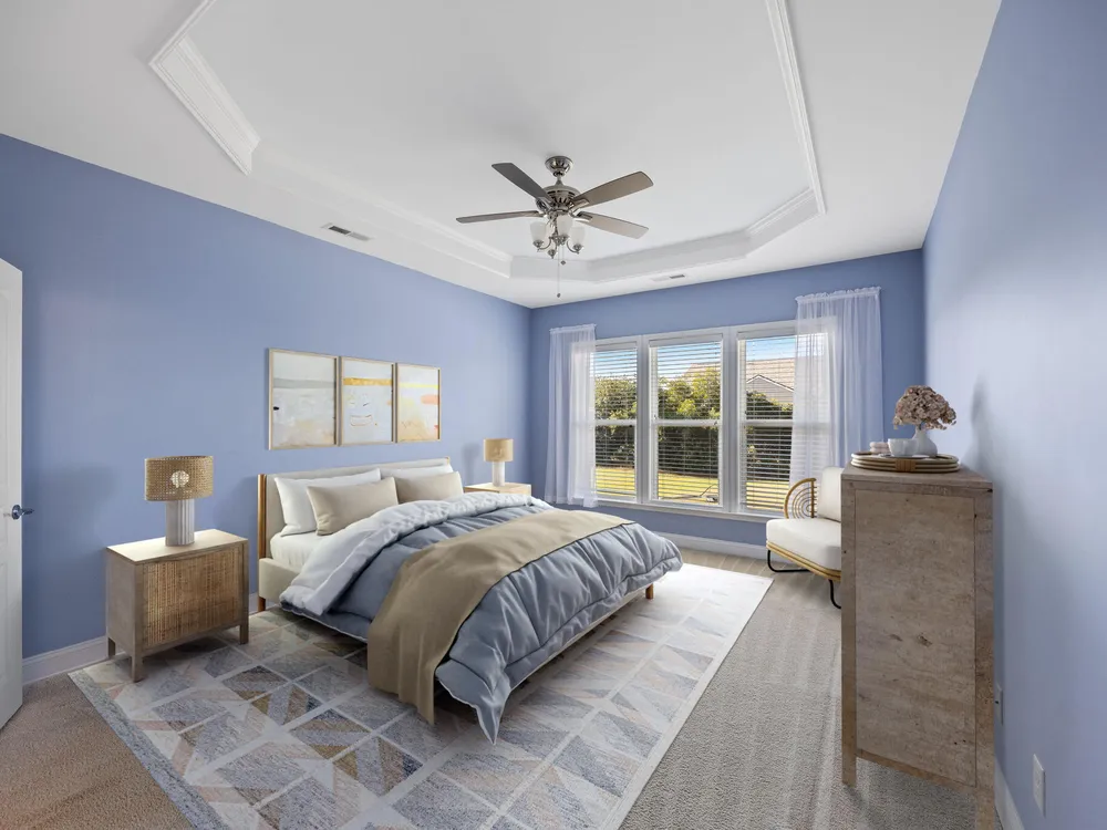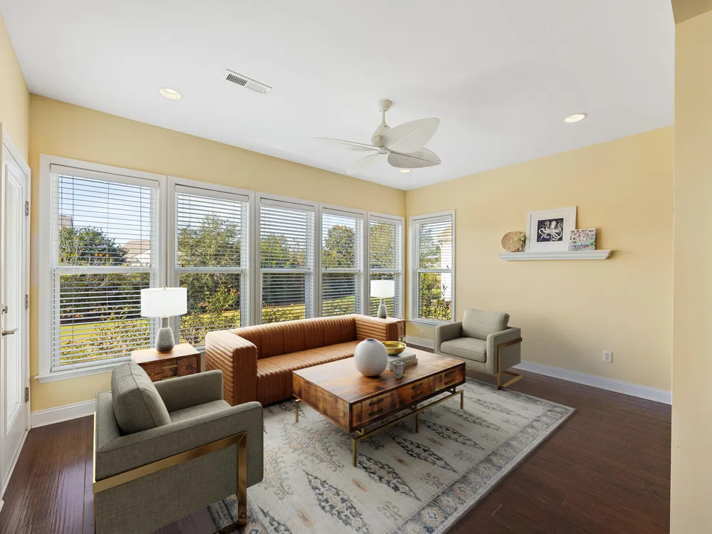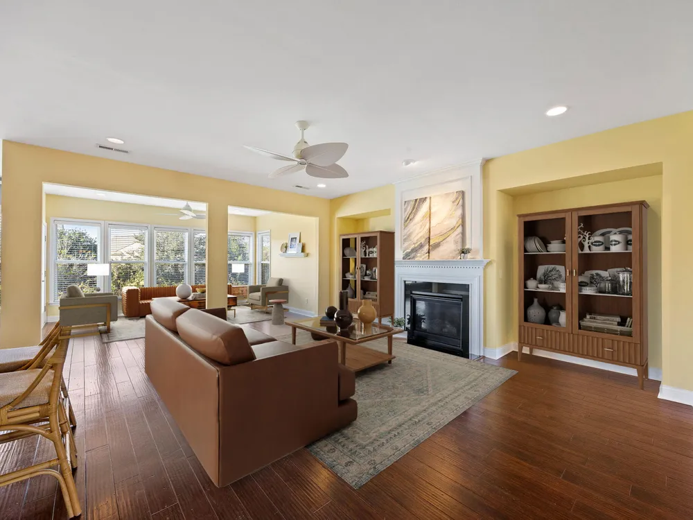 Welcome to resort-style living in this beautifully maintained 3-bedroom, 2 bath home, perfectly situated on a desirable lot in the sought-after Del Webb community of Cane Bay. From the moment you arrive, the charming front porch and abundance of windows fill the home with natural light, creating an inviting atmosphere. Inside, you're greeted by a third bedroom or office space. The thoughtfully designed kitchen features a granite breakfast bar, hood vent, gas cooktop and double wall ovens with built in microwave. The attached eat-in area is perfect for entertaining or enjoying your morning coffee. For larger gatherings, a separate dining room offers additional space for hosting. Storage is abundant with custom cabinets in the laundry room and a two car garage. The spacious living roomis bathed in natural light, complemented by a gas fireplace. An added sunroom offers the perfect spot to relax or provide extra room for entertaining. The generous primary suite includes a tray ceiling, walk-in closet, and a spa-like ensuite bath complete with a soaking tub and separate shower. The additional bedroom is also a suite and ideal for guests or family. Del Webb at Cane Bay is a gated, golf cart-friendly community offering world-class amenities including resort-style pools, tennis courts, a fitness center, miles of walking and jogging trails, and a vibrant calendar of community events all just minutes from shopping, dining, and everyday conveniences. Don't miss your chance to enjoy the best of Lowcountry living in one of the area's premier active adult communities!