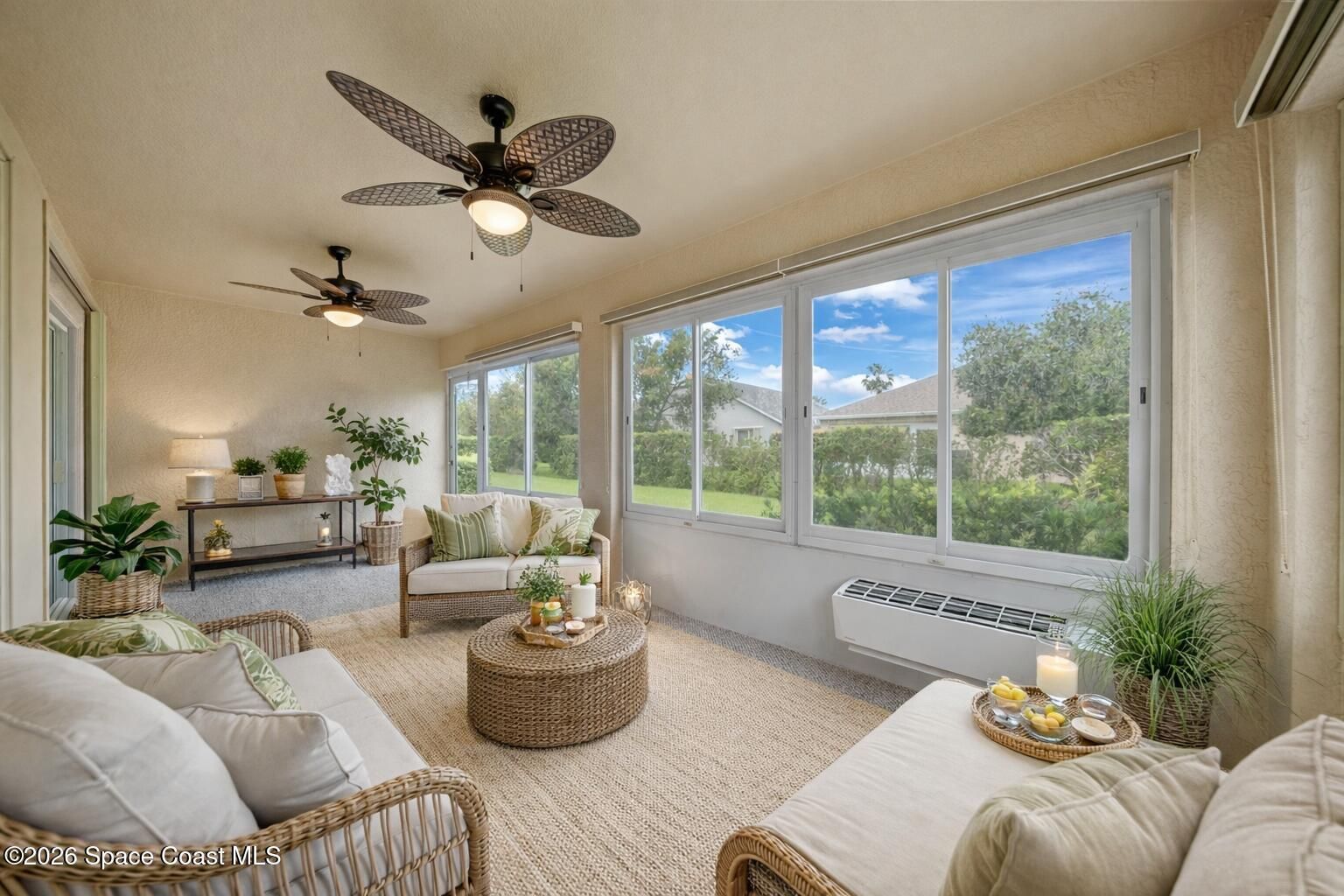 This beautifully updated, move-in ready home stands out as one of the best opportunities in Grand Isle's sought-after 55+ community. Homes with this level of upgrades and low-maintenance living rarely come to market. Inside, you'll find a light and open floor plan with laminate flooring throughout and a thoughtfully updated kitchen featuring granite countertops, modern cabinetry, newer appliances, a gas stove, and a movable island—perfect for entertaining or everyday living. Both bathrooms have been tastefully renovated, and the spacious primary suite boasts a custom-designed walk-in closet with built-ins and drawers, blending luxury with function. The enclosed, air-conditioned porch provides valuable additional living space and a bright retreat to relax or host guests year-round. Elegant touches such as custom blinds and plantation shutters complete the home. Grand Isle offers truly low-maintenance living, with the HOA covering lawn care, irrigation, and exterior painting. Residents enjoy a stunning clubhouse with a solar-heated pool and spa, fitness center, ballroom, library, billiards room, plus tennis, pickleball, bocce, and endless social opportunitiesfrom dinner dances and concerts to fitness classes, clubs, and game nights. Ideally located near A-rated shopping, dining, medical facilities, and golf courses, with beautiful beaches just minutes away and Orlando attractions within an hour. The community is golf-cart friendly and set along the St. Johns waterway preserve, offering scenic walking paths and abundant wildlife including pelicans, spoonbills, ospreys, and egrets. With incredible lifestyle amenities, this home represents one of the best values in Grand Isle. Don't miss your chance to enjoy easy, elegant 55+ living.
