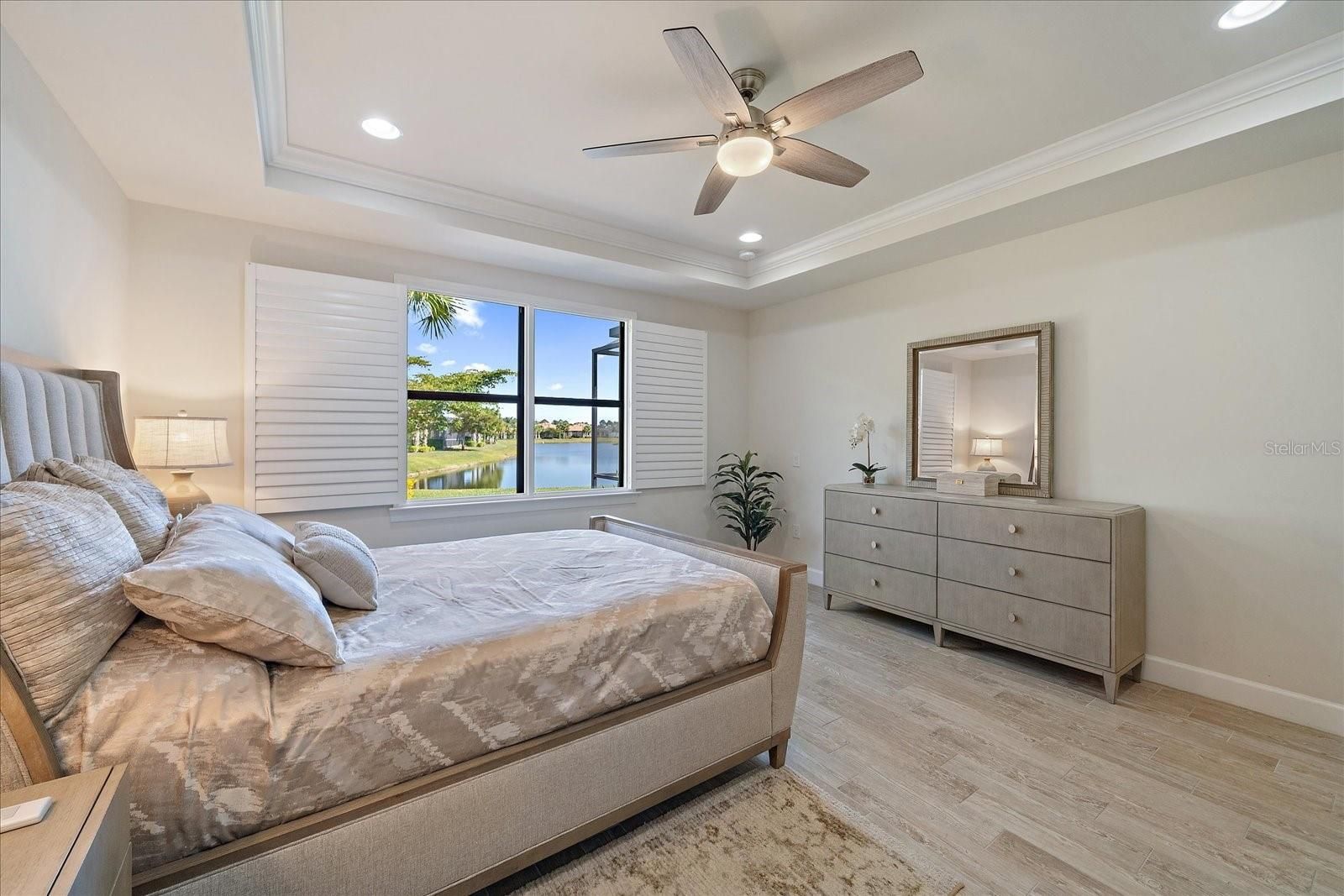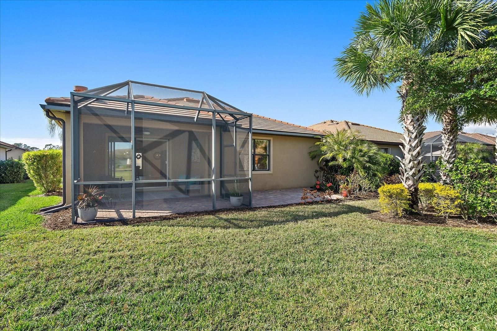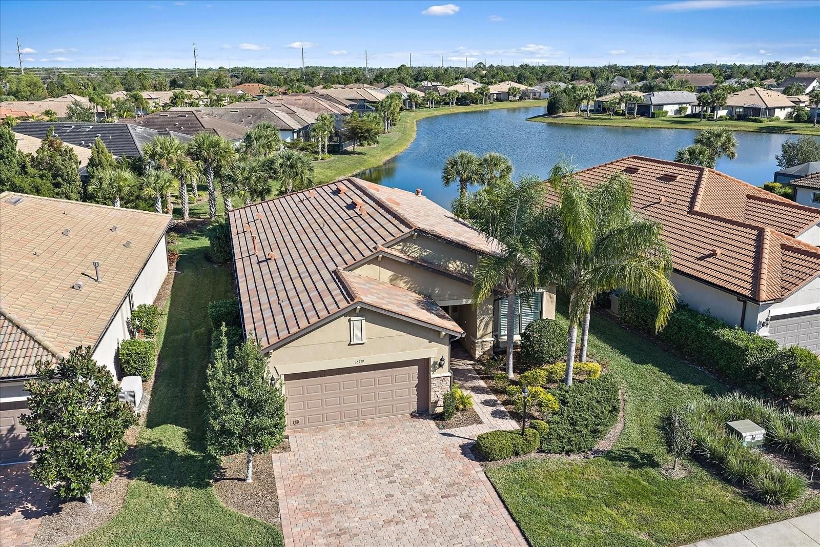Live on vacation now! RESORT-STYLE LIVING begins today in this gorgeous MAINTENANCE-FREE home with SPECTACULAR pond views. METICULOUSLY MAINTAINED 2 Bed/2 Bath plus DEN *OPEN split floor plan with excellent natural light *CERAMIC PLANK FLOORING*PLANTATION SHUTTERS on all windows and sliders *CROWN MOLDING * HURRICANE SHUTTERS *Custom built-in air-conditioned WORKSHOP in 3rd of garage. This makes an awesome man cave! (Golf Cart will fit inside!) *HUGE island in kitchen! Perfect for baking, preparing meals and entertaining! * GAS cooktop and UPGRADED stainless steel appliances * PREMIUM CABINTRY*HUGE walk-in pantry * TRAY CEILING in Primary bedroom * ENSUITE with Soaking tub and separate shower. * Laundry room nearby with cabinets and laundry tub * PORTABLE GENERATOR INCLUDED * Extended screened lanai plumbed for outdoor kitchen * Additional PAVED OUTDOOR PATIO for relaxing or gardening * Peaceful pond views and beautiful sunsets DEL WEBB at Lakewood Ranch is a gated 55+ community designed for people who want more than just a home; they want a lifestyle! Here, every day feels like a vacation with resort-style amenities, social activities, and plenty of opportunities to stay active or simply relax. * Resort Style Heated pool! * Tennis Courts and Pickleball * Bocce Ball * Fitness Room * Wonderful Restaurant and Bar! Great place to hang out with friends and meet new people. The homes are thoughtfully crafted with low-maintenance living in mind, offering modern features, flexible layouts, and energy efficiency that make life easier. Surrounded by lush landscaping, sparkling lakes, and scenic walking trails, it’s a community that feels peaceful yet perfectly connected. Plus, you’re just minutes from shopping, dining, beaches, and the vibrant arts scene in Sarasota and Bradenton. This life is not a dress rehearsal, live on vacation NOW! *(IN ADDITION: This home offers an assumable VA loan with an interest rate under 3%, subject to lender/VA approval. The Buyer must qualify for this loan.)*