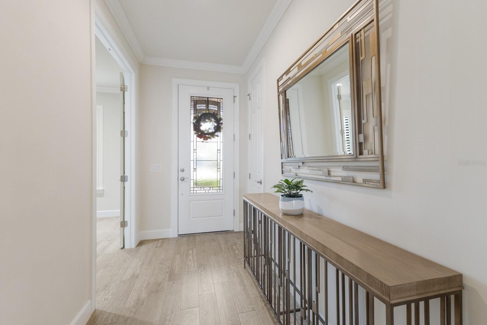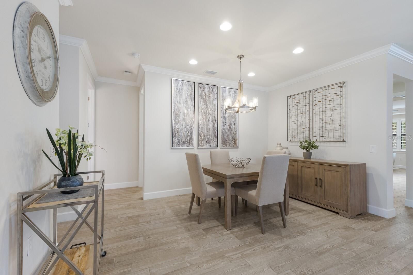 NEW PRICE, this is the one! Welcome to next-level living in this beautifully designed Martin Ray Model, set in the exclusive Del Webb 55+ community of Lakewood Ranch - the nation’s top multi-generational hotspot. This stunning home is loaded with custom upgrades, stylish design, and resort-style vibes, perfect for buyers who want the ultimate Florida lifestyle without the hassle of maintenance. With 1,964 sq. ft., this home features 2 bedrooms, 2 bathrooms, and a versatile den in an open, easy-flow floor plan. The den is located off the foyer, allowing for privacy and is a space that effortlessly adapts as a home office, workspace, guest retreat, hobby room, or creative nook—whatever you need it to be. This home is beautifully maintained and looks like a model. Interior upgrades include ceramic plank flooring throughout the entire home in a light/neutral color, neutral paint throughout, plantation shutters on all windows and sliders, crown molding and tall baseboards. Designer lighting lends to the home's style and continuity, all of the extra touches create a seamless flow throughout the entire home. Custom built-in drop zone and closet at entry to garage. Built-in cabinets and laundry tub in the laundry room, which is conveniently located close to the primary bedroom. Owner's suite complete with tray ceiling and ensuite featuring a soaking tub and separate shower, walk-in closet and extra storage. Kitchen dreams start here, it is perfect for foodies, entertainers and everyday convenience with a 10-foot island, separate beverage center and a walk-in pantry. Upgraded stainless steel appliances and gas cooktop, premium cabinets with wood range hood, designer backsplash and under-cabinet lighting. Kinetico water filtration system with water softener. Step outside to your backyard and soak up the Florida Lifestyle. Extended screened-in lanai that is plumbed for an outdoor kitchen and extra outside paver patio area perfect for gardening or to simply watch the beautiful sunsets. Widened paver driveway AND don't miss this garage - there is a complete hobby workshop with countertops and double doors to allow golf cart parking inside, pull-down stairs to access upper and lower storage areas, built-in cabinets and small beverage fridge - this is truly a bonus of quality workmanship. POTENTIAL OPPORTUNITY - This home offers an assumable VA loan with interest rate under 3% (subject to lender/VA approval). Buyer must qualify. Qualified buyers may benefit from favorable terms compared to today’s market. The Good Life Starts Here – Elegant, Stylish & Move-In Ready!