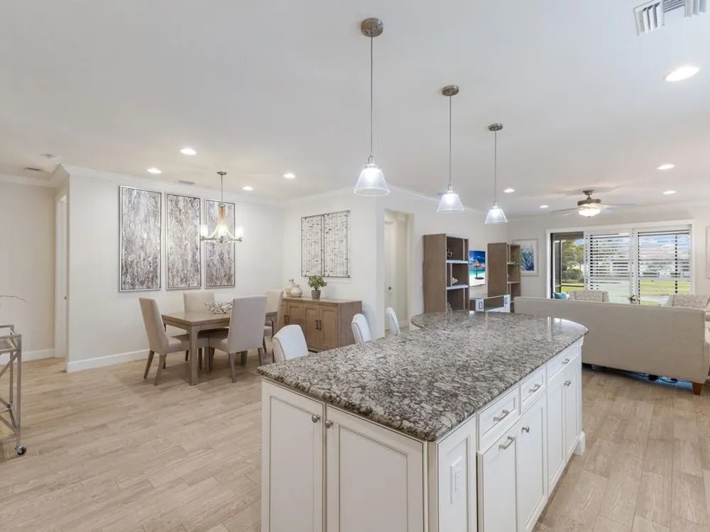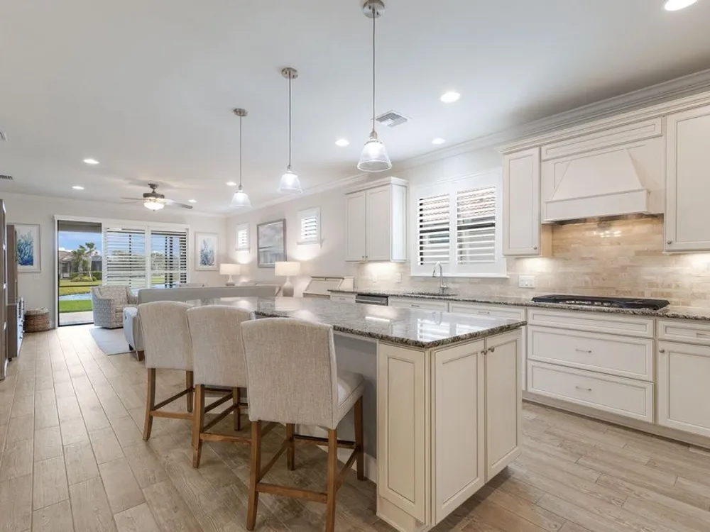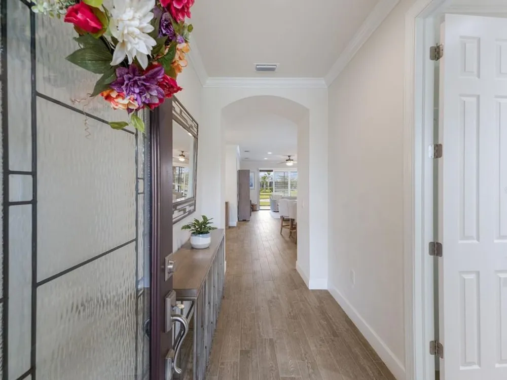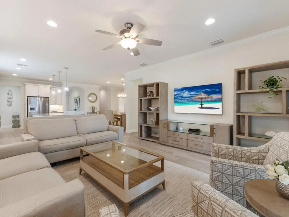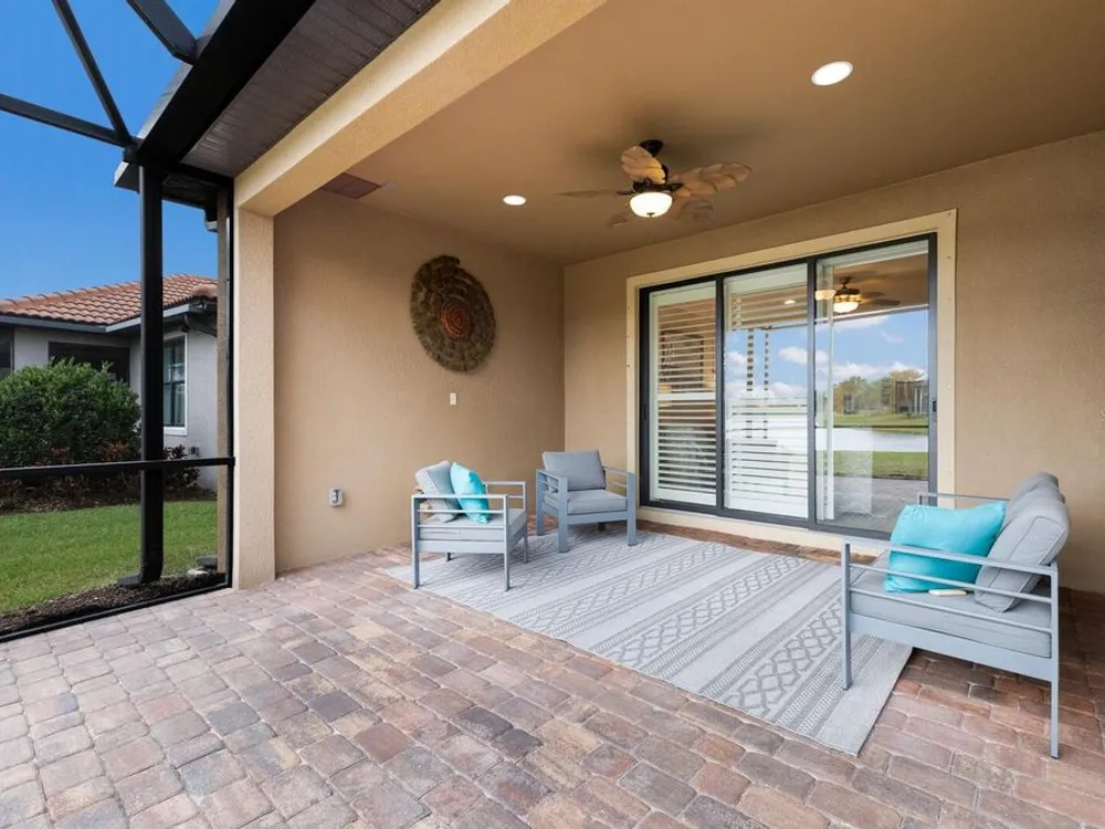 Rare opportunity! This home offers an assumable VA loan (subject to lender/VA approval). Buyer must qualify. Qualified buyers may benefit from favorable terms compared to today’s market. The Good Life Starts Here – Elegant, Stylish & Move-In Ready! Welcome to next-level living in this beautifully designed Martin Ray Model, set in the exclusive Del Webb 55+ community of Lakewood Ranch - the nation’s top multi-generational hotspot. This stunning home is loaded with custom upgrades, stylish design, and resort-style vibes, perfect for buyers who want the ultimate Florida lifestyle without the hassle of maintenance. With 1,964 sq. ft., this home features 2 bedrooms, 2 bathrooms, and a versatile den in an open, easy-flow floor plan. The den is located off the foyer, allowing for privacy and is a space that effortlessly adapts as a home office, workspace, guest retreat, hobby room, or creative nook—whatever you need it to be. This home is beautifully maintained and looks like a model. Interior upgrades include ceramic plank flooring throughout the entire home in a light/neutral color, neutral paint throughout, plantation shutters on all windows and sliders, crown molding and tall baseboards. Designer lighting lends to the home's style and continuity, all of the extra touches create a seamless flow throughout the entire home. Custom built-in drop zone and closet at entry to garage. Built-in cabinets and laundry tub in the laundry room, which is conveniently located close to the primary bedroom. Owner's suite complete with tray ceiling and ensuite featuring a soaking tub and separate shower, walk-in closet and extra storage. Kitchen dreams start here, it is perfect for foodies, entertainers and everyday convenience with a 10-foot island, separate beverage center and a walk-in pantry. Upgraded stainless steel appliances and gas cooktop, premium cabinets with wood range hood, designer backsplash and under-cabinet lighting. Kinetico water filtration system with water softener. Step outside to your backyard and soak up the Florida Lifestyle. Extended screened-in lanai that is plumbed for an outdoor kitchen and extra outside paver patio area perfect for gardening or to simply watch the beautiful sunsets. Widened paver driveway AND don't miss this garage - there is a complete hobby workshop with countertops and double doors to allow golf cart parking inside, pull-down stairs to access upper and lower storage areas, built-in cabinets and small beverage fridge - this is truly a bonus of quality workmanship. Don't miss this one, schedule your private showing today!