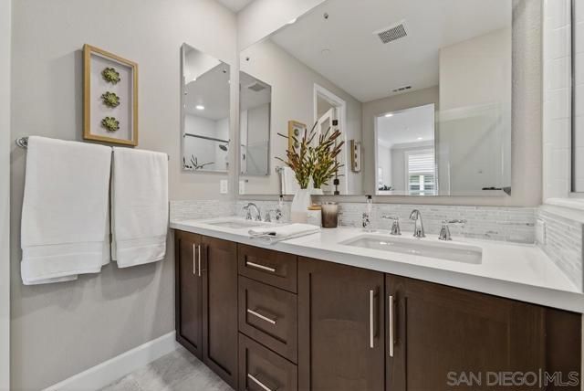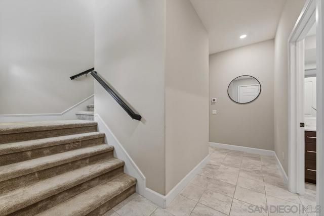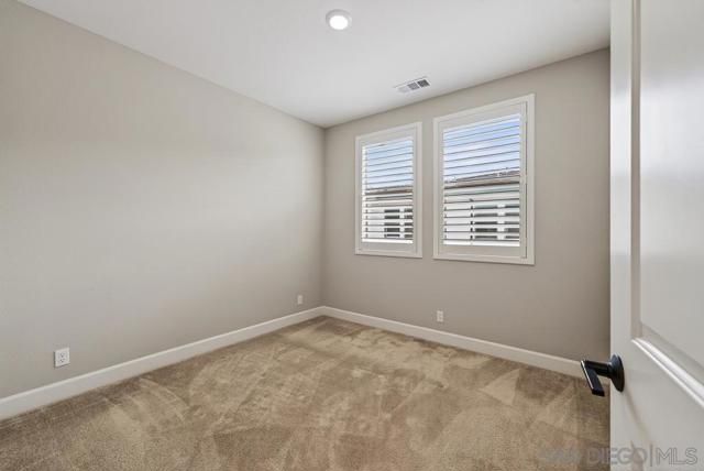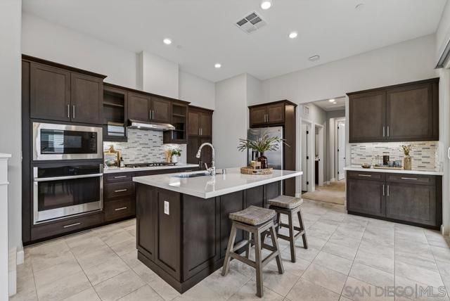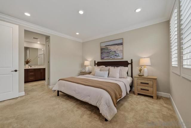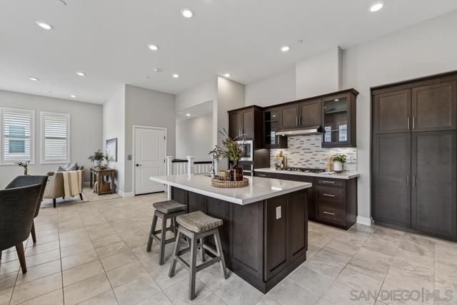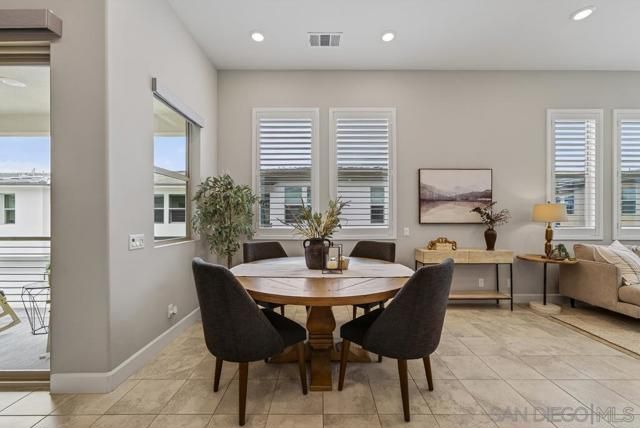 AVANTE IS A 55+ COMMUNITY. Elevated modern living meets comfort and convenience in this 3 bd/3 ba home in the heart of Del Sur’! ONLY AVANTE FLOOR PLAN WITH A FULL BEDROOM & BATHROOM DOWNSTAIRS - ideal for guests, a caretaker or home office. Enjoy 1,688 sq. ft. of rich finishes, natural light, and designer touches. Take the stairs or your own private in-home elevator to the bright, open concept main level. The kitchen showcases Denali White quartz countertops, smoke-toned shaker cabinetry with sleek chrome... pulls, a modern linear mosaic backsplash, glass display cabinets, European soft-close drawers, and a stainless steel G.E. appliances. Under-cabinet lighting and clean, contemporary finishes create a refined, functional space. Enjoy a morning coffee and relaxing evening on your private southeast-facing balcony. The spacious primary suite features crown molding, a custom built-in walk-in closet, and a spa-inspired bathroom with a designer linear mosaic backsplash & quartz countertops. Bathrooms include Arizona Denali quartz counters, modern fixtures, and Esmer tile shower surrounds. Additional highlights include wood shutters, motorized privacy shades, and an epoxied garage floor. Smart home features include a Ring doorbell, Honeywell smart thermostats, enhanced WiFi connectivity, & smart lighting. Enjoy access to the Avante clubhouse, pool & spa, fire pit, BBQ areas, and events. Located within the award-winning Del Sur community with access to parks, pools, and scenic trails—all just a short walk to Del Sur Town Center. A rare opportunity to own a truly turn-key, lock & leave home in one of North County’s most sought-after 55+ communities!
