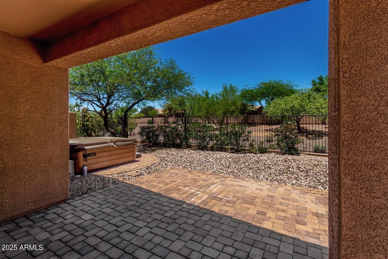 Special financing available (details provided upon request). Situated on a premium view lot in the gated Anthem Country Club community, 1676 W Owens Way blends thoughtful upgrades, smart design, and peaceful desert surroundings into one exceptional home. This 2-bedroom plus den floor plan offers both function and flexibility, highlighted by a north-facing backyard with extended paver patio, hot tub, and a view fence overlooking a natural wash with no rear neighbors. Since 2021, the property has seen major system updates including new HVAC, water heater, water softener, RO system, garbage disposal, range, microwave, dishwasher, and garage door opener—giving buyers true peace of mind. Inside, the kitchen is beautifully finished with granite slab countertops, raised panel maple cabinets with nickel pulls, ample prep space, and a touchless pull-out faucet. The open-concept living space features surround sound and upgraded electronic energy-efficient honeycomb shades paired with sunscreens for light control and comfort. The primary suite includes dual closets, one of which is equipped with a custom Elfa organization system, plus a walk-in, tiled, handicapped-accessible shower and new dual flush toilets. The den offers versatility as a home office or guest space, while the laundry room includes upper cabinets and a utility sink for added convenience. Ceiling fans are installed throughout, and the stone-accented exterior adds curb appeal. Ideal as a full-time residence or seasonal escape, this well-maintained, move-in-ready home delivers the upgrades today's buyers want and the location they love within Anthem's most coveted private golf community. Show with confidence. Private appointments available upon request.