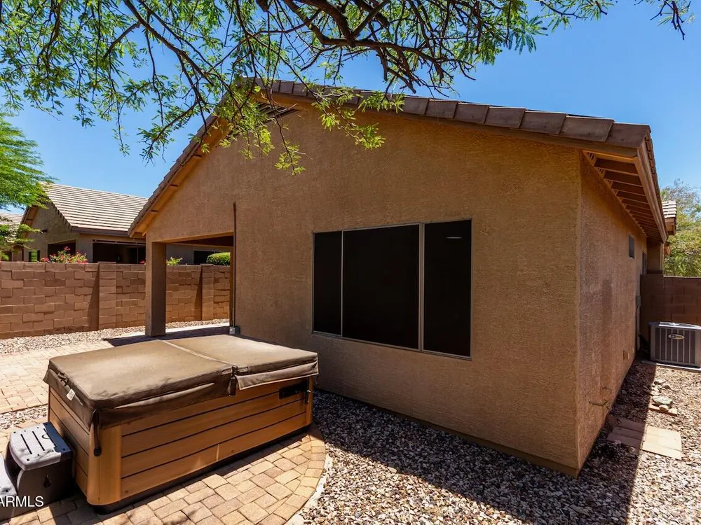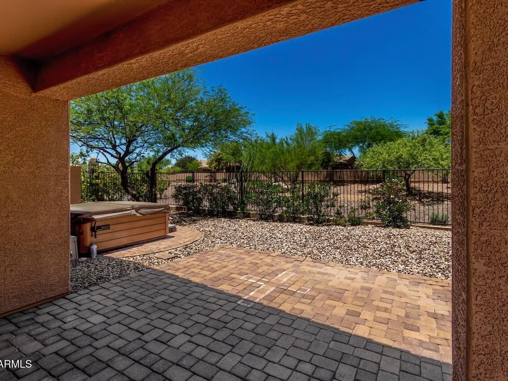 With special financing available (inquire for details) and a premium lot backing to open desert, 1676 W Owens Way in guard-gated Anthem Country Club offers a rare blend of privacy, modern upgrades, and long-term value for discerning buyers. This 2-bedroom plus den home features a view fence with no rear neighbors, an extended paver patio, and a private hot tub - ideal for enjoying Arizona evenings with scenic wash views. Since 2021, nearly every major system has been replaced, including the HVAC, water heater, water softener, RO system, garbage disposal, range, dishwasher, microwave, and garage door opener, ensuring true move-in-ready comfort. Inside, the kitchen is well-equipped with granite slab counters, raised panel maple cabinets with nickel hardware, ample counter space, and a touchless pull-out faucet. The open layout flows into a living area with built-in surround sound and electronic energy-efficient honeycomb shades, paired with sunscreens to help regulate indoor temperatures. The primary suite includes two closets - one fully customized with an Elfa storage system - and an upgraded bath with a handicapped-accessible tiled walk-in shower and new dual flush toilets. The secondary bedroom, versatile den, and functional laundry room, complete with upper cabinets and a sink, round out a layout that prioritizes practicality without sacrificing style. Ceiling fans throughout add everyday comfort, and the stone-accented exterior boosts curb appeal. This home is ideal for full-time residents or seasonal buyers seeking peace of mind, modern efficiency, and a low-maintenance lifestyle in one of the North Valley's most desirable communities. Contact the listing agent for full financing details and schedule your private tour today.