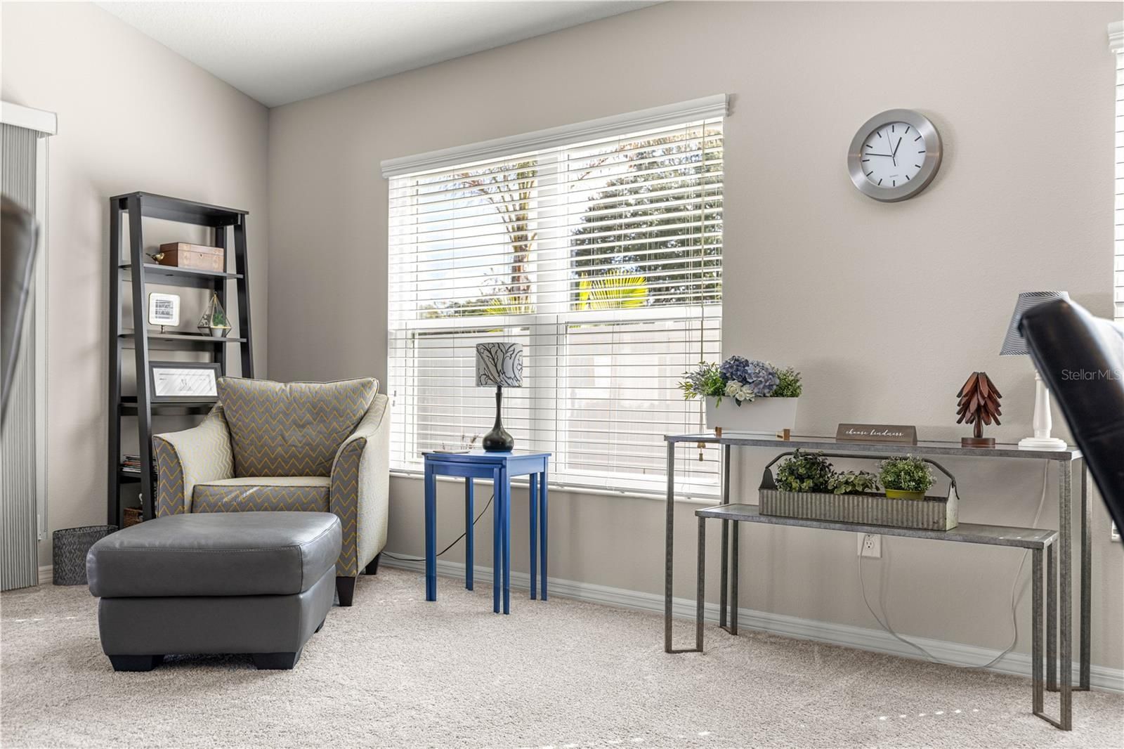 - Ceiling Fan(s), High Ceilings, Living/Dining Room, Open Floorplan, Main Level Primary, Thermostat, Window Treatments