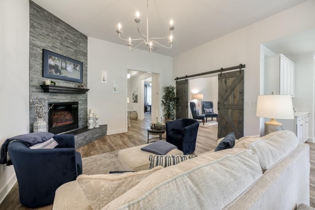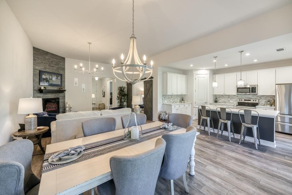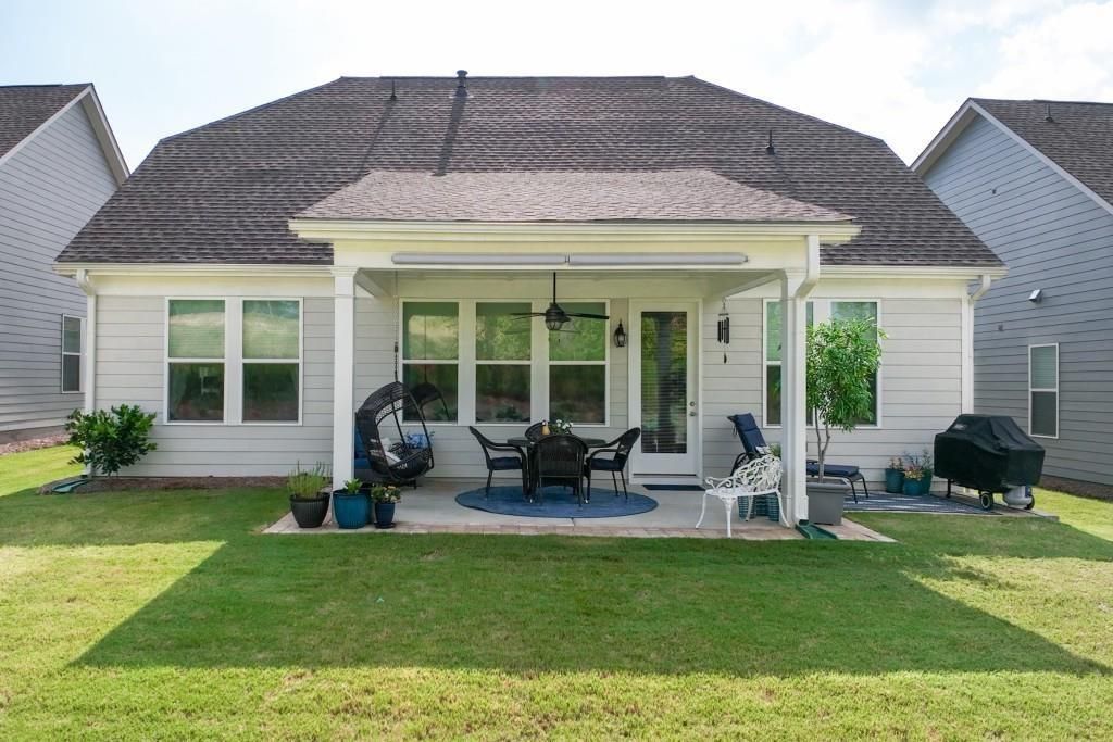Welcome to Georgia's top active adult community, ideally located in Hoschton and just minutes from the charming downtown areas of both Hoschton and Braselton. This popular Cedar floor plan offers a comfortable and flexible layout with two bedrooms and two full baths on the main level, plus an upstairs bonus room or third bedroom complete with its own full bathroom. The kitchen is both stylish and functional, featuring upgraded countertops, a tile backsplash, white cabinets, stainless steel appliances, and a walk-in pantry. It opens to the family room, where a cozy gas log fireplace with a stone surround makes the space perfect for everyday living or relaxing with guests. The dining area flows easily off the main living space and is great for hosting friends and family. The spacious primary suite includes a tray ceiling and a private bath with a large walk-in shower, double vanities, and a roomy walk-in closet. You'll also find a laundry room with upgraded cabinets for extra storage. Step outside to enjoy peaceful outdoor living with a covered porch and a separate grilling patio. The oversized two-car garage includes a utility sink for added convenience. This gated community offers an impressive lineup of resort-style amenities, all designed for residents only. A full-time activities director keeps the calendar full, while the clubhouse features indoor and outdoor pools, including lap lanes and a spa. The SmartFit training center includes top technology cardio equipment, weights, a cardio studio, and a yoga room. There's also an arts and crafts room with a kiln, multiple lounge areas, event spaces, a demo kitchen for classes, and a ballroom for larger gatherings. Outdoor amenities include Georgia's largest pickleball complex, a dog park, community garden, walking trails, and scenic lakes with a dock and boat launch for kayaking, canoeing, and catch-and-release fishing. An event lawn with a covered stage provides space for concerts and community events. The monthly HOA covers cable, internet, security monitoring, lawn care, and access to all of the community's resort-style amenities making it easy to enjoy low-maintenance living at its best.