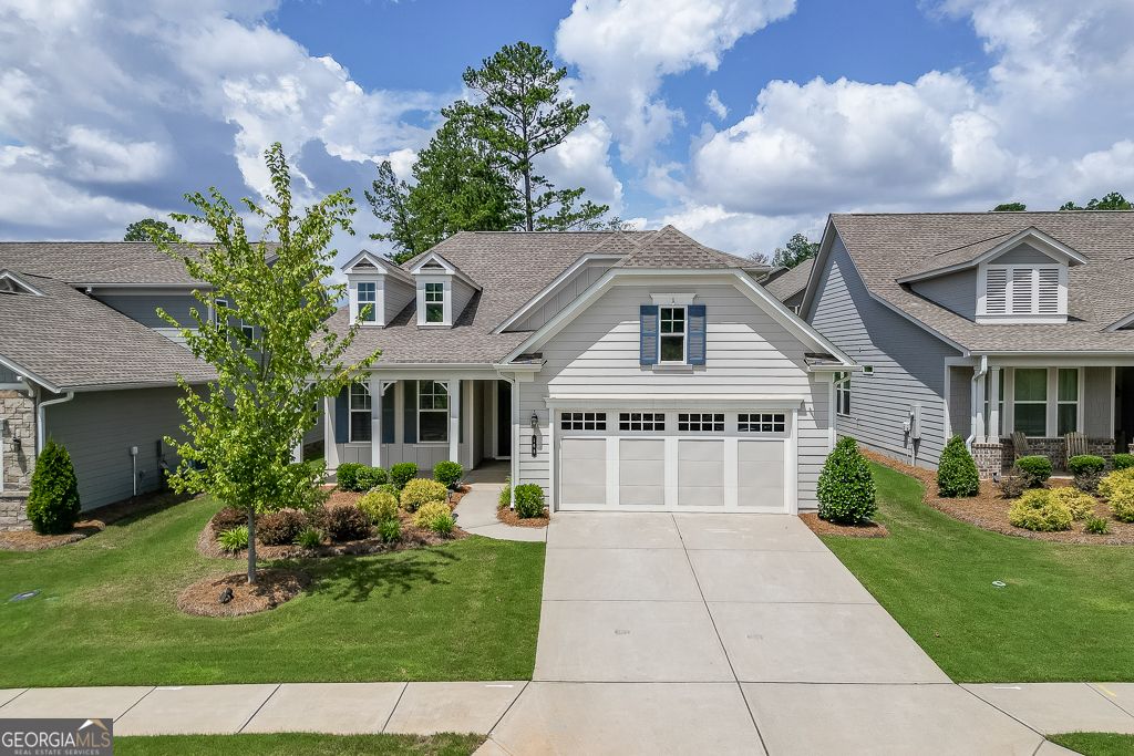 Welcome to this charming Craftsman-style ranch home located in the highly desirable Cresswind at Twin Lakes, an active adult, gated community in Hoschton. Designed with comfort and functionality in mind, this beautifully maintained home offers three bedrooms and three full baths, including a spacious bonus room upstairs that can serve as a third bedroom or flexible living space. The main level features two generously sized bedrooms, each with its own full bath, including the primary suite, which offers an expansive ensuite bathroom with a large walk-in shower, dual vanities, and a walk-in closet. The heart of the home is the gourmet kitchen, showcasing solid surface countertops, white cabinetry, stainless steel appliances, and a walk-in pantry. The kitchen opens seamlessly to the family room, where a gas log fireplace adds warmth and charm, and the adjoining dining area is perfect for hosting family and friends. Upstairs, the bonus room with a full bath provides added space for guests, hobbies, or a quiet retreat. Outdoor living is just as inviting, with a covered porch and a separate grilling patio ideal for entertaining or simply enjoying the outdoors. A two-car garage completes the home with added convenience and storage. Cresswind at Twin Lakes offers an exceptional lifestyle with access to a private clubhouse, resort-style outdoor pool, indoor pool, state-of-the-art fitness center, dog park, scenic walking trails, lakes for kayaking and fishing, and so much more. This is more than just a home it's a place to live your best life.