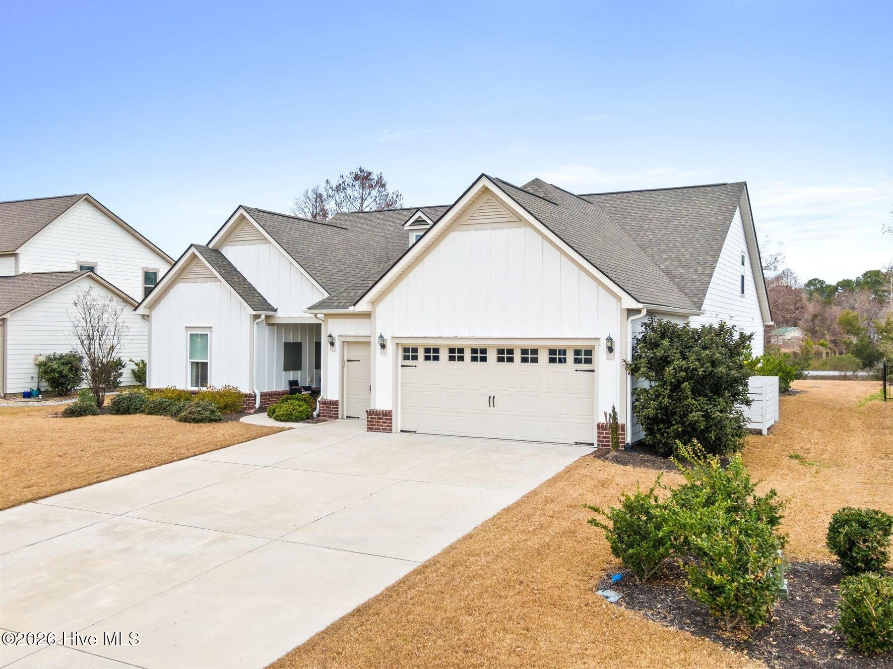 Experience the perfect blend of luxury, privacy, and coastal Carolina living in this stunning 2,835 square foot home located in the sought after Crow Creek golf course community. Perfectly positioned on a .25-acre lot overlooking a large pond, this home offers a rare sense of peace and privacy, where mornings begin with water views and evenings are spent enjoying the surrounding wildlife. Inside, the thoughtfully designed floor plan offers 3 bedrooms, 3 full bathrooms, a dedicated flex space or office, and a huge bonus room, ideal for hosting guests, working from home, or spreading out and enjoying everyday life. The chef's kitchen is the heart of the home, featuring granite countertops, a large island, gas cooktop with custom hood vent, built-in oven and microwave, walk-in pantry, coffee bar, and wine cooler. LVP flooring, crown molding, and designer finishes flow through the open living spaces, anchored by a cozy gas fireplace and a beautiful arched entryway. Seamless indoor-outdoor living shines with multi-slide doors opening to a screened-in covered patio and additional uncovered patio overlooking the pond, perfect for morning coffee or sunset evenings. The primary suite is a true retreat with pond views, a spacious walk-in closet, fully tiled walk-in shower, double vanities, and a private water closet. Additional highlights include a garage extended by four feet, walk-in floored attic above the garage, and abundant storage throughout. Crow Creek offers outstanding amenities including a pool, clubhouse, fitness center, and tennis courts. Located just 10 minutes from downtown Calabash and under 20 minutes from Ocean Isle Beach and Sunset Beach, with a new shopping center coming soon nearby, this home offers the perfect balance of peaceful living and coastal convenience.