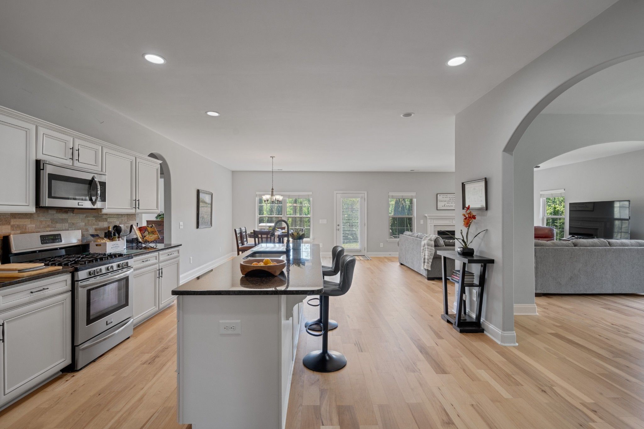 HIGHLY SOUGHT AFTER Community of Stonebridge, 1 Mile from I-40. 1 LEVEL LIVING with 3 bedrooms, 2 full baths with NO STEP entry into this home (front, back or garage). You’ll love the open floor plan, with wide hallways and doorways, that make this home comfortable for daily living and perfect for entertaining. Hardwood and carpet throughout for warmth and versatility. Each of the common areas are oversized and very spacious. Oversized dedicated dining room. The Great room offers a gas fireplace and full of windows for great light. Large outdoor covered patio with no back neighbors for privacy. The kitchen features a large island with granite countertops, tile backsplash, gas range and a spacious pantry provides ample storage with lots of storage through out the home. The primary suite offers a relaxing retreat, double sink vanity and oversized walk in closet. The secondary bedrooms provide flexibility for guests, office, or hobbies. With nearby shopping centers, restaurants, and entertainment options, this location makes everyday living feel easy and enjoyable. Life in Stonebridge goes beyond your front door. This community features incredible amenities including a neighborhood pool, clubhouse, walking trails, fitness center, playground all with underground utilities! Stonebridge community offers a robust, amenity-rich lifestyle with numerous resident-driven clubs, including a women’s club, book club, gardening club, service club, and sewing/craft club. Managed by an activities manager, the community hosts regular events like potlucks and holiday parties. Call Michael for your private showing today.