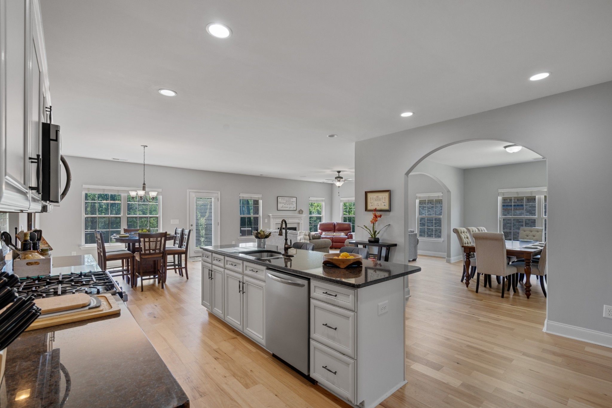 - Gas Range, Dishwasher, Disposal, Microwave, Refrigerator, Stainless Steel Appliance(s)