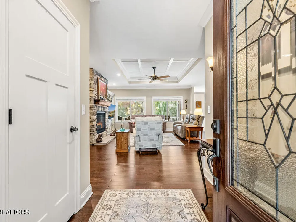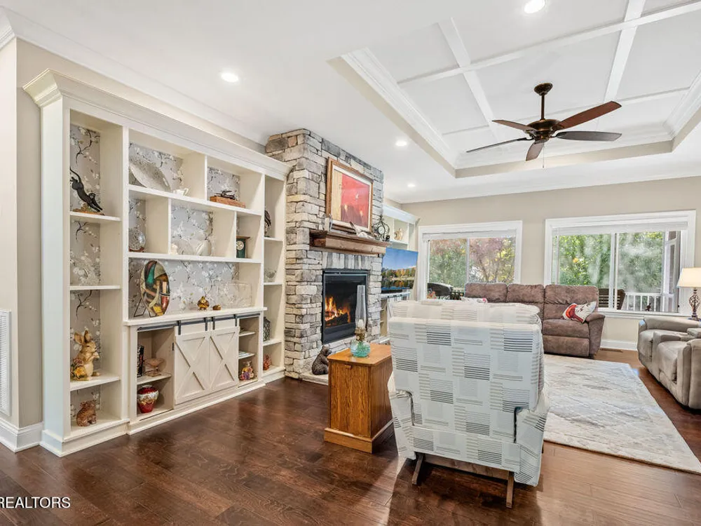 Gorgeous Fred Hans Home built in 2019. Beautiful Landscaping welcomes you to a relaxing Front Porch. Recessed Foyer with Stacked Stone Accent and Leaded Glass door with Transom for natural light. Spacious Living Room Features Coffered Ceiling, Stacked Stone Fireplace, with amazing Built-ins on both sides. Gorgeous Engineered Hardwood Flooring throughout the home. Kitchen and Dining room combination has Custom Cabinetry, Stainless Appliances, Soapstone Sink, Granite Counters and Tumbled Marble Backsplash. Center Island has Pendant Lights. Large windows offer beautiful Back yard View. The Screened Porch is spacious and private with an outdoor Large Grilling Patio with Pavers. Totally Flat Back Yard already Fenced for your Pet. A Lovely Primary Suite has Trayed Ceiling, and nice Window Treatments. The Bath has large Double Sink Vanity, Private WC, Tiled Low Threshold Shower with Glass Door. 2 Guest Bedrooms and Guest bath. Use one as your Office or Hobby Room. Laundry has a Utility Sink and Overhead Cabinets. This Home has Oversized Closets to provide ample storage. 2 Car Garage with Attic Storage. The crawl space is encapsulated with an industrial dehumidifier.