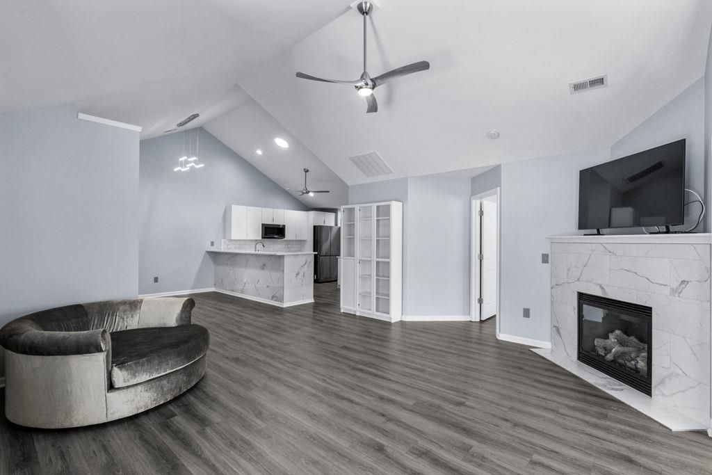 - Bathtub, Ceiling Fan(s), Separate Shower, Vanity, Vaulted Ceiling(s), Window Treatments, Breakfast Bar, Bedroom on Main Level, Entrance Foyer, Solid Surface Counters