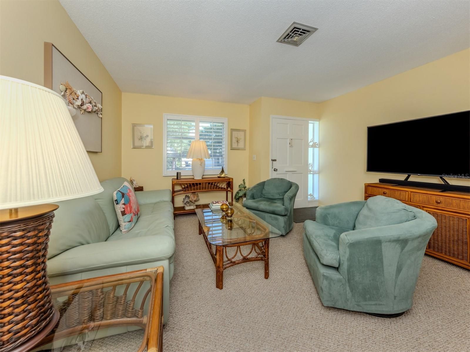 Welcome to your coastal retreat on beautiful Venice Island! This charming ground-level condominium offers a blend of comfort and style, featuring two spacious bedrooms and a full bath. The primary bedroom includes a walk-in closet, providing ample storage and convenience. Bright and airy, the home is beautifully accented with plantation shutters throughout, providing elegance and privacy. The unit is being sold furnished, making your move-in process seamless and hassle-free. As an association convenience, basic cable TV is included. Ideally less than one mile from the sparkling beaches, you'll enjoy easy access to sun, surf and seaside living. Whether you're seeking a vacation getaway or a cozy year-round residence, this delightful condominium offers the ideal opportunity to embrace the beach lifestyle. Don’t miss out on this fantastic opportunity! Experience resort-style living with exceptional community amenities in this 55-plus community, including a welcoming clubhouse equipped with a full kitchen, comfortable tables and chairs, baths, a sparkling community pool, shuffleboard courts and an on-site laundry facility. In a prime location, this villa offers a blend of relaxation and convenience—less than a mile from beautiful beaches, just 1.3 miles from the lively pier surrounded by restaurants and shops, and only 1.8 miles from historic downtown Venice. Additionally, you'll find shopping, dining, theaters, parks, boating, tennis and Humphries Park South jetty all within three miles or less. This move-in-ready villa invites you to embrace the vibrant island lifestyle you've always dreamed of on Venice. Schedule your appointment today to tour this stunning home and envision calling it your own.