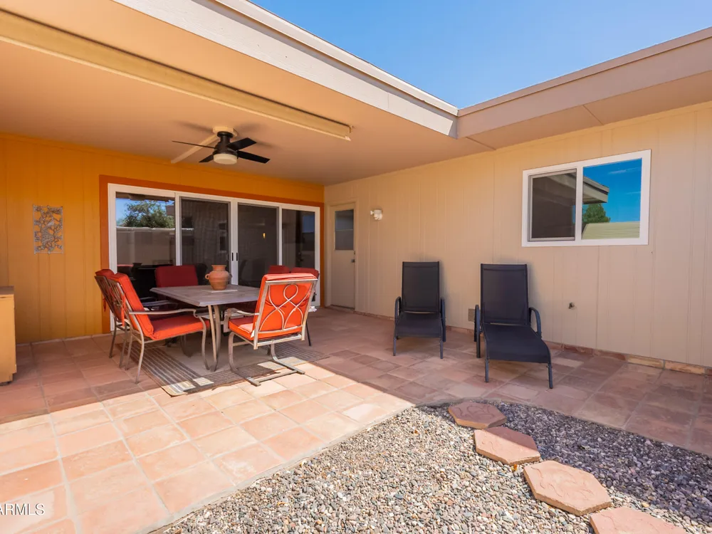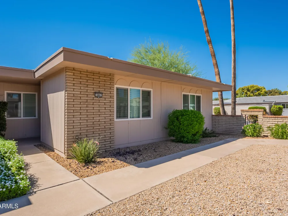 Welcome home to this well-maintained Sun City home. This Gem of a house features 2 bedrooms and 2 bathrooms, with 9+ foot ceilings, laminate and tile flooring, an updated kitchen, plantation shutters, and a large outdoor space. Neutral color palette with pops of color makes this home one to remember. The kitchen has wood cabinets, granite countertops, and stainless steel appliances that will bring the chef out in you. Both bedrooms have ample size for comfort, bathrooms have been partially updated, and a large living area. The roof was recoated in 2023, AC 2016, and dual-pane windows. Move-in ready with nothing to be done before you make this your home.
