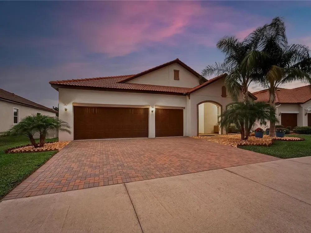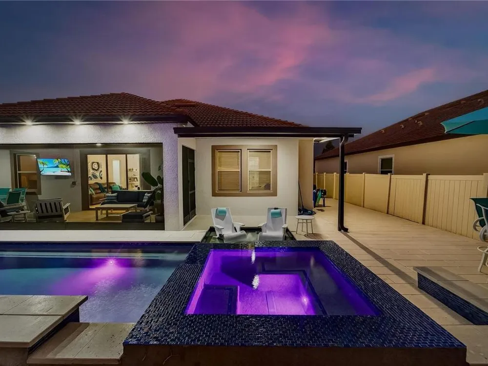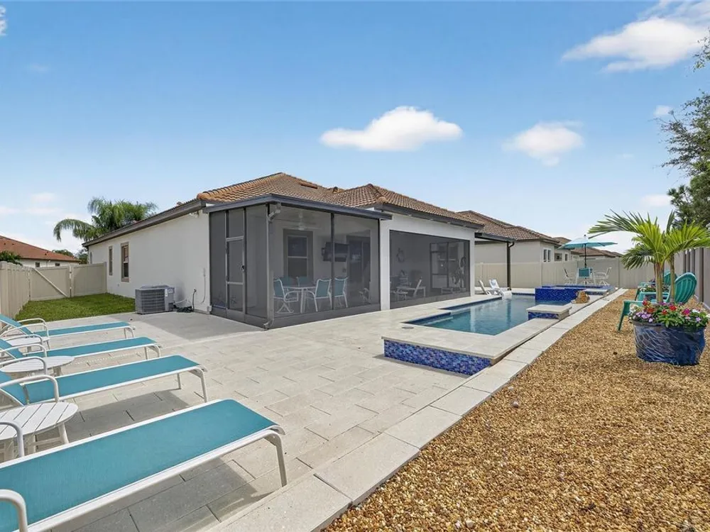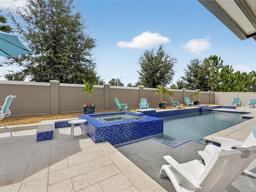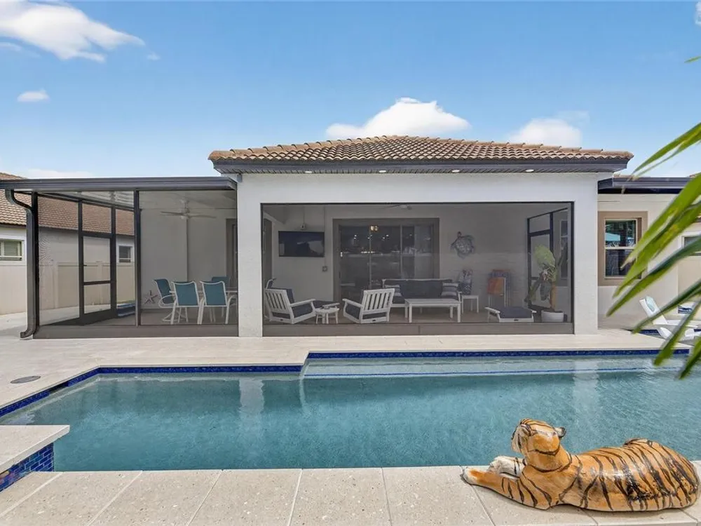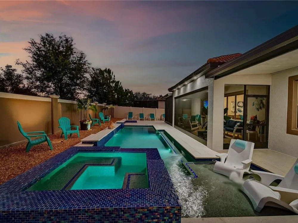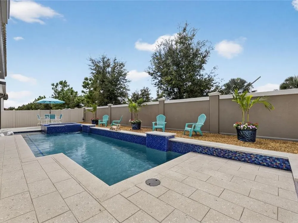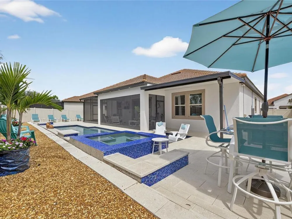 WELCOME TO YOUR FLORIDA DREAM PRIVATE POOL HOME! CUSTOM ONE YEAR NEW, HEATED, CHILLED, SPECTACULAR POOL FEATURING A RAISED SPA PLUS AN OVERSIZED BUBBLING SUNSHELF ISLAND. FINE DETAILS SUCH AS A SHEER DESCENT WATERFALL, COLOR CHANGING LIGHTS AND AN EXTENDED LOUNGING BENCH WENT INTO MAKING THIS HUGE (37 FT LONG) POOL A TROPICAL OASIS! THE EXTENDED PATIO IS WELL LIT AND VERY SPACIOUS. ENJOY THE OVERSIZED POOL DECK WITH ITS GORGEOUS 24 X 12 CUSTOM SHELL LOCK PAVERS. FULLY FENCED BACK YARD FOR COMPLETE PRIVACY! INSIDE YOU WILL FIND A WONDERFUL, WIDE OPEN FLOOR PLAN! STUNNING LIGHT FIXTURES AND CEILING FANS THROUGHOUT. THE KITCHEN HAS GORGEOUS WHITE QUARTZ COUNTER TOPS WITH SPARKLING CRYSTALS (INSTALLED LAST YEAR), EXTENSIVE RECESSED LIGHTING, CUSTOM BACK SPLASH AND STAINLESS STEEL APPLIANCES. REFRIGERATOR, DISHWASHER, WASHER AND DRYER ARE HIGHLY UPGRADED. THE FLEX ROOM MAKES AN EXCELLENT HOME OFFICE, HOME THEATER, OR 4TH BEDROOM WITH AN EASY CONVERVSION. CROWN MOLDING IN MAIN LIVING AREAS. THE PRIMARY SUITE IS A BEAUTIFUL, PEACEFUL RETREAT WHICH FLOWS TO A DRAMATIC ENSUITE BOASTING AN ENORMOUS WALK IN SHOWER, GARDEN TUB FOR TWO, CUSTOM BUILT IN CABINETRY AND CUSTOM WALK IN CLOSET WITH PLENTY OF SPACE! SAY GOOD MORNING TO YOUR NEIGHBORS FROM YOUR CHARMING COVERED FRONT PORCH! TONS OF STORAGE IN THE 3 CAR GARAGE PLUS AN UPSTAIRS STORAGE ROOM. THIS MODERN, NEUTRAL HOME CAN BE SOLD FURNISHED OR UNFURNISHED. CONTEMPORARY STYLING, LUXURIOUS FINISHES, AND A GREAT COMMUNITY MAKE THIS A HOME YOUR FAMILY WILL WANT TO VISIT OFTEN! MEDLEY AT SOUTHSHORE BAY IS A PRIVATE, GATED, 55+ FANTASTIC COMMUNITY WHERE YOU CAN DO AS MUCH OR AS LITTLE AS YOU WANT. THE RESORT STYLE CLUBHOUSE FEATURES A BALLROOM, GYM, CARD ROOMS, SHOWS AND ENTERTAINMENT. LIVE MUSIC, DJ AND KARAOKE PARTIES, PICKLE BALL, BOCCE BALL, A TROPICAL BEACH ENTRY POOL, INDOOR AND OUTDOOR DINING AND FULL BAR SERVICE! YOU CAN ALSO PARTICIPATE IN MANY CLUBS AND OUTINGS WITH YOUR NEIGHBORS. AS AN OWNER IN MEDLEY YOU ALSO ENJOY FULL MEMBERSHIP AT THE 5+ ACRE SOUTHSHORE BAY CRYSTAL LAGOON! IN ADDITION TO THE TOT SPLASH PAD, OBSTACLE COURSES AND SWIMMING, YOUR WHOLE FAMILY WILL HAVE A BLAST AT THE MOVIE NIGHTS, POKER NIGHTS, CIGAR NIGHTS, DANCE PARTIES, FULL BAR, SWIM UP BAR, FOOD TRUCKS, FIREWORKS DISPLAYS, HOLIDAY CELEBRATIONS AND GOLF CART PARADES! ISN'T THIS WHY YOU MOVED TO FLORIDA? ALL DIMENSIONS APPROXIMATE. ALL INFORMATION CONTAINED HEREIN DEEMED ACCURATE BUT SUBJECT TO BUYER VERIFICATION. ONE TIME $2150 CAPITAL CONTRIBUTION DUE FROM BUYER AT CLOSING. OWNER IS LISTING AGENT.