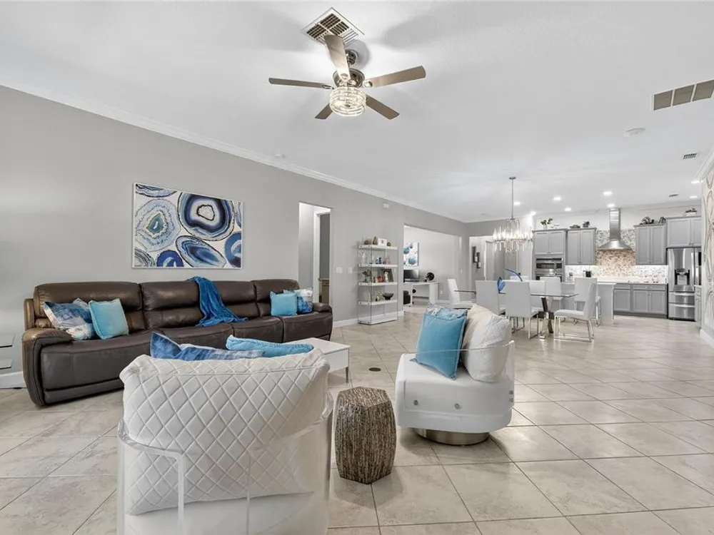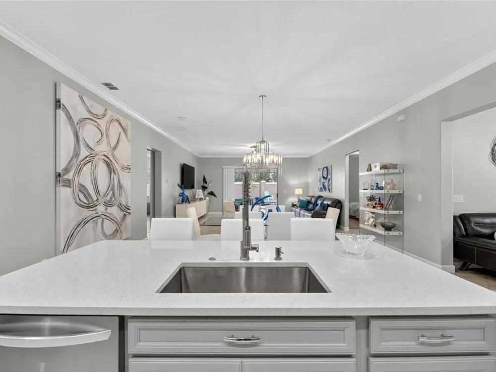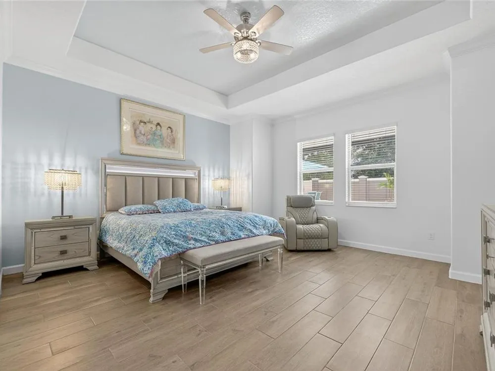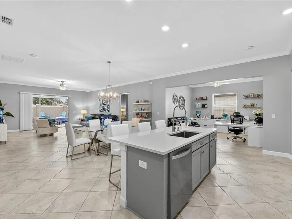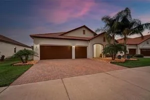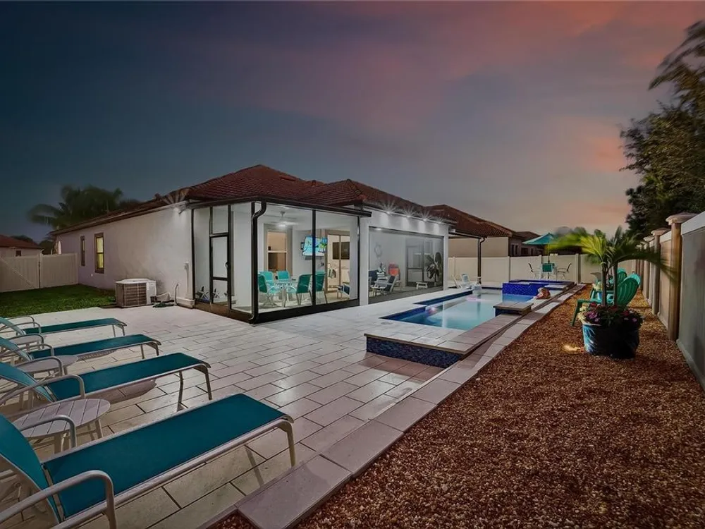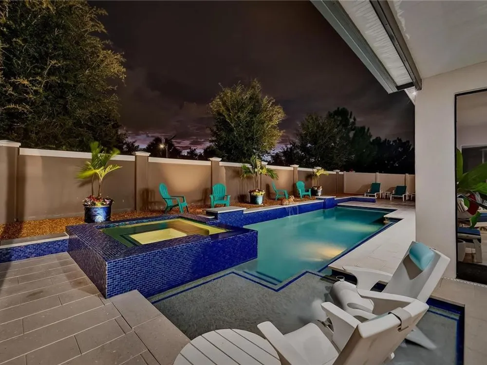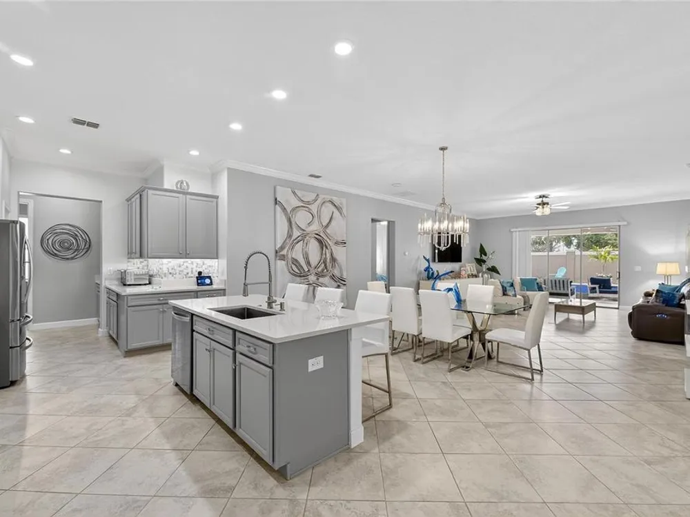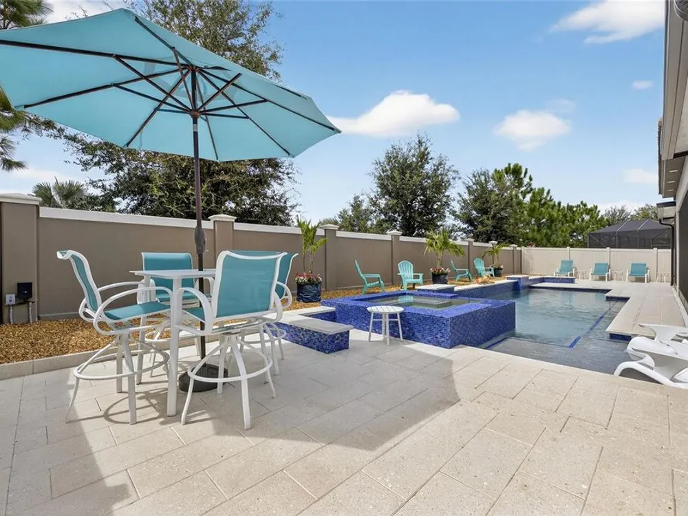 WELCOME TO YOUR FLORIDA DREAM PRIVATE POOL HOME! CUSTOM ONE YEAR NEW, HEATED, CHILLED, SPECTACULAR POOL FEATURING A RAISED SPA PLUS AN OVERSIZED BUBBLING SUNSHELF ISLAND. FINE DETAILS SUCH AS A SHEER DESCENT WATERFALL, COLOR CHANGING LIGHTS AND AN EXTENDED LOUNGING BENCH WENT INTO MAKING THIS HUGE (37 FT LONG) POOL A TROPICAL OASIS! THE EXTENDED PATIO IS WELL LIT AND VERY SPACIOUS. ENJOY THE OVERSIZED POOL DECK WITH ITS GORGEOUS 24 X 12 CUSTOM SHELL LOCK PAVERS. FULLY FENCED BACK YARD FOR COMPLETE PRIVACY! INSIDE YOU WILL FIND A WONDERFUL, WIDE OPEN FLOOR PLAN! STUNNING LIGHT FIXTURES AND CEILING FANS THROUGHOUT. THE KITCHEN HAS GORGEOUS WHITE QUARTZ COUNTER TOPS WITH SPARKLING CRYSTALS (INSTALLED LAST YEAR), EXTENSIVE RECESSED LIGHTING, CUSTOM BACK SPLASH AND STAINLESS STEEL APPLIANCES. REFRIGERATOR, DISHWASHER, WASHER AND DRYER ARE HIGHLY UPGRADED. THE FLEX ROOM MAKES AN EXCELLENT HOME OFFICE, HOME THEATER, OR 4TH BEDROOM WITH AN EASY CONVERVSION. CROWN MOLDING IN MAIN LIVING AREAS. THE PRIMARY SUITE IS A BEAUTIFUL, PEACEFUL RETREAT WHICH FLOWS TO A DRAMATIC ENSUITE BOASTING AN ENORMOUS WALK IN SHOWER, GARDEN TUB FOR TWO, CUSTOM BUILT IN CABINETRY AND CUSTOM WALK IN CLOSET WITH PLENTY OF SPACE! SAY GOOD MORNING TO YOUR NEIGHBORS FROM YOUR CHARMING COVERED FRONT PORCH! TONS OF STORAGE IN THE 3 CAR GARAGE PLUS AN UPSTAIRS STORAGE ROOM. THIS MODERN, NEUTRAL HOME CAN BE SOLD FURNISHED OR UNFURNISHED. CONTEMPORARY STYLING, LUXURIOUS FINISHES, AND A GREAT COMMUNITY MAKE THIS A HOME YOUR FAMILY WILL WANT TO VISIT OFTEN! MEDLEY AT SOUTHSHORE BAY IS A PRIVATE, GATED, 55+ FANTASTIC COMMUNITY WHERE YOU CAN DO AS MUCH OR AS LITTLE AS YOU WANT. THE RESORT STYLE CLUBHOUSE FEATURES A BALLROOM, GYM, CARD ROOMS, SHOWS AND ENTERTAINMENT. LIVE MUSIC, DJ AND KARAOKE PARTIES, PICKLE BALL, BOCCE BALL, A TROPICAL BEACH ENTRY POOL, INDOOR AND OUTDOOR DINING AND FULL BAR SERVICE! YOU CAN ALSO PARTICIPATE IN MANY CLUBS AND OUTINGS WITH YOUR NEIGHBORS. AS AN OWNER IN MEDLEY YOU ALSO ENJOY FULL MEMBERSHIP AT THE 5+ ACRE SOUTHSHORE BAY CRYSTAL LAGOON! IN ADDITION TO THE TOT SPLASH PAD, OBSTACLE COURSES AND SWIMMING, YOUR WHOLE FAMILY WILL HAVE A BLAST AT THE MOVIE NIGHTS, POKER NIGHTS, CIGAR NIGHTS, DANCE PARTIES, FULL BAR, SWIM UP BAR, FOOD TRUCKS, FIREWORKS DISPLAYS, HOLIDAY CELEBRATIONS AND GOLF CART PARADES! ISN'T THIS WHY YOU MOVED TO FLORIDA? ALL DIMENSIONS APPROXIMATE. ALL INFORMATION CONTAINED HEREIN DEEMED ACCURATE BUT SUBJECT TO BUYER VERIFICATION. ONE TIME $2150 CAPITAL CONTRIBUTION DUE FROM BUYER AT CLOSING. OWNER IS LISTING AGENT.