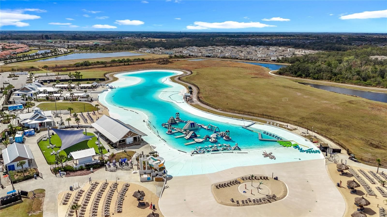 Welcome to your ultimate Florida retreat! This 2 bed | 2 bath | 2.5-car garage w/ a flex room isn’t just a home; it's a lifestyle upgrade in the highly sought-after Medley at Southshore Bay, Wimauma’s premier 55+ resort-style community. Unlike the attached villas in the neighborhood, this home is a fully detached, standalone single-family sanctuary designed entirely on one level, offering the privacy of no shared walls and the convenience of a layout with no upstairs loft or stairs. The heart of the home is a bright, open-concept great room that flows seamlessly into a chef-inspired kitchen adorned with 42-inch cabinetry and sleek granite countertops, while the split-bedroom floor plan provides a peaceful retreat for the primary suite away from the guest quarters. Step outside to your private screened lanai to enjoy the gentle Wimauma breeze, knowing that the HOA handles all your lawn care, exterior maintenance, and roof upkeep, along with high-speed internet and cable. The spectacular 5-acre Crystal Lagoon, a unique aquatic sanctuary featuring a sandy beach entry, water slides, kayaking, paddleboarding, and a swim-up bar with poolside dining. Beyond the lagoon, residents enjoy exclusive access to a world-class clubhouse equipped with a grand ballroom, billiards, game rooms, and a state-of-the-art fitness center. Whether you are staying active on the pickleball and bocce courts, exploring the scenic walking and biking trails, or relaxing at the dog park, there is always an opportunity to engage with your surroundings. This is more than just a home—it’s a socially vibrant lifestyle defined by luxury and ease. You can spend your mornings at the on-site café, your afternoons in a private cabana, and your evenings attending year-round social events. From the heated resort-style pool to the fine-tuned amenities, every detail at Medley at Southshore Bay is crafted to help you make new friendships and enjoy the retirement you’ve earned. This golf-cart-friendly community is perfectly situated for easy travel, offering quick access to I-75 and US-301 for convenient trips to Tampa and the stunning Gulf Coast beaches. Schedule your private showing today to experience this perfect balance of peace and excitement.