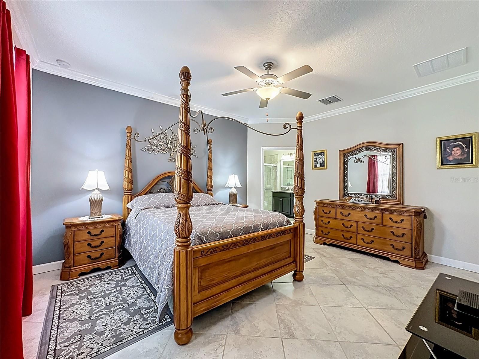 - Ceiling Fan(s), Open Floorplan, Main Level Primary, Stone Counters, Walk-In Closet(s)