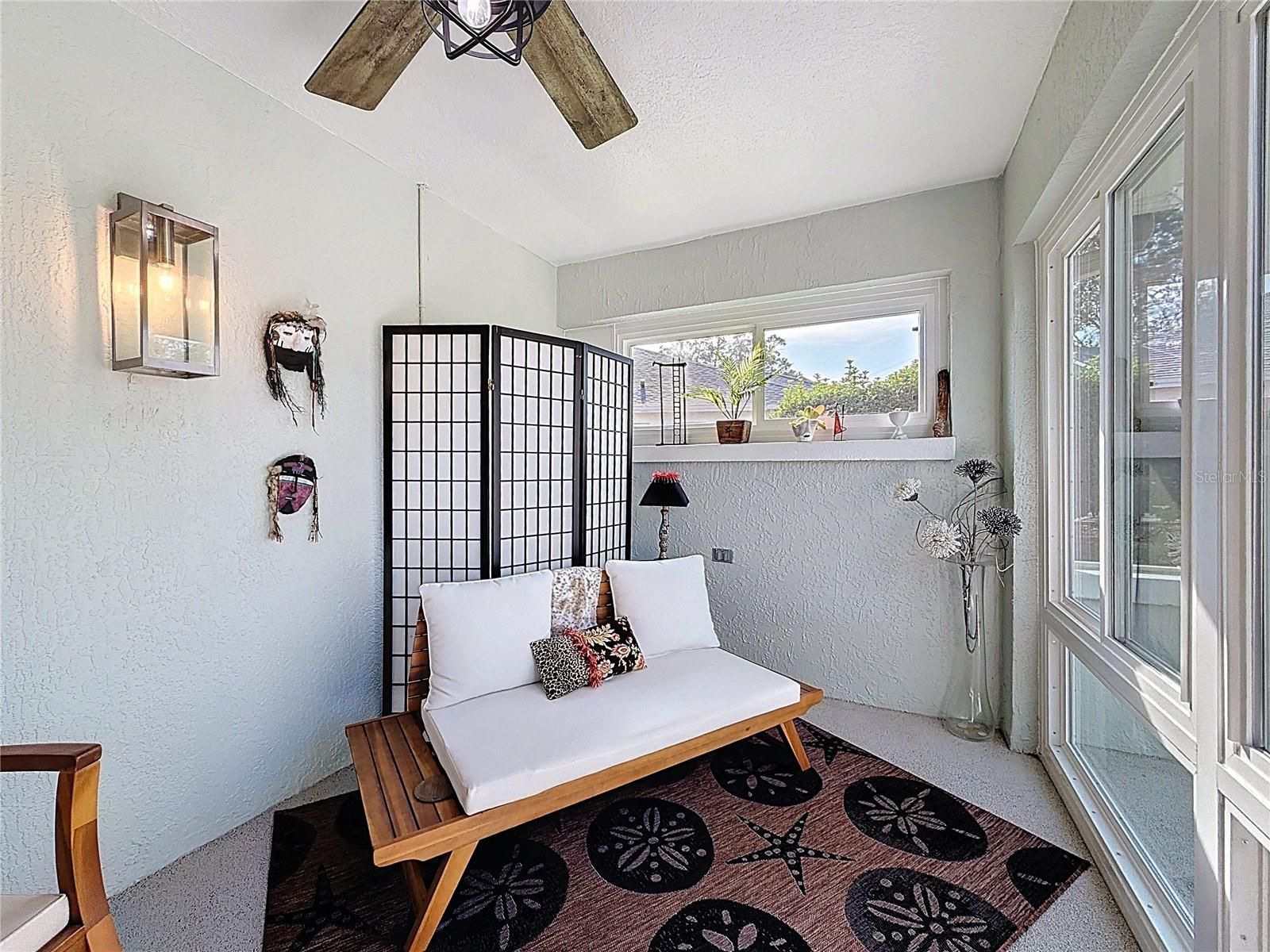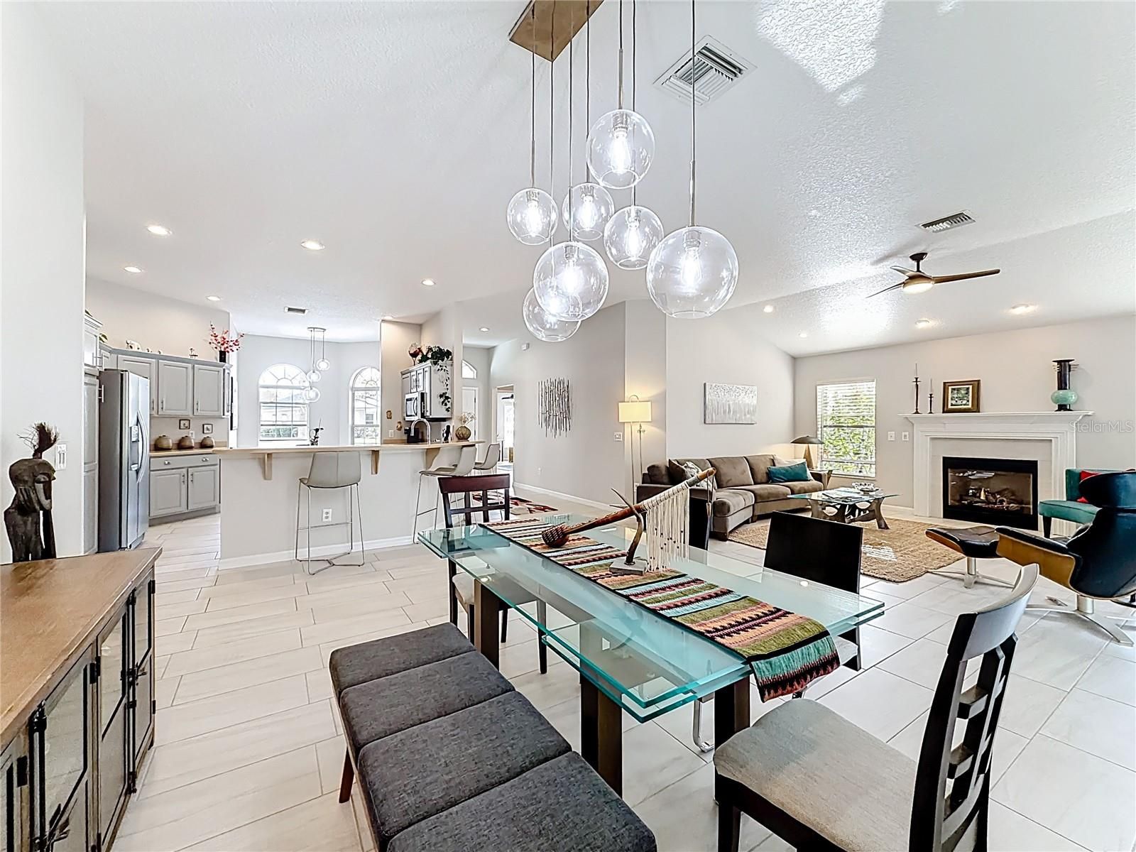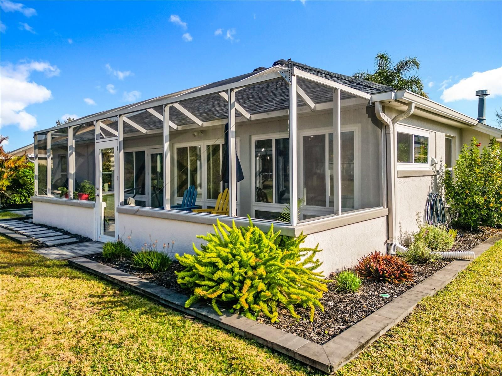 Looking for a Spacious Updated Home, Paid BOND, Backs to Championship Golf Course and has ROOM FOR A POOL? Then Look no further! This Beautiful Designer Gardenia 3 Bedroom 2 Bathroom Stucco Home has everything you are looking for. Updated and Contemporary Styling this home is Located on the 2nd Tee Box of Nancy Lopez Ashley Meadows Championship Golf Course. With a LARGE YARD ready for outdoor entertaining or installation of your own Pool. As you pull up to home you will be impressed by the lovely Paver Driveway, landscaping and clean color accents. Enter through the Artistic Glass Entry Doors you feel the expansiveness of this home. With 2 Private Guest rooms and private bath with walk in shower to the left. A Large eat in kitchen to your right with STAINLESS APPLIANCES, GAS RANGE, CORIAN COUNTERS and plenty of storage and counter space fit for a professional chief. The home has Custom PORCELAIN TILE through out, NO POPCORN, Blinds, Solar Tube, HIGH CEILINGS, Updated CUSTOM LIGHTING, & Updated Ceiling Fans. A GAS FIREPLACE is the Focal Point in the Living Room along with a spacious dining room. The ENCLOSED LANAI extends your living space, has Aggregate Epoxy Pebble flooring and is heated and cooled by a portable unit. Their is also a BIRDCAGE attached, perfect to sit out and watch nature or a golfer or two. The ROOF was replaced in 2022, HVAC 2018, HWH 2017, Garage Door Opener 2024, PAID BOND. The Laundry Room/Mud Room has space for storage and leads to the 2 Car Garage with Epoxy Flooring. If Shopping, Restaurants, or Accessibility in and out of The Villages is important to you then you will Love this location. Not only do you have The Nancy Lopez Country Club, Golf Courses, and Pool Bar just minutes away by Golf Cart but you have Publix, Walgreens, The Back Porch, Beef O'Brady's, Bealls and so much more... This Home is so Spacious Inside and Out and Shows Like NEW! Furnishings are offered separately. Not often do you find a home so ready to just Move In an start living the Good Life! Schedule your showing today before this one gets away.