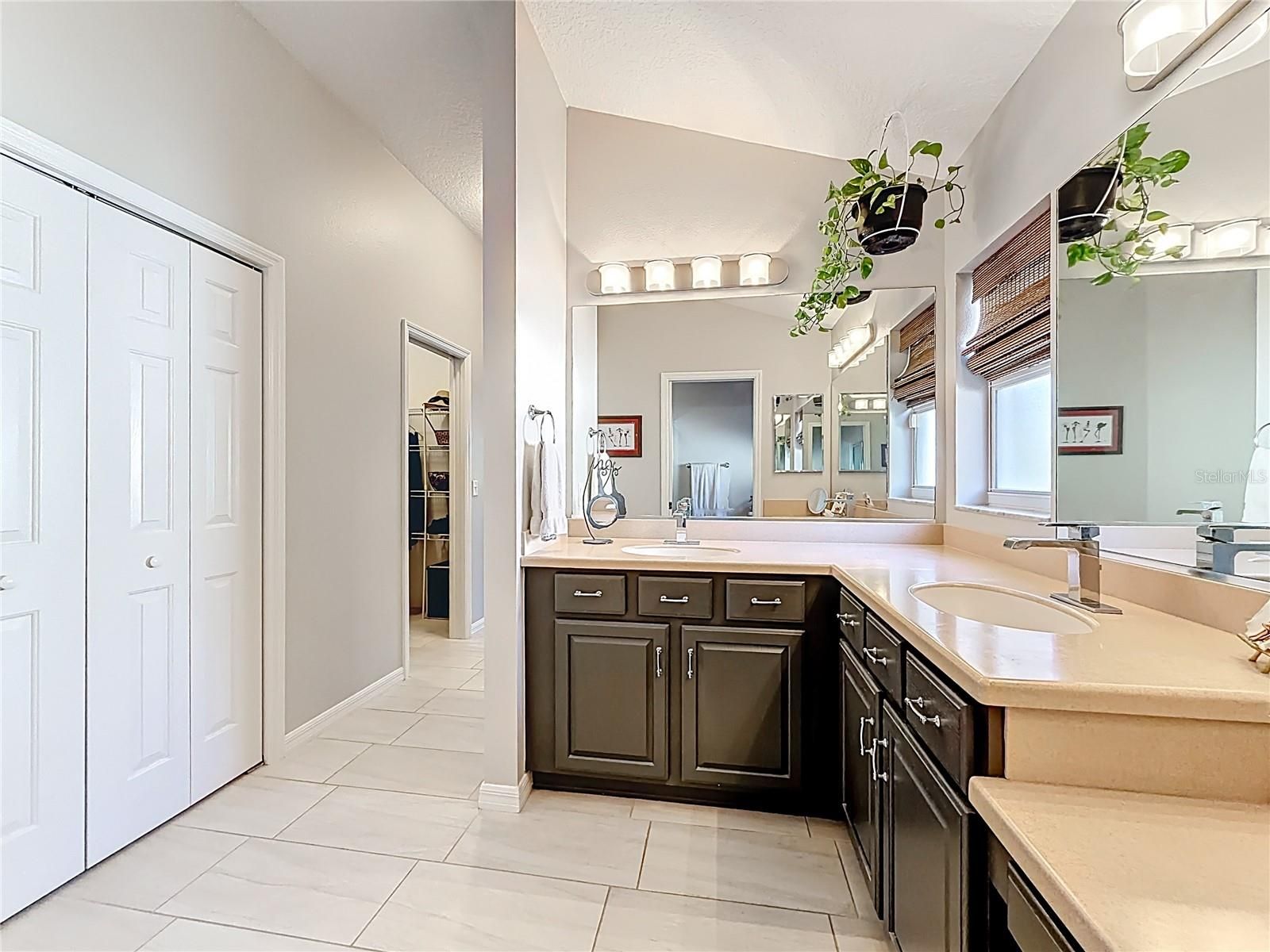 - Ceiling Fan(s), Eat-in Kitchen, High Ceilings, Living/Dining Room, Open Floorplan, Main Level Primary, Solid Surface Counters, Split Bedrooms, Stone Counters, Thermostat, Vaulted Ceiling(s), Walk-In Closet(s), Window Treatments