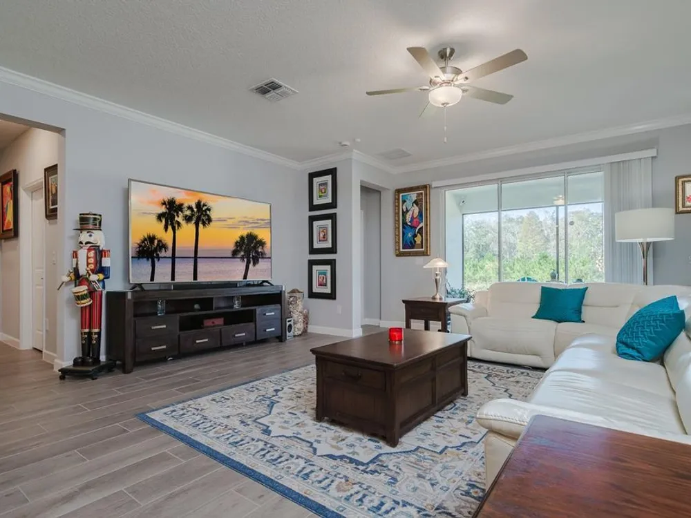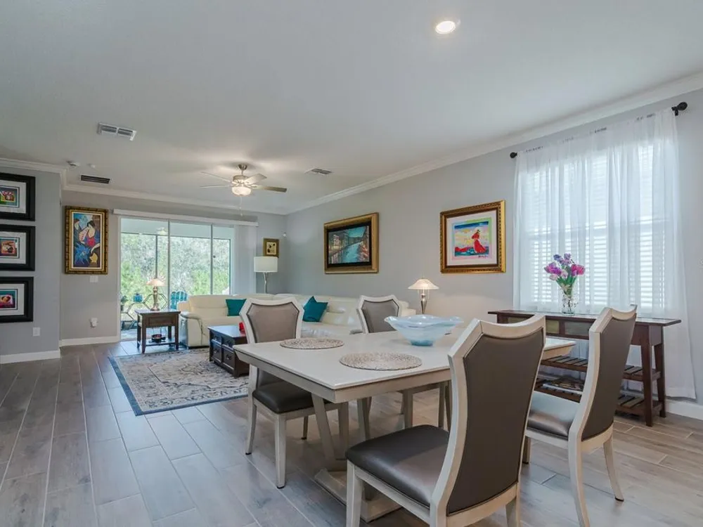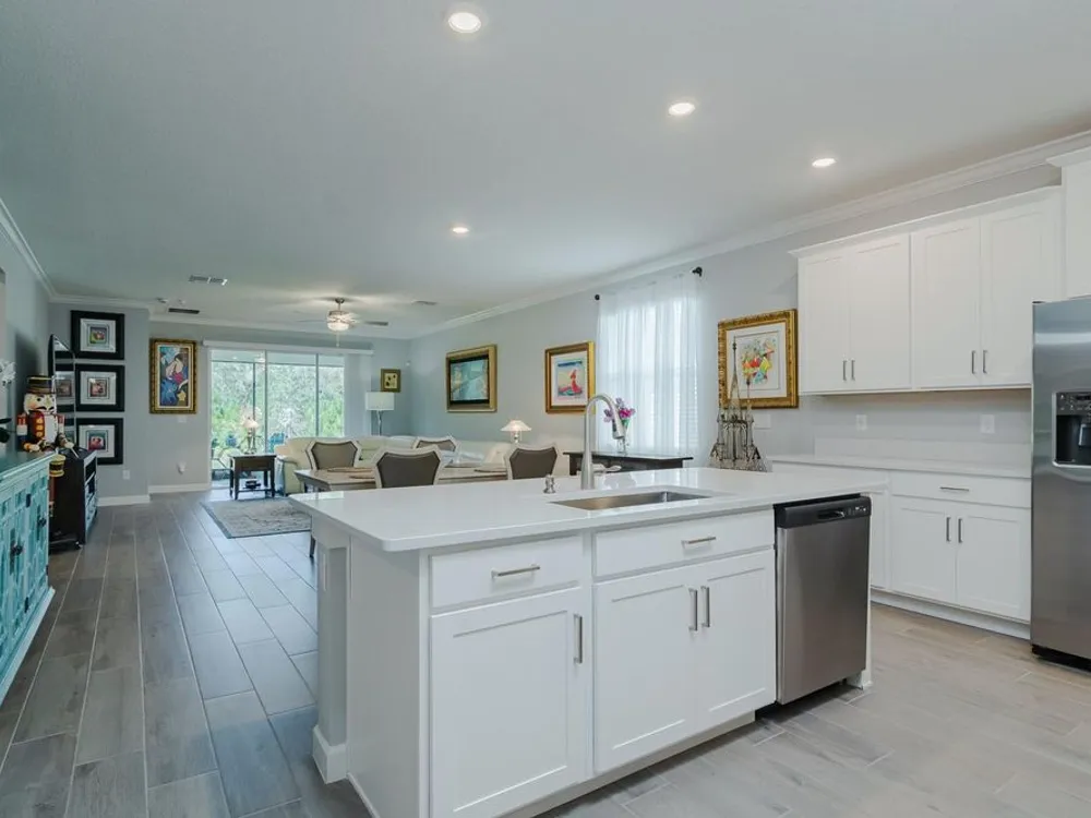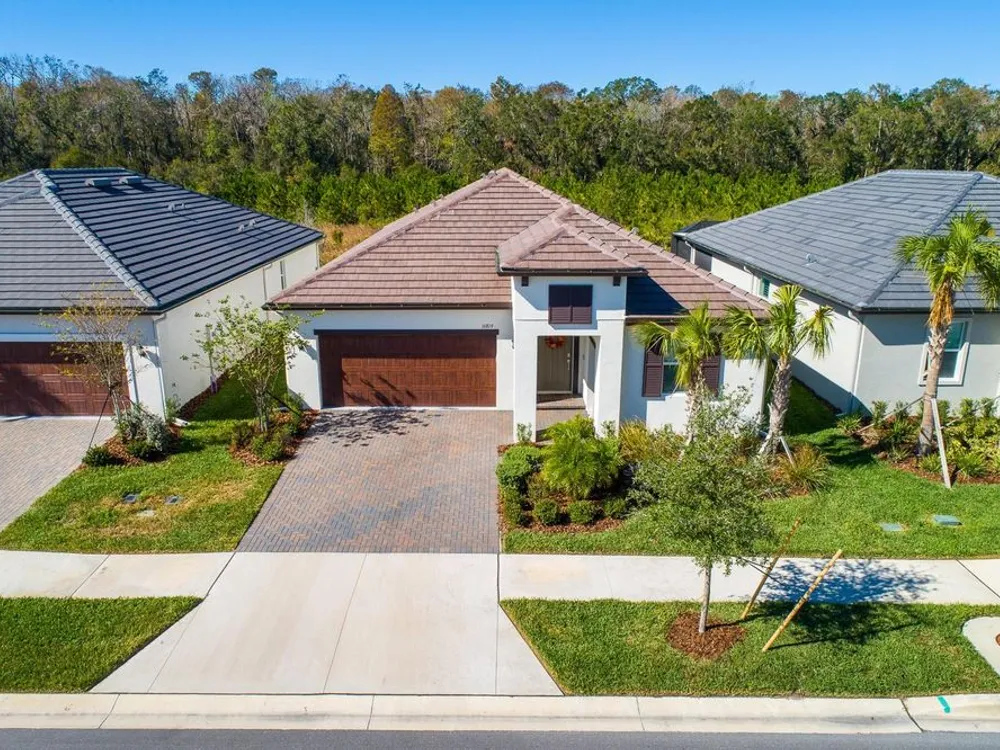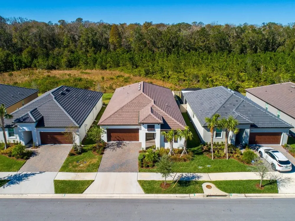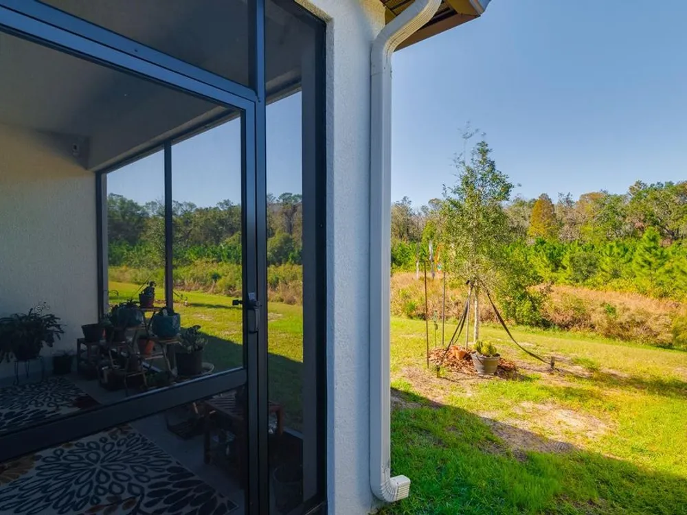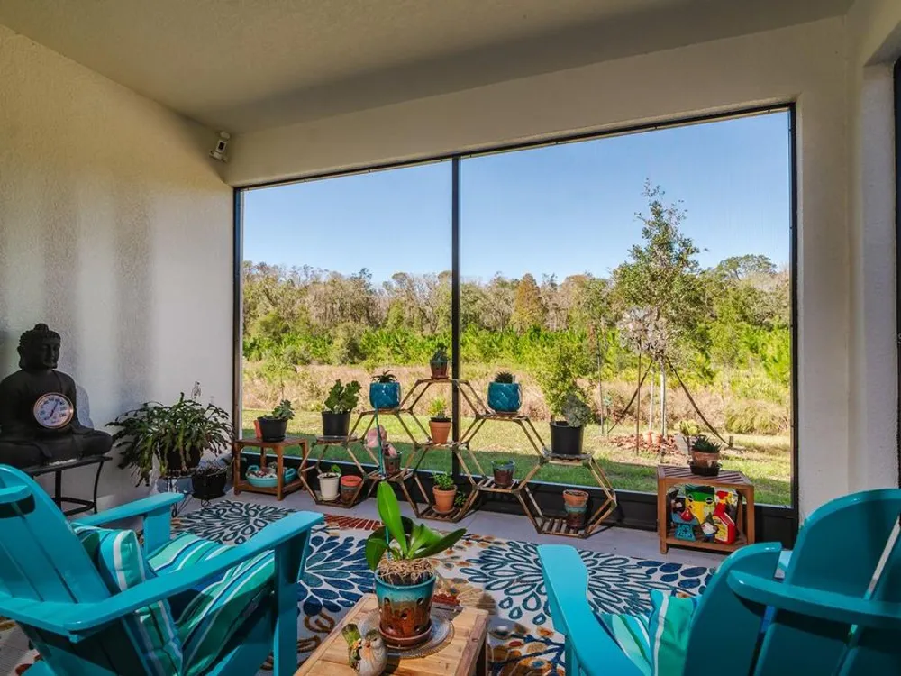 Only a 1 MINUTE WALK to the new Medley Club at Angeline- the ultimate 55+ retreat—think fitness, fun, and fresh Florida vibes all in one place! Welcome to this stunning, nearly-new 3-bedroom, 2.5-bathroom home, just one year old, located in the sought-after Angeline Active Adult Community in Land O' Lakes, FL. Spanning 2,145 sq ft, this spacious, single-story residence offers a modern design with both style and comfort. Featuring a 2-car garage plus a separate golf cart garage, this home is perfect for an active lifestyle. The thoughtful upgrades, totaling $30,000, include a screened enclosure, gutters, soft water system, a butler’s pantry, and a full interior repaint. Situated on a desirable conservation lot, enjoy privacy and serene views from the beautifully landscaped grounds and screened rear porch. Inside, the open-concept layout effortlessly connects the kitchen, family room, and dining room, creating an ideal space entertaining. The stylish kitchen boasts a walk-in pantry, while the spacious family room flows out to the tranquil patio. A versatile flex space offers endless possibilities for a home office, hobby room, or additional living area. The expansive owner’s suite provides a peaceful retreat with a spa-like private bathroom, perfect for unwinding after a long day. Two additional bedrooms are perfect for overnight guests, and crown molding throughout adds a touch of elegance. Angeline is a premier 55+ master-planned community with exceptional amenities including a private, multi-million-dollar resort-style amenity center (JUST A SHORT WALK AWAY!), complete with a pool, sports courts, and clubhouse. Enjoy the future recreational lagoon, 3,600 acres of green space, and over 100 miles of walking, jogging, and biking trails. A community farm and endless outdoor activities await in this active adult haven. Don’t miss your chance to own this beautiful home in Angeline—where luxury living meets a vibrant, active lifestyle.