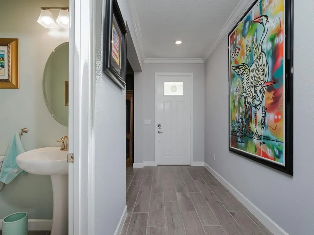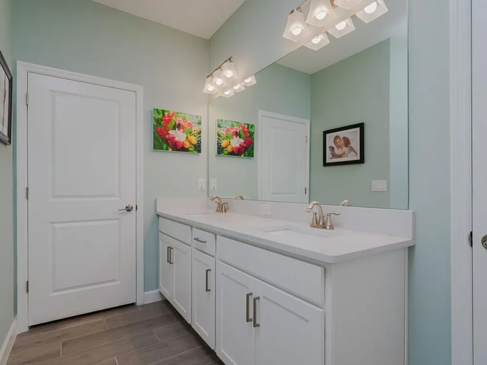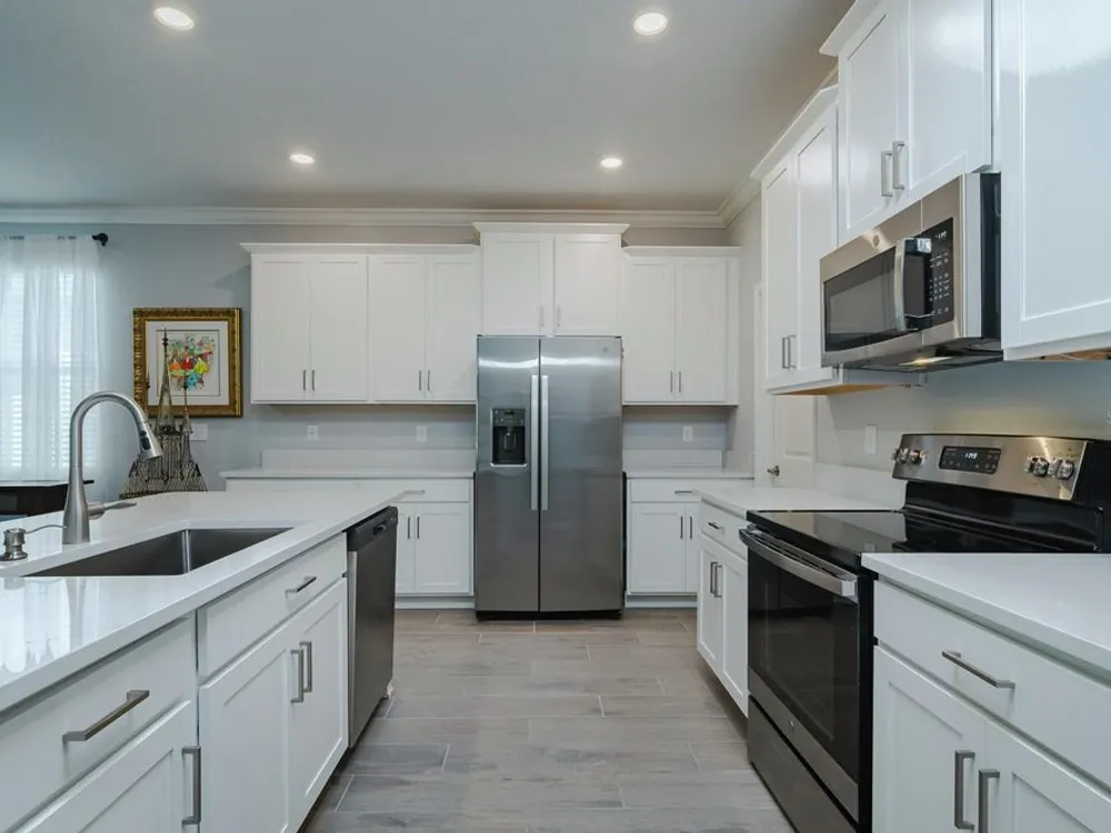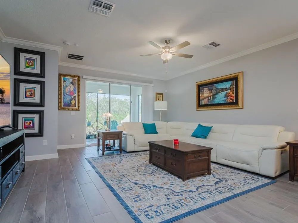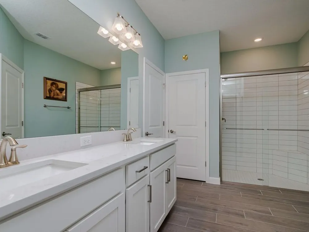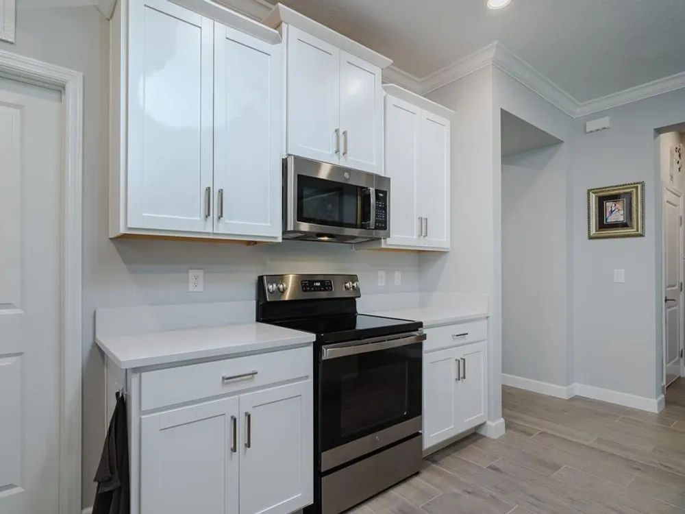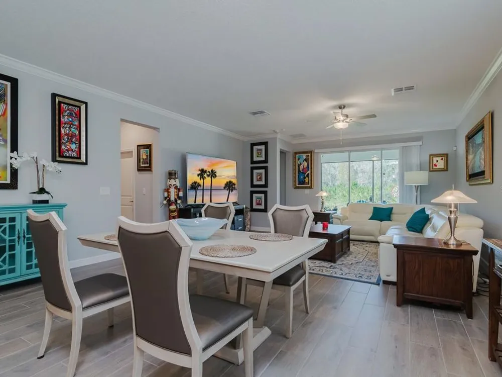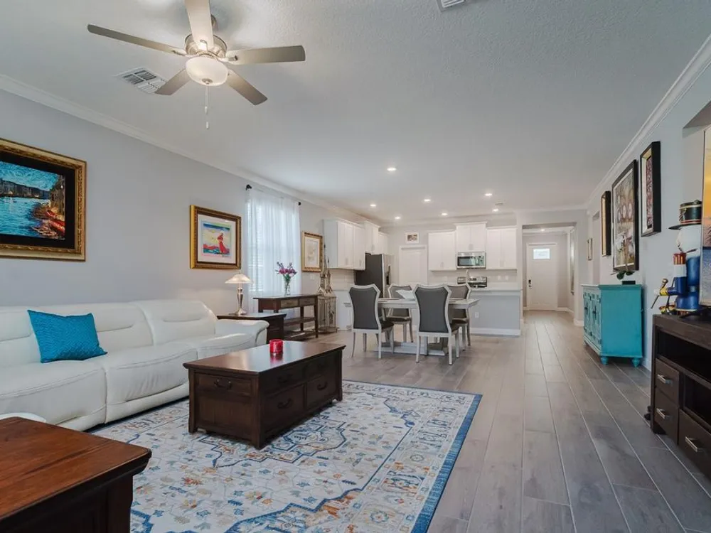 Only a 1 MINUTE WALK to the new Medley Club at Angeline- the ultimate 55+ retreat—think fitness, fun, and fresh Florida vibes all in one place! Welcome to this stunning, nearly-new 3-bedroom, 2.5-bathroom home, just one year old, located in the sought-after Angeline Active Adult Community in Land O' Lakes, FL. Spanning 2,145 sq ft, this spacious, single-story residence offers a modern design with both style and comfort. Featuring a 2-car garage plus a separate golf cart garage, this home is perfect for an active lifestyle. The thoughtful upgrades, totaling $30,000, include a screened enclosure, gutters, soft water system, a butler’s pantry, and a full interior repaint. Situated on a desirable conservation lot, enjoy privacy and serene views from the beautifully landscaped grounds and screened rear porch. Inside, the open-concept layout effortlessly connects the kitchen, family room, and dining room, creating an ideal space entertaining. The stylish kitchen boasts a walk-in pantry, while the spacious family room flows out to the tranquil patio. A versatile flex space offers endless possibilities for a home office, hobby room, or additional living area. The expansive owner’s suite provides a peaceful retreat with a spa-like private bathroom, perfect for unwinding after a long day. Two additional bedrooms are perfect for overnight guests, and crown molding throughout adds a touch of elegance. Angeline is a premier 55+ master-planned community with exceptional amenities including a private, multi-million-dollar resort-style amenity center (JUST A SHORT WALK AWAY!), complete with a pool, sports courts, and clubhouse. Enjoy the future recreational lagoon, 3,600 acres of green space, and over 100 miles of walking, jogging, and biking trails. A community farm and endless outdoor activities await in this active adult haven. Don’t miss your chance to own this beautiful home in Angeline—where luxury living meets a vibrant, active lifestyle.