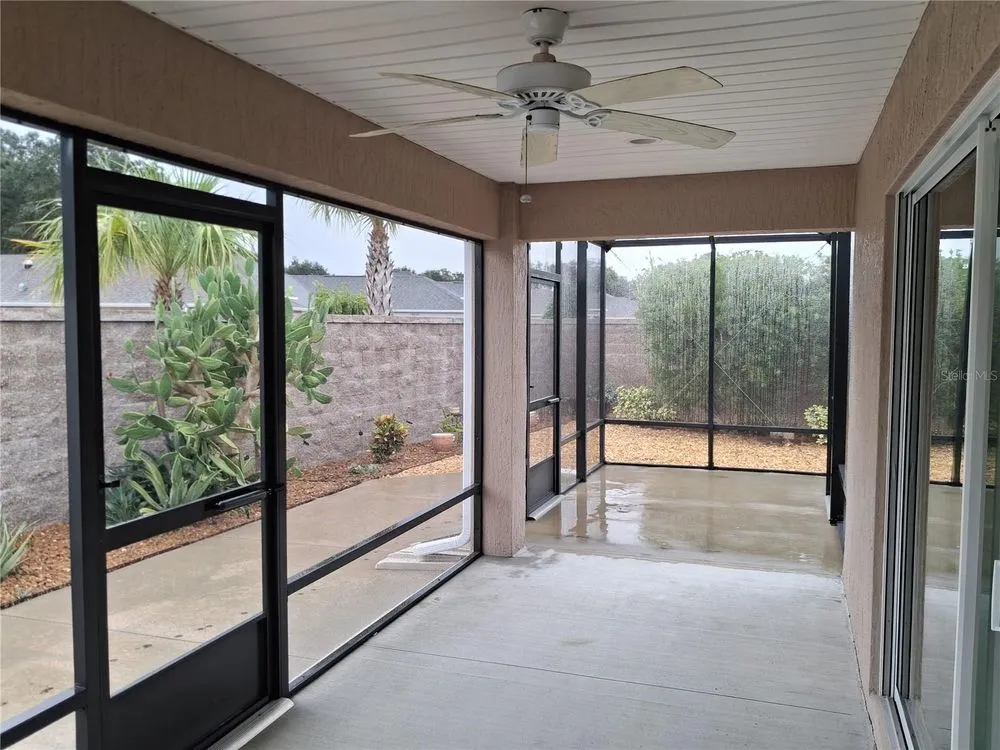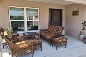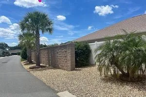 Honey stop The Car! Nestled in quiet and safe Soulliere Villas in our popular over 55 The Villages Florida 32162. Just minutes to grocery, bank and shopping. Bond IS PAID!!! This lovely 3/2 courtyard is just a short walk to our private secure Soulliere community pool. Home has laminate flooring in living area and master bedroom. Plush carpet in 2 additional bedrooms. Volume ceilings, newer appliances and roof, corner larger lot.Stone counters in kitchen with some pull out shelves and drawers. Lots of cabinets. Kitchen has area for table and chairs with over the counter view of large living-dining area. Spacious wrap screened lanai with large open front porch. Easy care decorative stone filled landscaping with wrap around private planting. small putting green to keep sharp. Understated value must see and feel this home!
