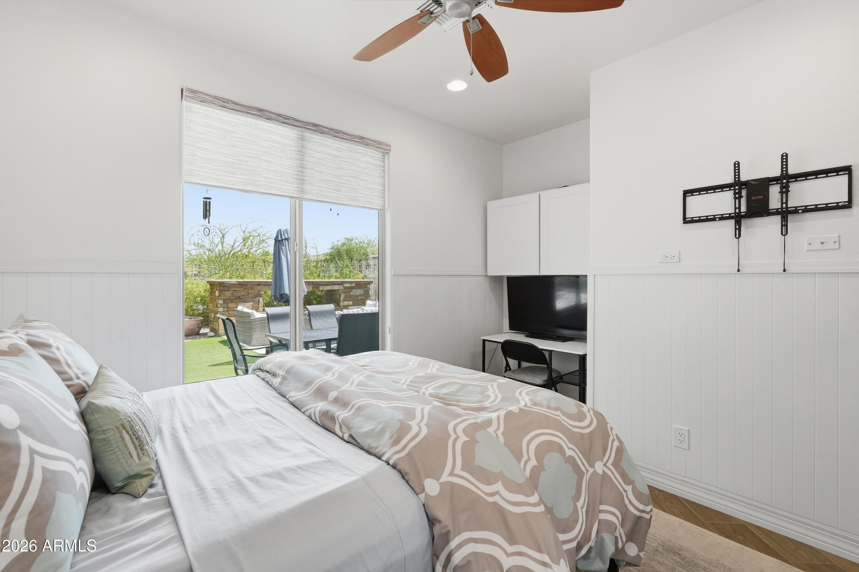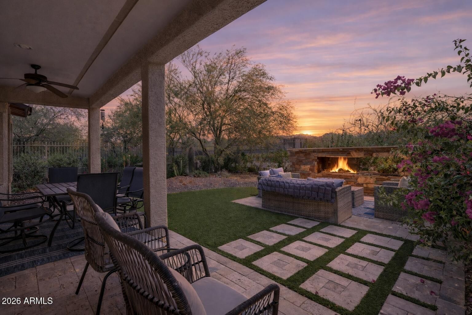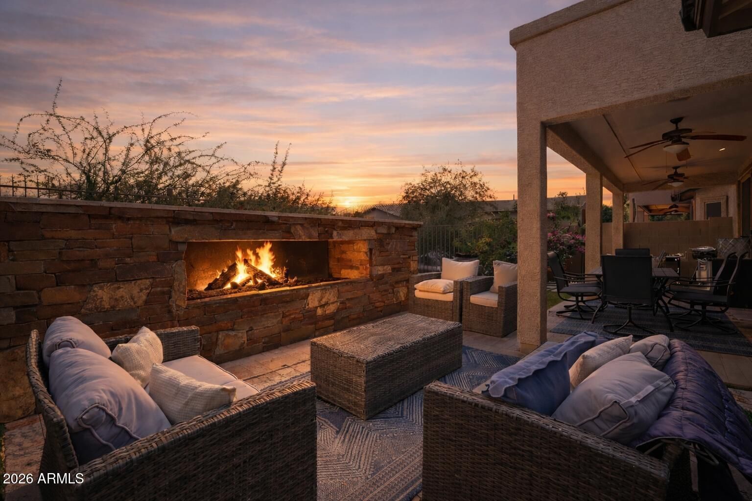 Former model home with owned solar in the highly desirable 55+ community of Cantamia! This light-filled home features an open floorplan with patio doors that create seamless indoor-outdoor living. Enjoy sunrise mornings in the private front courtyard and relaxing evenings on the backyard patio with gas fireplace. Outdoor spaces feel like true extensions of the home, perfect for entertaining or quiet relaxation. Excellent location near pickleball courts and community amenities. Experience resort-style living in one of Goodyear's most sought-after active adult communities.