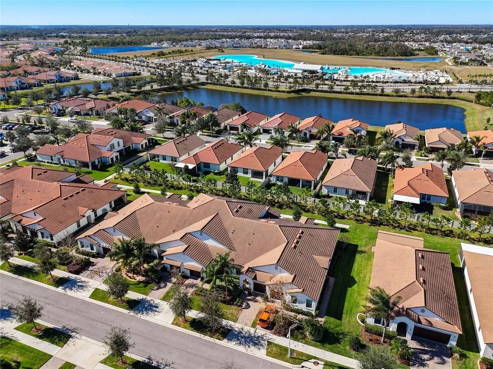 Welcome to a vibrant and move-in-ready Aurora Villa located in the exclusive Medley at Southshore Bay—a premier 55+ upscale community just south of Tampa Bay. This beautiful villa, perfect for both full-time and seasonal living, offers 1,737 square feet of thoughtfully designed space featuring 2 spacious bedrooms and 2.5 baths, all equipped with the latest in luxury and modern technology. The main-level Grand Master Suite boasts an ensuite with dual vanities, a walk-in shower, a large walk-in closet, a linen closet, and a private water closet for ultimate convenience. Upstairs, your guests will enjoy a private retreat with a full guest suite and a large loft—perfect for casual entertaining. As a bonus, the home includes a rear golf cart garage for added functionality. The open-concept layout shines with a spacious kitchen, complete with granite countertops, a large island, GE stainless steel appliances, and elegant ceramic tile flooring. Whether you’re hosting friends or relaxing at home, this villa’s design ensures comfort and style. Living here means enjoying the remarkable private resort-style amenity center that offers a true vacation lifestyle. Dine at the café, sip cocktails at the walk-up poolside bar, or unwind in one of the diverse pools or the spa. Stay active with pickleball courts, a state-of-the-art gym, and billiards, or simply enjoy the stunning lagoon and the endless array of activities and entertainment. The new ballroom hosts neighborhood events, adding a vibrant social element to the community. Even your furry friends are catered to with a convenient dog washing station and easily accessible community mailboxes. Proximity to Tampa, beaches, shopping, and more makes this location ideal. This is your opportunity to live in the most desirable lagoon community in Wimauma, where every day feels like a vacation.