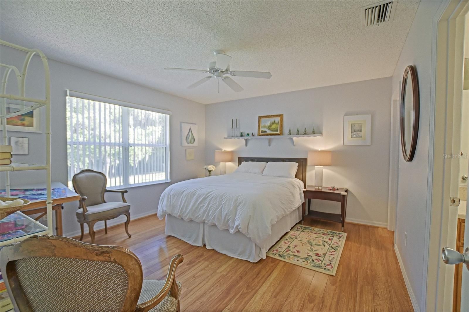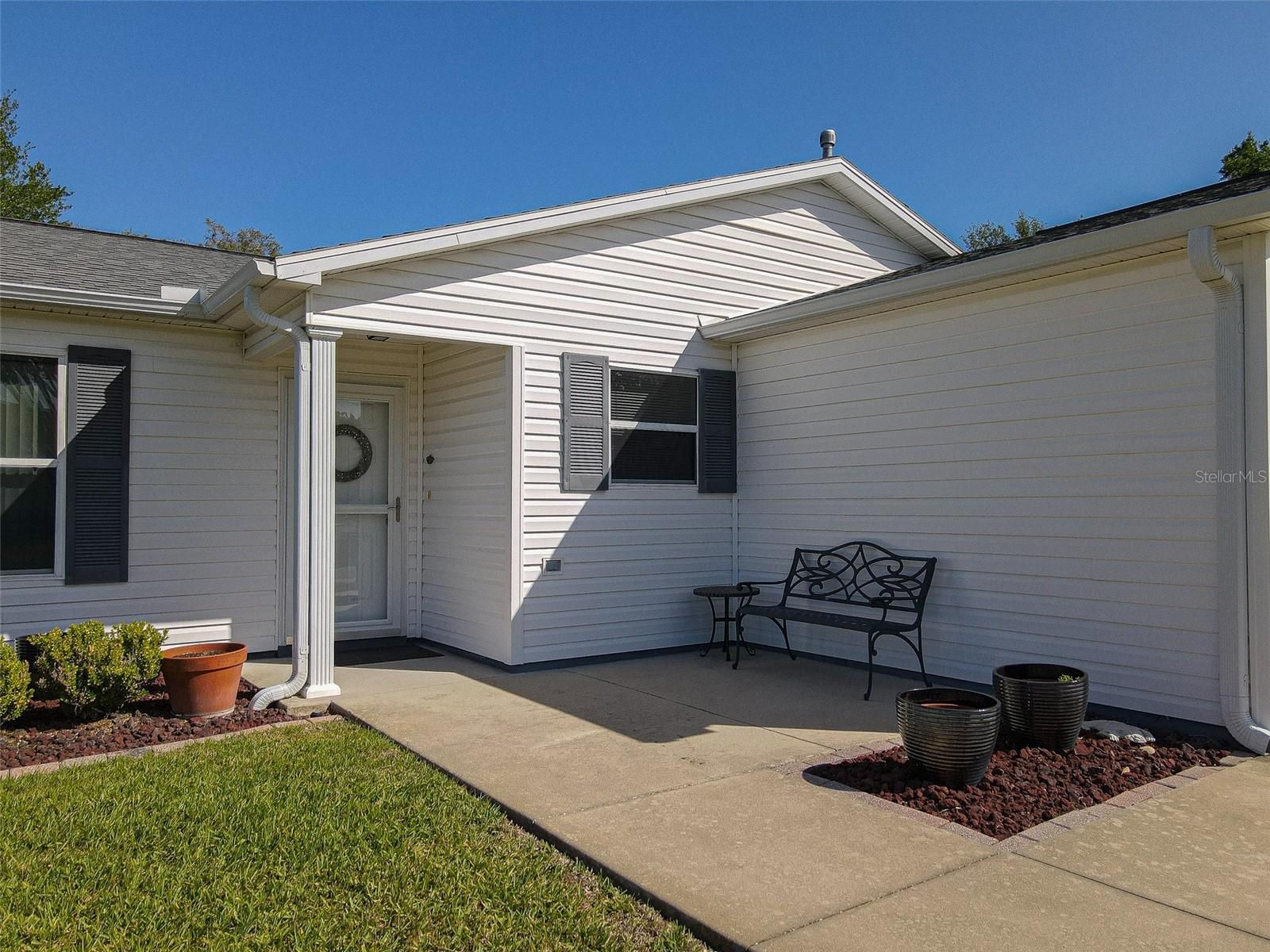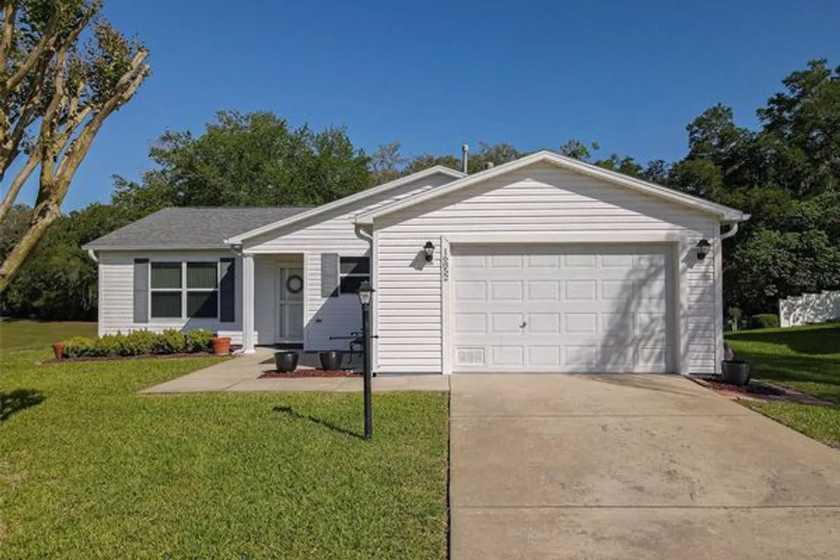 Welcome to your next chapter in The Villages, Florida's premier active-lifestyle community. This thoughtfully designed 1,353-square-foot single-story home provides an inspired blend of comfort and elegance, inviting you to live beautifully every day. Warm wood laminate floors flow throughout, complemented by ceiling fans in every room and an abundance of natural light that creates an airy, uplifting atmosphere. Private backyard and side yard! BOND IS PAID! The well-appointed kitchen features rich wood cabinetry, gleaming stone countertops, and a full suite of stainless-steel appliances—perfect for everything from morning coffee to entertaining guests in the adjoining dining space. you envision a peaceful reading nook, creative studio, or welcoming den for guests. HVAC new in 2024, water heater 2020, roof 2019. The serene primary bedroom, bathed in natural light from large sliding doors, provides a tranquil escape at day's end. Two beautifully finished bathrooms include a stunning glass-enclosed walk-in shower and an elegant vanity with stone countertops. A private patio completes this exceptional home, offering the perfect setting to savor Florida's glorious sunshine and embrace the unparalleled Villages lifestyle.