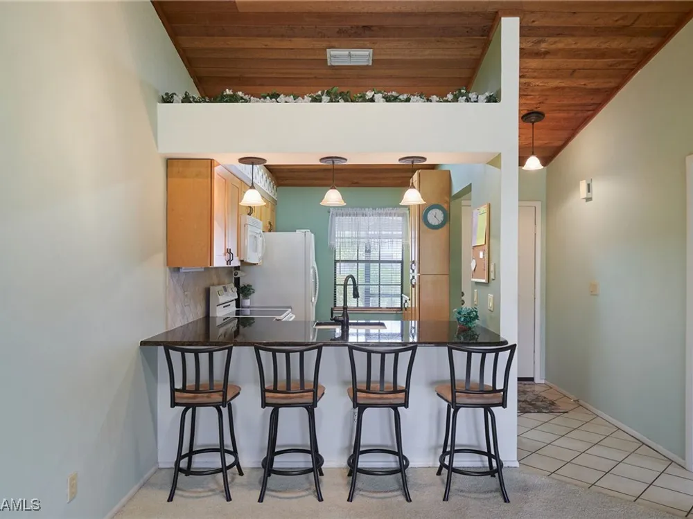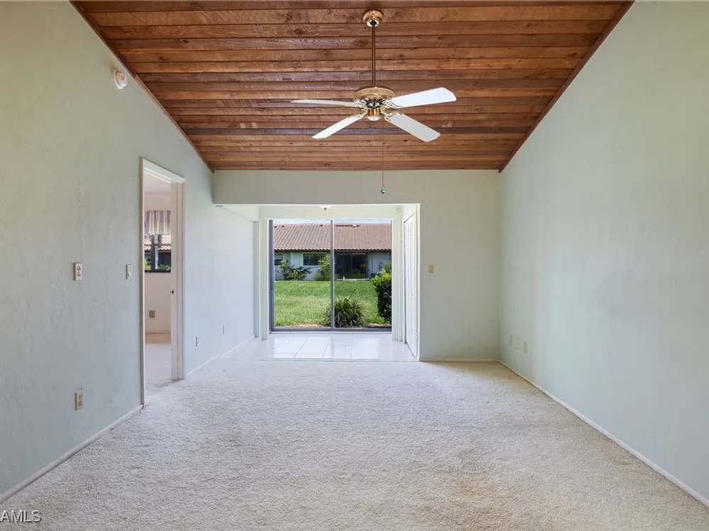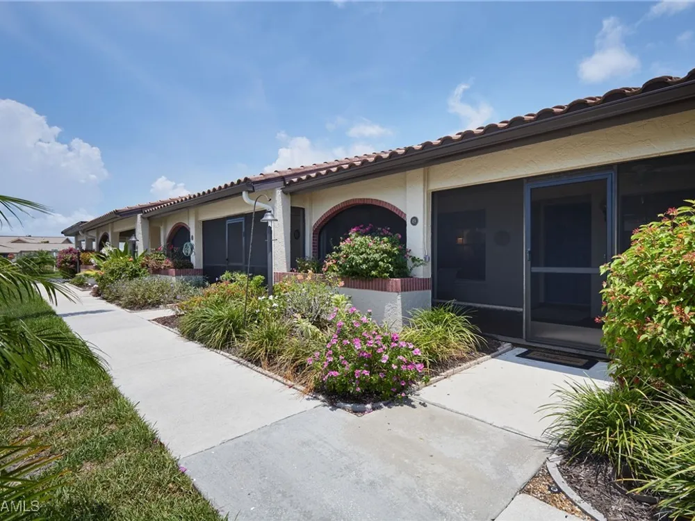 Lowest price 2 bedroom/2 bath property in Cinnamon Cove! You'll love this villa- the living space is all on one floor with no one above. It's just steps from the clubhouse and community resort-style pool. It has assigned covered parking and a storage closet located at the end of the building. The community has an activities director, and the amenities include tennis and pickle ball courts, bocce courts, billiards, library, entertainment stage and outdoor BBQ. $575 per month condo maintenance fee includes master association, maintenance and reserves for recreation facilities, property and flood insurance, recreation facilities, and gated security. Bathrooms have been updated, kitchen has wood cabinetry and granite countertops. A/C, dryer and front lanai ceiling fan were replaced in 2021. Water heater replaced in 2022, and in 2023 Storm Smart Rolldown shutters were added for storm/wind protection. Dishwasher was replaced and new roof and gutters were completed in 2024. Located just a short drive to the Gulf beaches of Ft Myers Beach and Sanibel Island, this is your opportunity to start enjoying a Florida lifestyle. Put this villa at the top of your list.
