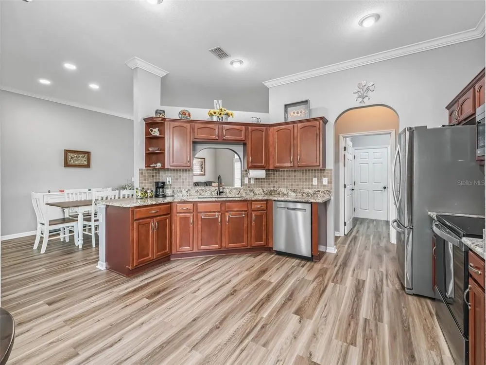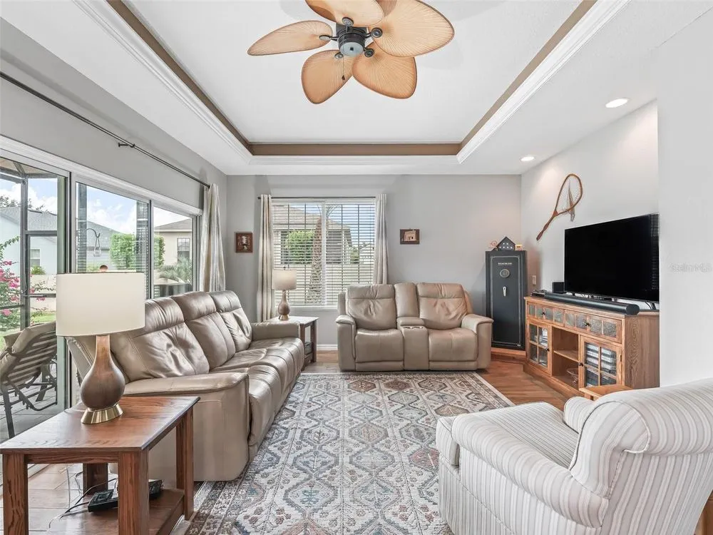 Stonecrest is a private, gated community w/ controlled access.Furnishings available to purchase. Welcome to 16863 SE 110th Ct. Rd., a maintained and updated home offering comfort, efficiency, and style in one of Summerfield’s premier 55+ communities—Stonecrest. This spacious residence boasts 2,799 total square feet under roof, including a 20x20 garage, and two screened porches perfect for enjoying Florida’s sunshine in comfort and privacy. Upgrades and improvements (2023–2025) add exceptional value: •NEW architectural shingle roof (July 2025),•Freshly painted interior (2025),•LVP flooring living areas, kitchen, guest bath, and hallways (2024), Updated kitchen appliances including a new range, dishwasher, and ice maker (2024), • SOLARIS air purification system integrated into HVAC (2024), •Plantation shutters and roll-up blinds on the west-facing screened porch (2024), • Split A/C & heat unit in the great room for customized climate control (2023), •Updated water heater and added water softener system (2023–24), •Electric screen for the garage door, enhancing both utility and curb appeal (2024), Inside, you'll find 10’ ceilings, ambient lighting, and tray ceilings that add architectural charm. The great room features a GREE wall unit for efficient heating/cooling and opens through triple-pane sliding doors to a screened porch with ceramic tile flooring and a roof canopy for added shade. The kitchen has granite countertops, a tile backsplash, maple-finish cabinets with rollouts, and a closet pantry. The laundry room offers additional storage, a utility sink, and backsplash. The dining room is lit with recessed LED ceiling lights, creating a warm, inviting space for dining. Exterior highlights include: •Professionally landscaped yard with stone, roses, bushes, curbing, and a privacy wall, • Three palm trees and a fruit tree, •Two screened porches (12x10 and 12x18), •Private mailbox /outdoor lighting, •Dish satellite (conveys with home), Community features in Stonecrest include golf, pools, fitness, and recreational amenities, with the added benefit of being golf cart accessible to nearby shopping and dining. Discover Your New Lifestyle at Stonecrest! Today could be the BEST DAY OF THE REST OF YOUR LIFE! If you're searching for a home in a private, gated, golf community, look no further—you've found your dream lifestyle at Stonecrest. Nestled in the heart of Central Florida, Stonecrest is a deed-restricted, active 55+ golf community that offers the perfect blend of luxury, convenience, and recreation. Imagine waking up every morning in a community designed for those who cherish an active lifestyle, where golf cart access takes you to nearby shopping and more. At Stonecrest, you'll have access to an array of amenities, including four community pools, one of which is a serene indoor saltwater pool—along with a spa and a fully equipped fitness center. Whether you're looking to stay fit, relax, or meet new friends, you'll find it all here. With over 90 clubs to join, you'll never run out of opportunities to explore your passions and hobbies. The clubhouse is a hub of social activity, featuring a popular, casual dining restaurant where you can enjoy great food and even better company. For the golf enthusiast, Stonecrest boasts 18 holes of championship golf, providing a challenging and scenic experience. The fun doesn’t stop there—enjoy lighted pickleball courts, softball, and so much more. Welcome to Stonecrest.
