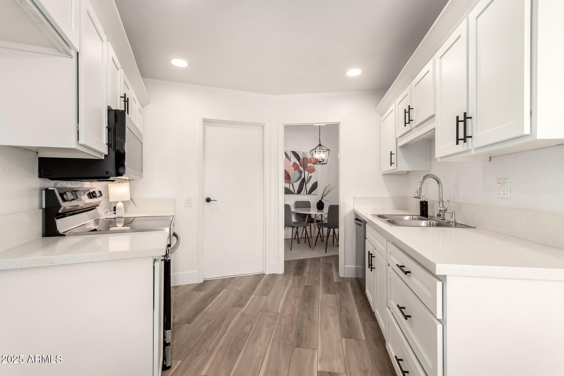 *Back on market, but now FULLY UPDATED!!!* Welcome to this stunning, fully updated condo in the beautiful 55+ community of Sun City! This move-in-ready home has been completely refreshed with modern finishes throughout, including luxury vinyl plank flooring, brand new carpet, fresh interior paint, and stylish new fixtures. The kitchen shines with updated cabinetry, new stainless steel appliances, and elegant finishes, while both bathrooms have been tastefully remodeled for a clean, contemporary look. Enjoy the Arizona sunshine on your spacious back patio—perfect for relaxing or entertaining. This active adult community offers endless opportunities to stay engaged, with constant activities, a sparkling community pool, and a wide range of amenities.
