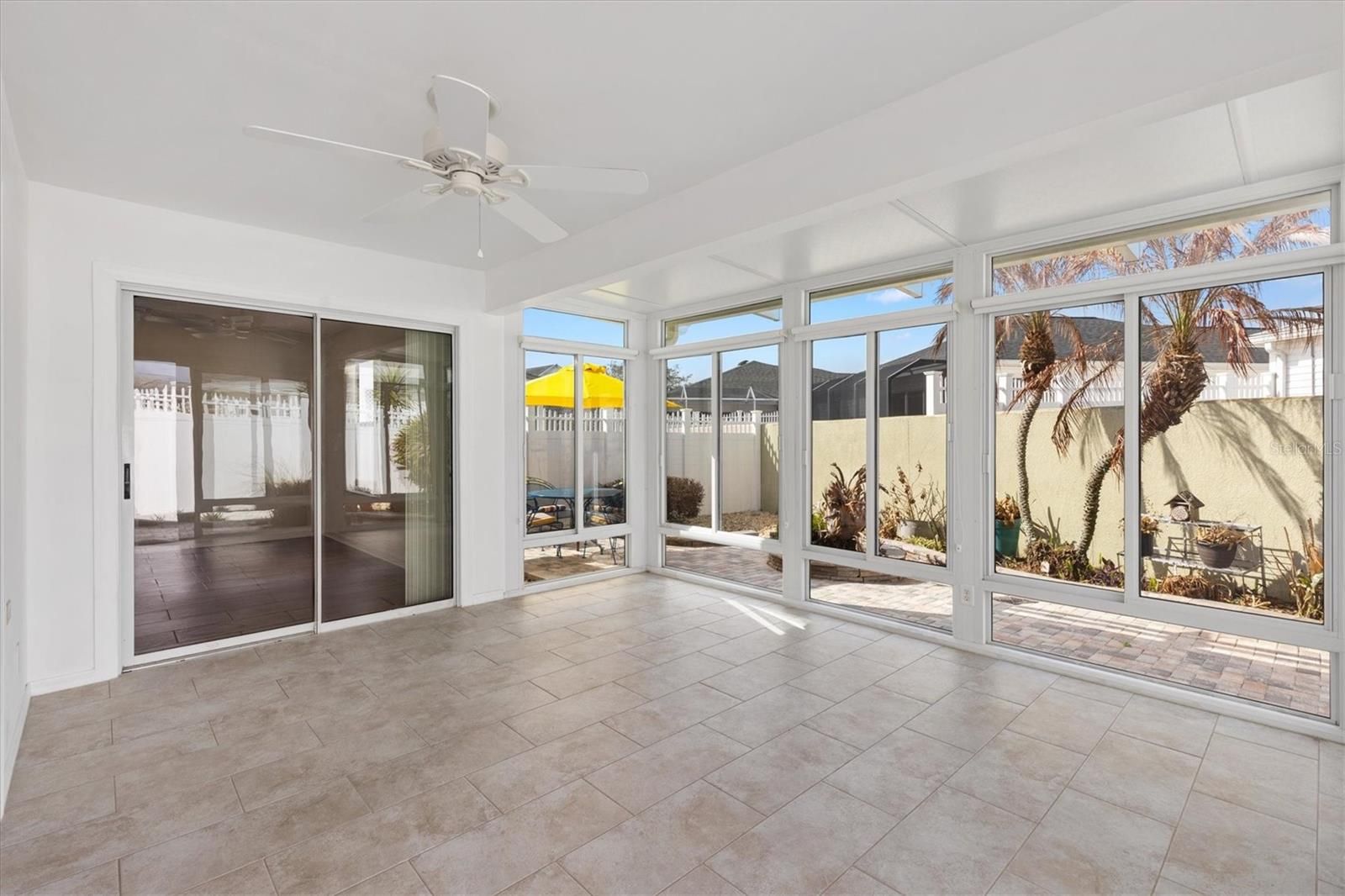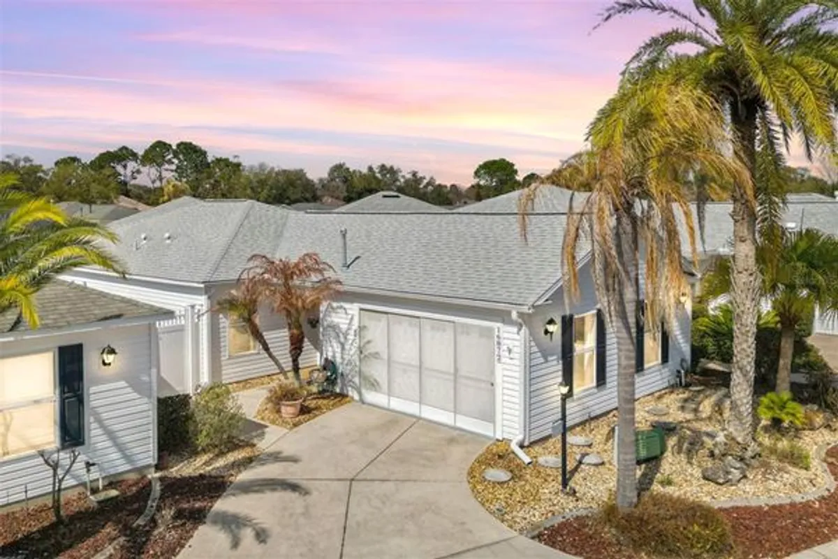 One or more photo(s) has been virtually staged. UPDATED COURTYARD VILLA WITH EXPANDED LANAI & PRIVATE BRICKED PATIO IN CALUMET GROVE! Welcome to 16872 SE 80th Ashgrove Terrace, located in Morning View Villas within the Village of Calumet Grove in The Villages, FL. Built in 2003, this beautifully maintained Courtyard Villa offers the low-maintenance aspects that Villager's love — featuring an expanded glass-enclosed lanai and a fully bricked private courtyard patio with mature landscaping. Inside, you’ll find an open floor plan with abundant natural light, spacious living and dining areas, and seamless indoor-outdoor flow. The expanded enclosed lanai provides valuable additional square footage — ideal for a Florida room, hobby space, office, or additional living area. The private courtyard is perfect for entertaining, grilling, gardening, or enjoying peaceful mornings. Mature plantings enhance privacy and create a serene outdoor retreat — a highly desirable feature in villa living. The primary suite offers comfort and privacy with an ensuite bath, while guest space is thoughtfully positioned for visiting family and friends. Located near championship golf courses, executive golf, recreation centers, swimming pools, shopping, dining, medical facilities, and nightly entertainment. Ideal for: Primary Residence, Seasonal Snowbird Home, Investment Property, Low-Maintenance Living, Private Outdoor Entertaining Space Move-in ready and perfectly positioned in one of The Villages’ most established villa communities. ***Roof 2020 / HVAC 2023 / HWH 2013 / Floors 2019***