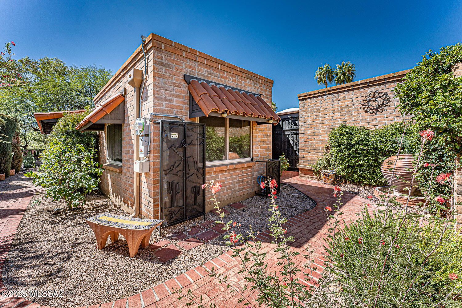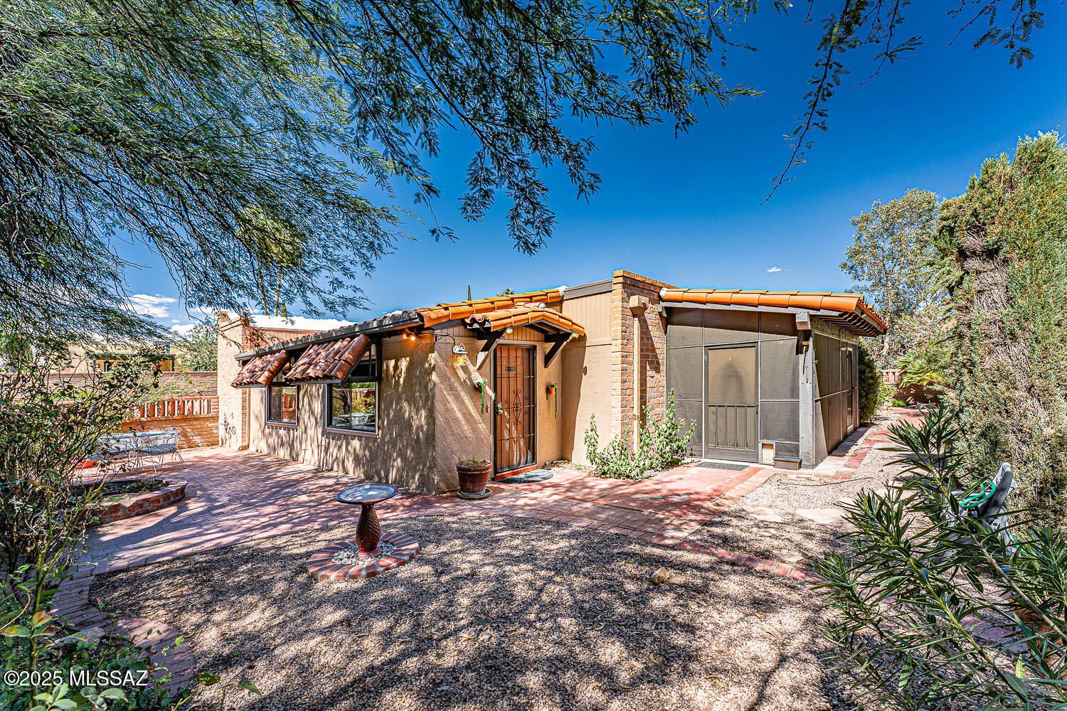 Are you looking for a quiet neighborhood & a home that offers privacy w/ample living space? This house features 2 bedrms, 2 bathrms, LGliving room, an efficient kitchen, 2 flexible spaces that can serve as a den, hobby area, or dining room, and a 2-car garage. There is extensive wall space suitable for displaying art. The AZ Room would be perfect for an office or an additional seating area. The exterior includes mature landscaping, low yard maintenance, & a spacious screened patio sunroom. The house has easy-care ceramic tile flooring, it was recently painted (both inside and out), has a newer HVAC system (2024), and owned solar panels (2023). The back yard is a lovely spot for observing sunsets & birds, & the front courtyd is framed by a fountain &gate. Great house for entertaining.