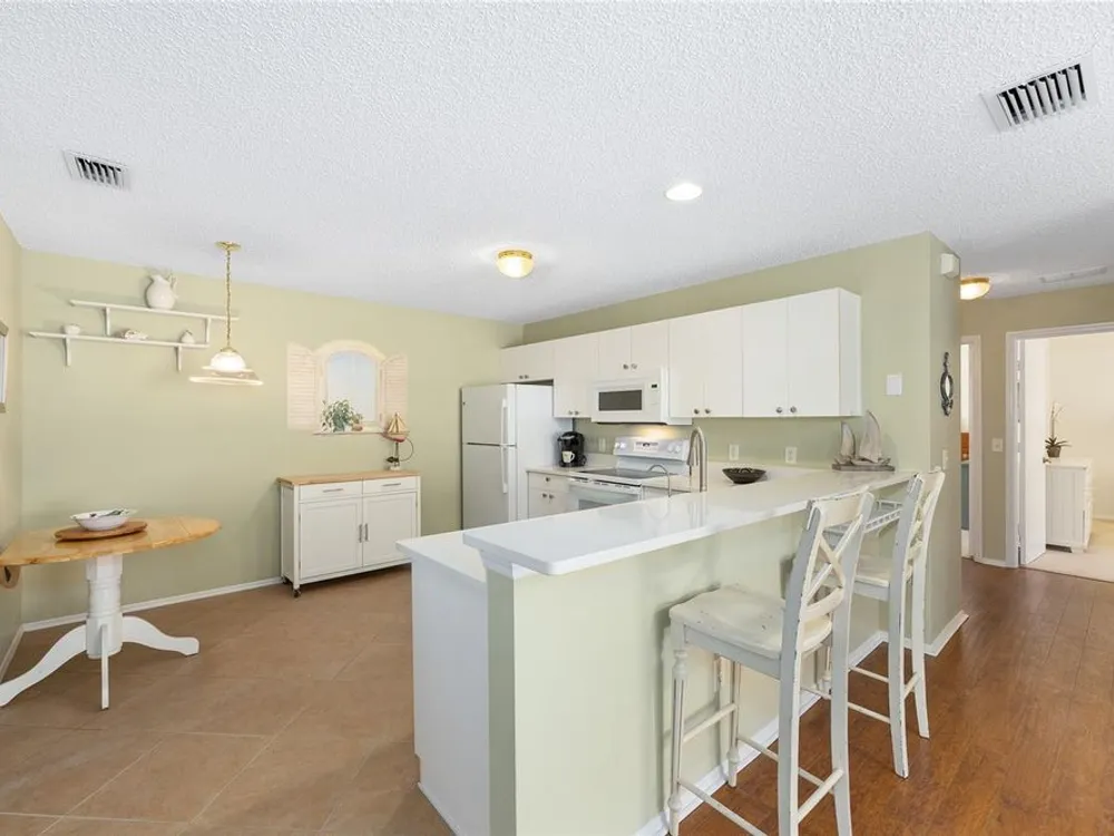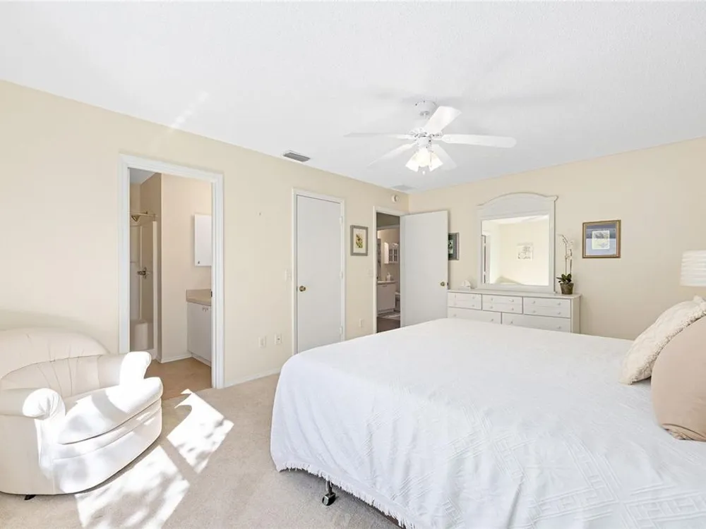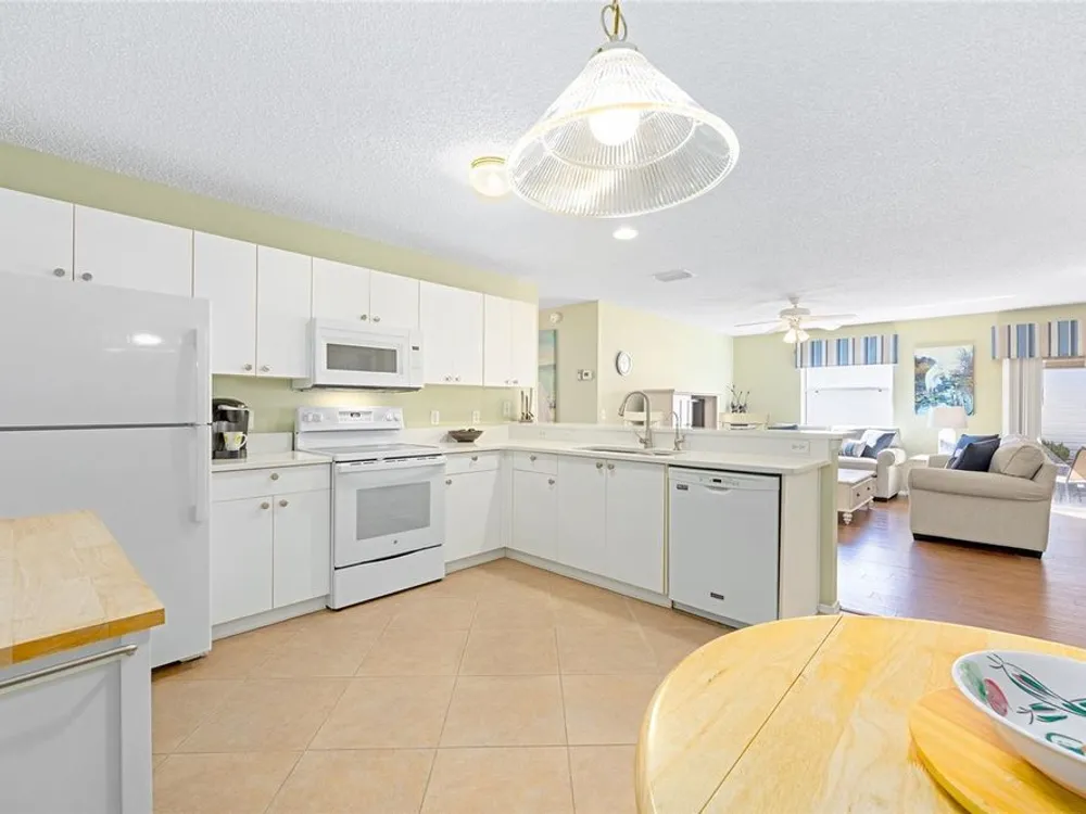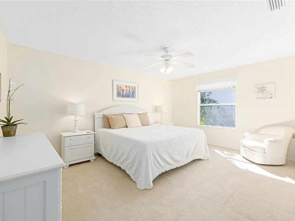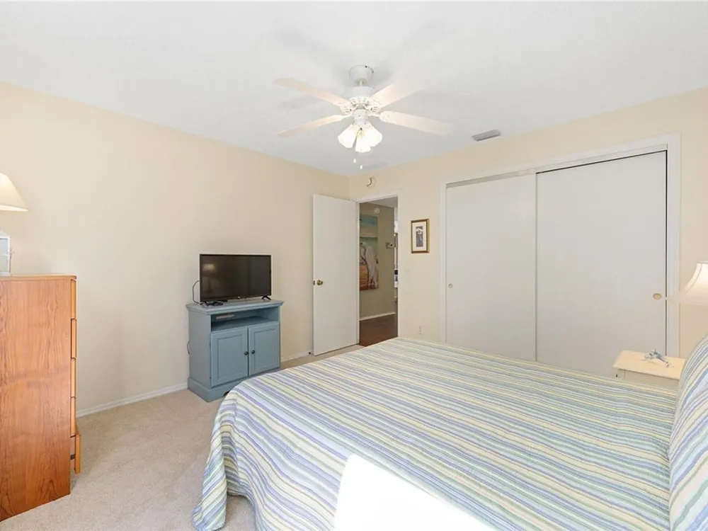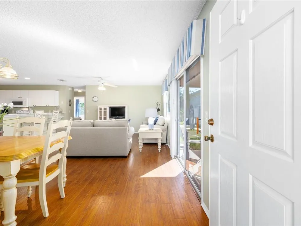 Welcome to this Beautiful TURNKEY Colony Villa in the Villa of Sunnyside in The Village of Woodbury. Close to Shopping and Recreation! BOND PAID! The Exterior Greats you with Awnings over front and side Patio Areas with Privacy in the Rear and Lovely Rock Mulch Garden Beds! The Front Lanai/Florida Room is Enclosed with Acrylic Windows and Privacy Shades! All the Wonderful Furnishings Stay! The Open Concept is Very Comforting! Dining, Living Room and Kitchen are Open for Great Entertaining! A Sliding Door in Dining Area Offers Easy Access to the Covered Side Patio! The Kitchen has Quartz Countertops, Reverse Osmosis with tap at Sink, Stainless Steel Sink with Gooseneck Faucet and Sprayer, Breakfast Bar and Kitchen Table! In the hall to the bedrooms and the Guest Bath, you will find a Linen Closet, Thermostat and Humidistat to Control Humidity! The Tiled Guest Bathroom has a Tub/Shower Combo and Single Vanity! The Guest Bedroom with Built in Closet has a Window to the back yard! A Primary Suite you will Love! Very Spacious, with Walk – In Closet and En-Suite Bathroom! The Primary Bath has a Good-Sized Counter with Single Vanity and Shower Enclosure with Curtain. The Garage Has Epoxied Floors, Gas HVAC (2014), Gas Tankless Water Heater(2011), Water Softener, Washer and Electric Dryer with Many added Wire Shelves and Cabinets. The Garage fits a Car and Golf Cart and Comes with a Screen on the Garage for Privacy! ROOF 2020. SOLAR 2024. Watch the Great Video with Drone Footage Attached