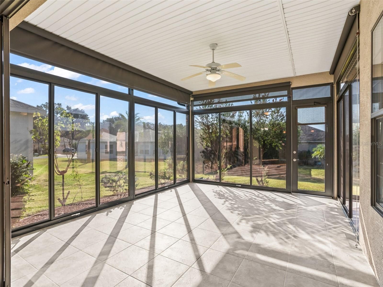 Stonecrest is a 55+ gated golf course community with all the amenities and 4 pools (one indoor), and just a Bridge Away By Golf Cart To The Villages! Come See this Beautiful 3/2 Maple with a 4ft Extended 2 Car Garage, Soaring 10ft Ceilings, No Carpet, Open and Split Floor Plan, Extended Enclosed Lanai with Mini Split (2020), NEW ROOF 2025, HVAC 2020, and Tremendous Curb Appeal! You will be Impressed by the Meticulously Manicured Professional Landscaping featuring Zoysia grass, Tropical foliage, Paver Curbing, Designer Paver Driveway & Walkway, and Elegant Covered Front Entrance with Sidelight Accented Door! The Fantastic Open Concept and Split Floor Plan, provides plenty of Space, and Natural Light, making the Maple model just perfect for Entertaining Friends and Family! The a Large Living area flowing seamlessly to the Eat in Kitchen with 8ft Stackable sliding door access to the Lanai, creating a Spectacular Space for Social Gatherings! The Spacious Kitchen showcases an Eat in Area with access to the Lanai, Granite countertops, a Nice Size Pantry Closet, Stainless Appliances, Solid Wood cabinets, and a Generous Breakfast bar with Upgraded Pendant light fixtures. The Split Floor plan provides Maximum Privacy for both the Owners and their Guest, with the Primary Suite commanding one side of the home, while the guest bedrooms and bathroom are located on the opposite side of the home. The Luxurious Primary suite offers an elegant Tray ceiling, 2 Large Walk in Closets, and an En Suite Bathroom. The En Suite Bathroom features 2 Vanities, large 5ft Soaking Tub, Private water closet, and a Tiled Walk in Shower. Guest bedrooms 2 offers a Private entrance to the guest bathroom, and a Double closet, while bedroom 3 has a nice size double closet, providing your guests with Convenience, and Privacy! The Expanded Enclosed Lanai with Mini Splits creates a Fantastic Additional living space, and is just fabulous for enjoying an additional Dining Area, Beautiful Florida Sunsets, and Tropical breezes! You will love having plenty of room for storage in the 4ft Expanded 2 Car Garage! Stonecrest is a 55+ gated golf course community with all the amenities, pools, pickleball courts, softball, 18 hole championship golf course, Broad Stripes Golf & Social Club and over 80 different clubs to join! As a private gated golf course community, you can expect a high level of privacy and security. Overall, this home offers a Terrific Floor Plan, Luxurious features, a Desirable location, and a Secure community setting. A WONDERFUL LIFESTYLE AWAITS YOU IN STONECREST!