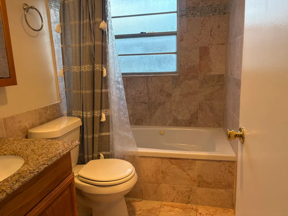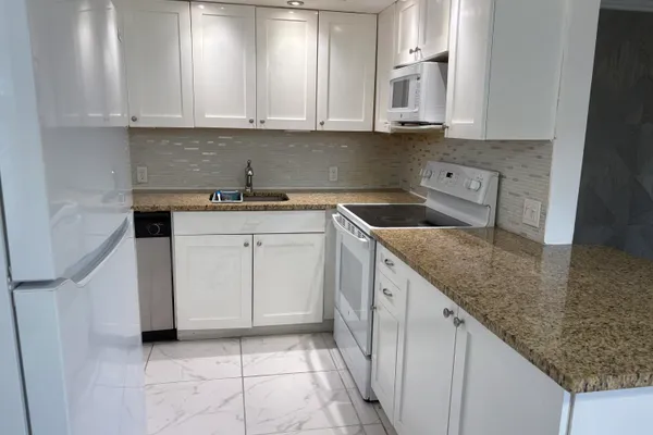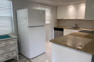 First floor corner apartment Remodeled kitchen with tray ceilings. White shaker cabinets. Tiled kitchen. Laminate flooring in living area. Remodeled bathrooms. Steps to bus, pool & parking. Wi fi & cable included. Out side corner . Surrounded by trees and grass. Private space from your back Steps to bus,pool, parking. Adult active clubhouse with B'way shows, indoor and outdoor pool,Oversized gym