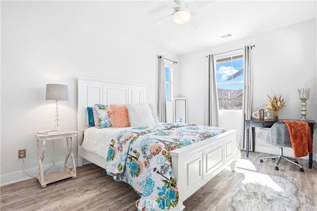 Welcome to 169 Garcilla, a beautifully upgraded home in the exclusive 55+ Iris neighborhood of Esencia in Rancho Mission Viejo! Tucked away on a peaceful cul-de-sac with very little traffic, this home offers the perfect blend of privacy and comfort. The main level features a spacious primary suite with an oversized walk-in closet, plus a secondary bedroom and full bath ideal for guests or an office setup. Upstairs, you’ll find a private retreat with a third bedroom, a full bath, and a loft/bonus area that’s perfect for visiting family or a quiet reading space.The kitchen delivers that modern, clean feel with quartz countertops, a full tile backsplash, and top-of-the-line KitchenAid stainless appliances. The open-concept design connects seamlessly to the living area, creating a bright, airy space for entertaining or relaxing at home. Every detail has been thoughtfully curated: luxury waterproof vinyl flooring, white shaker cabinetry, energy-efficient LED lighting, solar window shades, and a tankless water heater. The two-car garage is finished with direct access from the kitchen for easy unloading and comes prewired with 220V outlet for your EV charger. Other features include storage racks in garage, Culligan soft water system and osmosis, Moen full house water leak detector, trees in backaryd are Cabernet grape vines on archway, lemon, lime, apricot, raised garden bed with water system, and so much more! And yes, this is a smart home, wired with gigabit fiber internet for speed and reliability. The interior of the home was also just painted. Beyond the home, you’ll enjoy a vibrant, resort-style lifestyle with exclusive access to private Gavilan 55+ amenities including The Perch, The Hacienda, The Outlook, The BBQ Barn, and The Getaway. Stay active and connected with a state-of-the-art fitness center, saltwater pool, spa, cabanas, bocce ball courts, yoga studio, fire pits, and social lounges. And when the grandkids visit? You’ll have full access to Rancho Mission Viejo’s award-winning all-ages amenities, arcade, community farms, fitness centers, indoor basketball gym, putting green, Sports park, tennis and pickleball courts, parks, and events that make this community unlike any other.