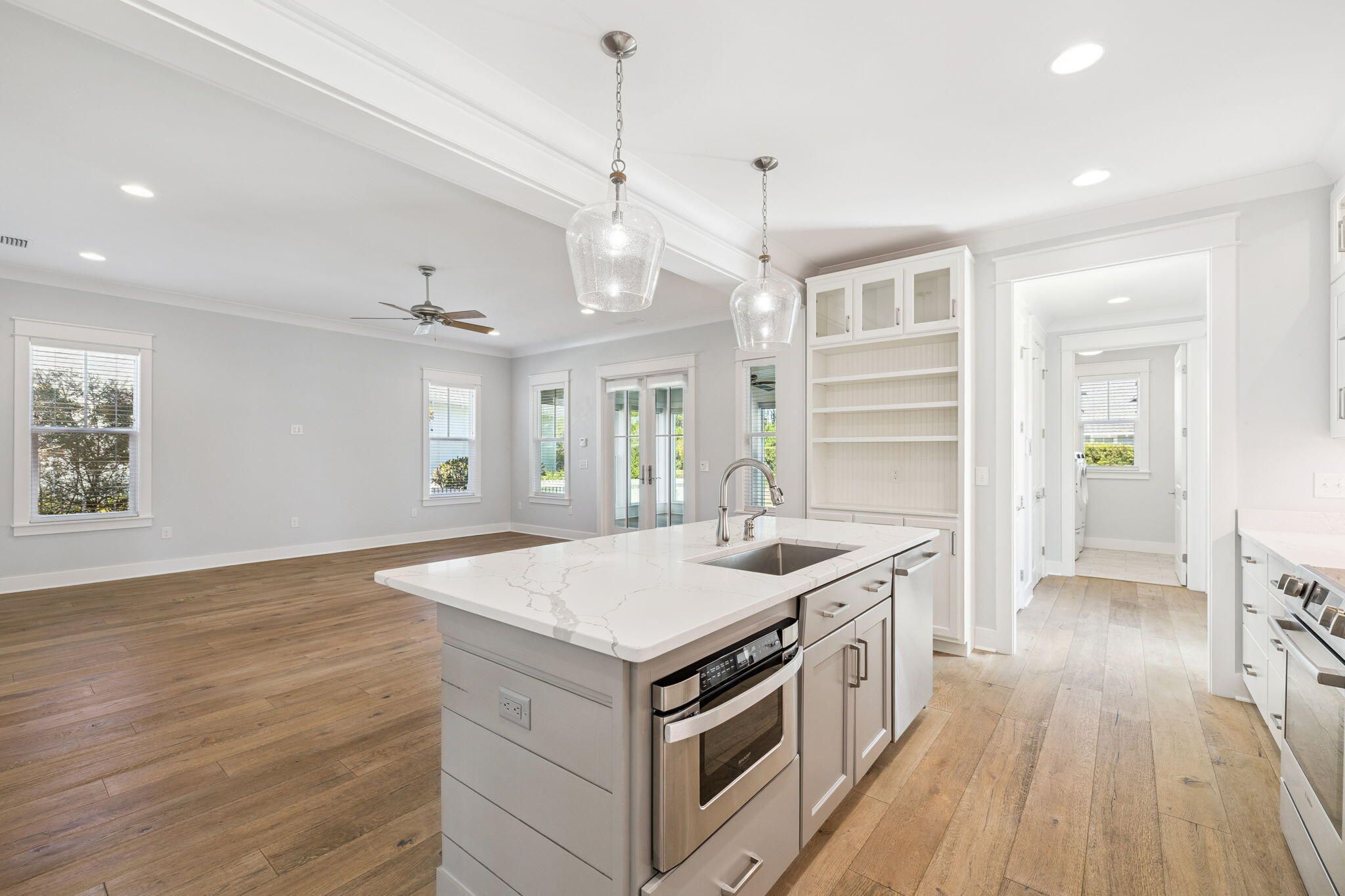 - Built-in Bookcase, Crown Molding, Guest Suite, Kitchen Island, Recessed Lighting, Pantry, Shelving, Paneling/Wainscoting, Washer/Dryer Hookup, Window Treatments, Painted Woodwork