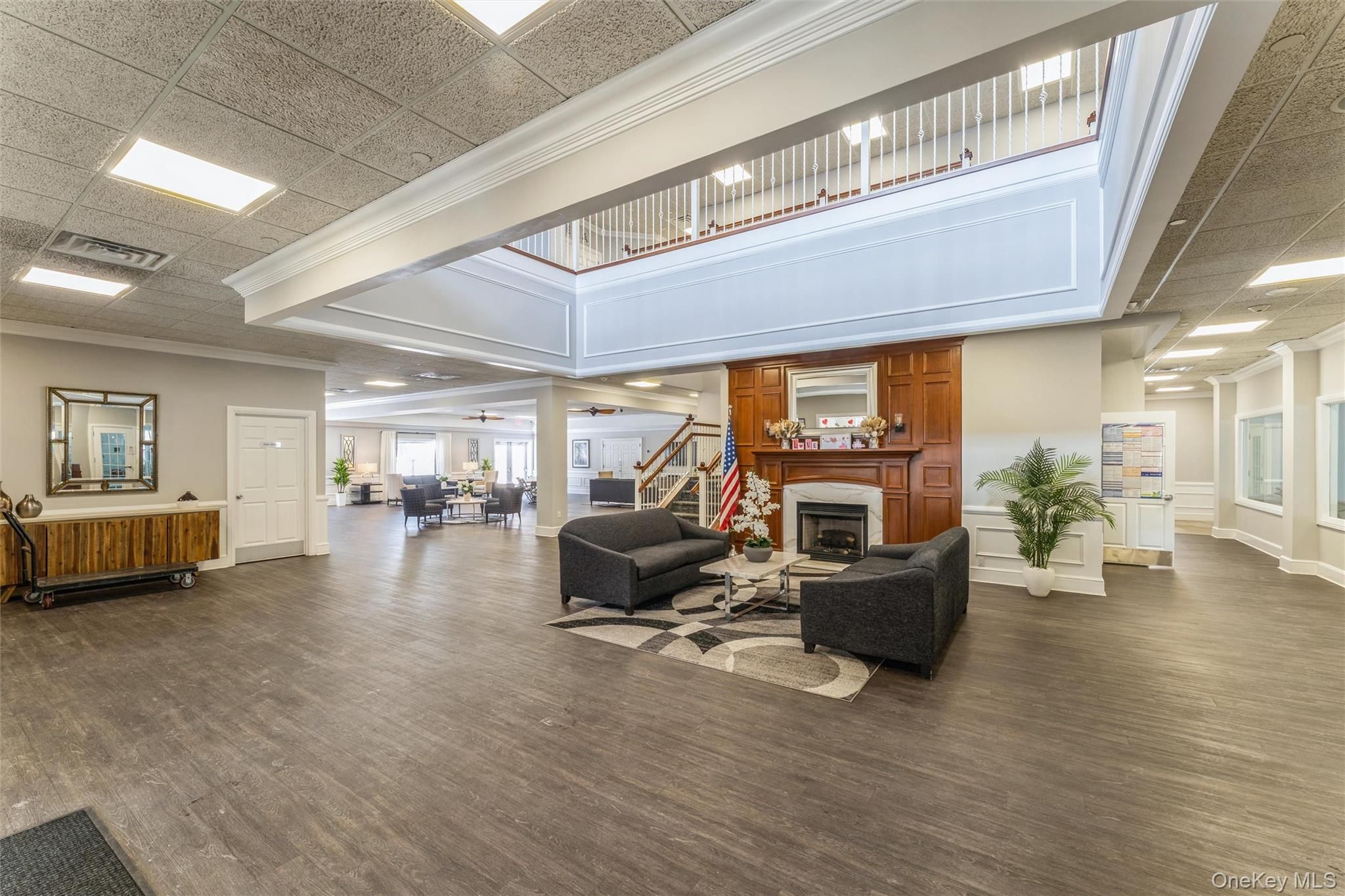 Low maintenance living in a peaceful location! This condo is in a 55 & over gated community with many amenities. Your upper unit has a timeless exterior with lush manicured landscaping & your own welcoming foyer with your private elevator & also a staircase will be waiting for you. You will enter a home that was just completely repainted. The main floor opens to an inviting vaulted ceiling with a living room/dining room flooded with natural light. Open flow to your kitchen featuring upgraded wood cabinets, pantry, granite counters & stainless steel appliances. Gas cooking & heating makes it even better. Gleaming hardwood flooring in the living room/dining areas, kitchen and hallway. Brand new carpet in the two bedrooms. Serene king size primary suite features stately bay window, spacious closet, and large bath. Your 2nd bedroom has sliding glass doors to a relaxing balcony. Laundry area & a 2nd full bath on your bedroom level makes everything even easier. Phenomenal Clubhouse with indoor & outdoor heated pools, a well-equipped gym, a theatre & so much more. Add in all the activities & events and you have found a wonderful place to live! Premier location close to the sprawling Eisenhower Park & Golf Course, stores, restaurants, parkways and public transportation.