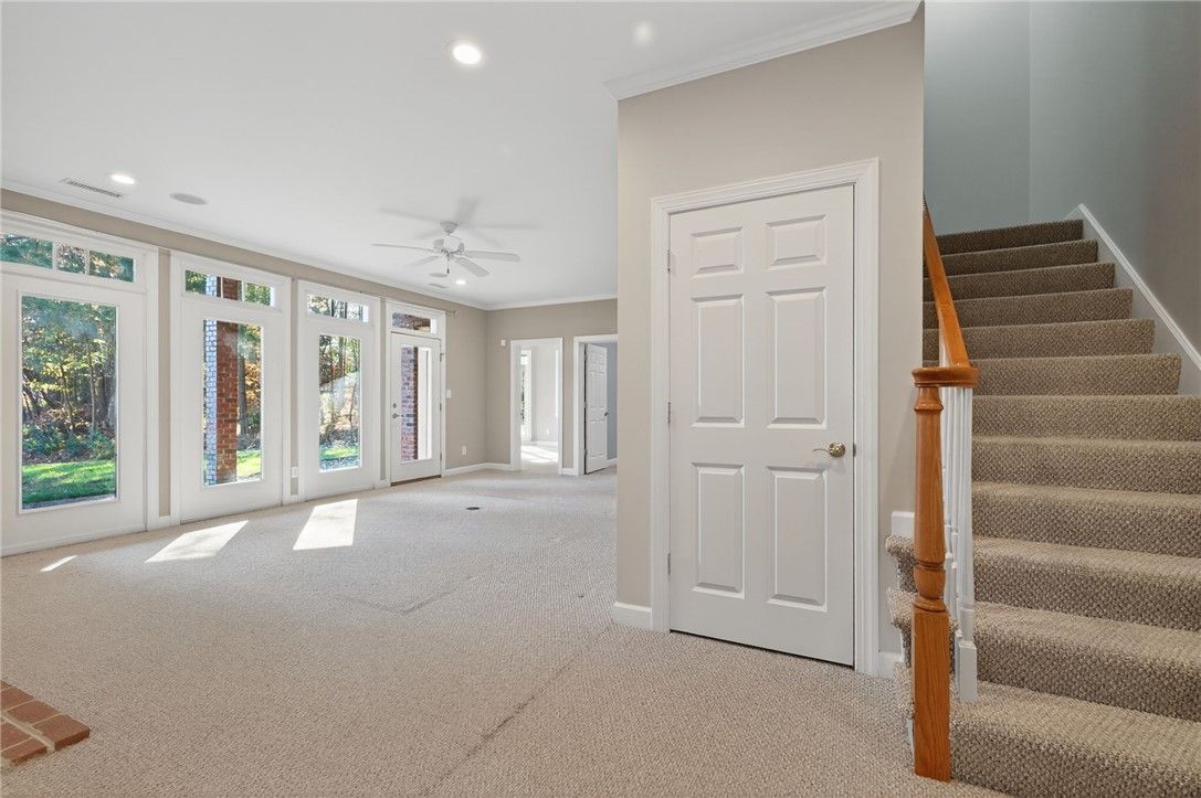 - Attic Access, Wet Bar, Bookcases, Built-in Features, Bay Window, Dining Area, Double Vanity, Eat-in Kitchen, French Door(s)/Atrium Door(s), Granite Counters, High Ceilings, Recessed Lighting, Solid Surface Counters, Walk-In Closet(s)