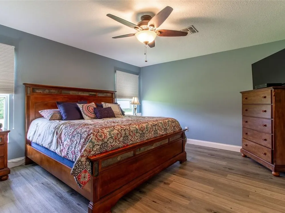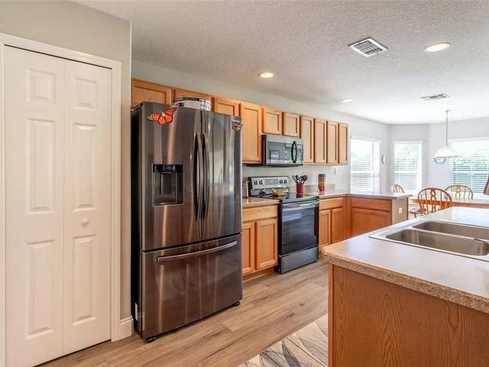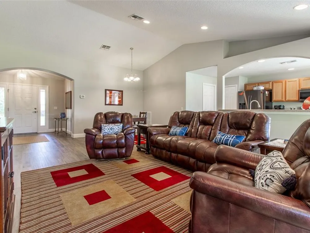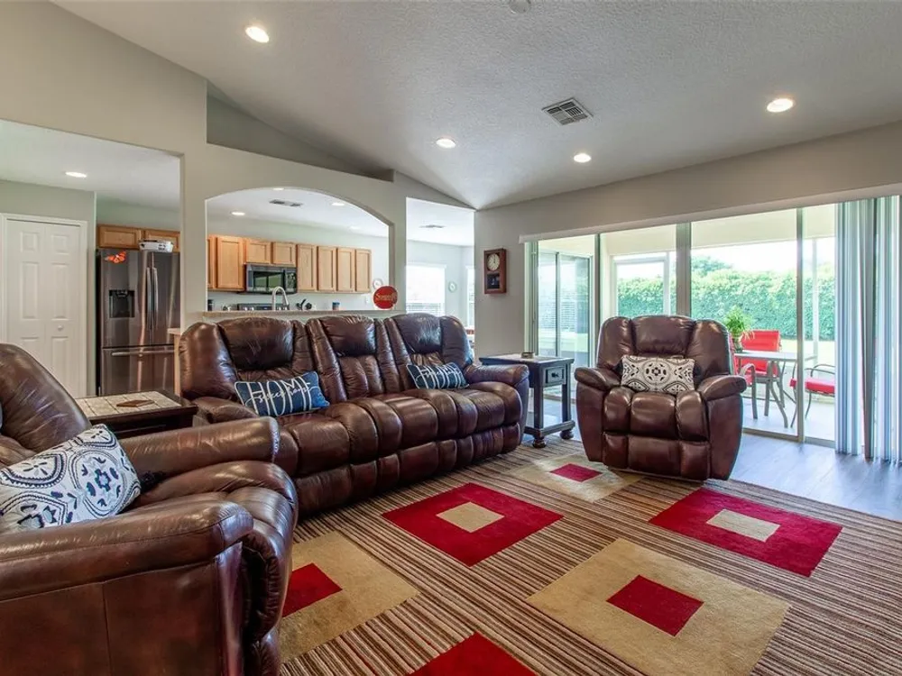 Discover this beautifully maintained 3-bedroom, 2-bathroom Melbourne model home in the gated 55+ community of SummerGlen, offering 1,647 square feet of thoughtfully updated living space. Located deep in the neighborhood for added privacy, this home features a brand-new roof (2024) and washer/dryer (2024), plus a long list of improvements that make it truly move-in ready. Enjoy luxury vinyl plank flooring throughout, freshly painted interiors and exteriors, a spacious open floor plan, and remodeled bathrooms with stylish finishes. The kitchen is equipped with updated stainless-steel appliances and modern touches. Step outside to a private backyard with no rear neighbors, a screened lanai, and a concrete patio—ideal for relaxing or entertaining. The garage has an epoxy-coated floor, and low-maintenance landscaping helps keep yard work simple. The home also includes a new water heater (2022) and a water softener (2021). Located just a short walk from the clubhouse, pool, dog park, and ballfield, you’ll enjoy the full SummerGlen lifestyle. The low HOA covers mowing, edging and blowing, high speed internet, cable, trash pickup and recycling pickup, and use of community amenities and RV storage for a one-time fee. This is your chance to own a turn-key home in one of Ocala’s most sought-after active adult communities.