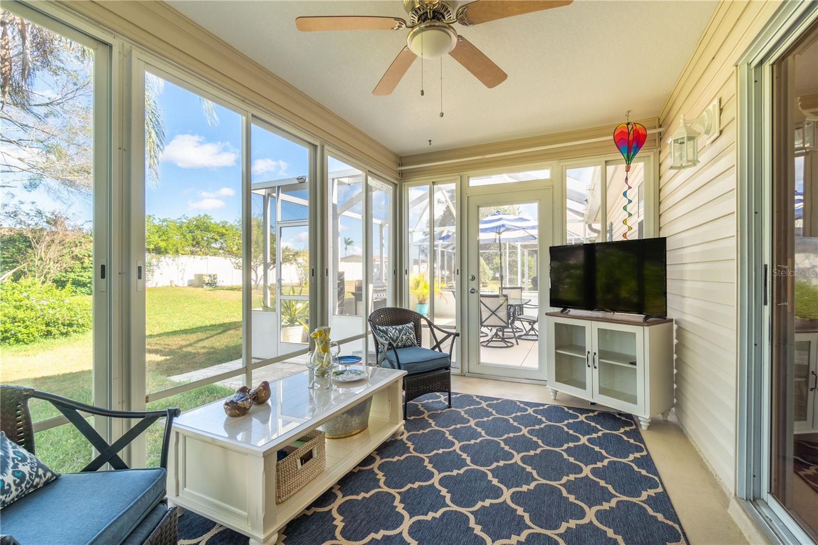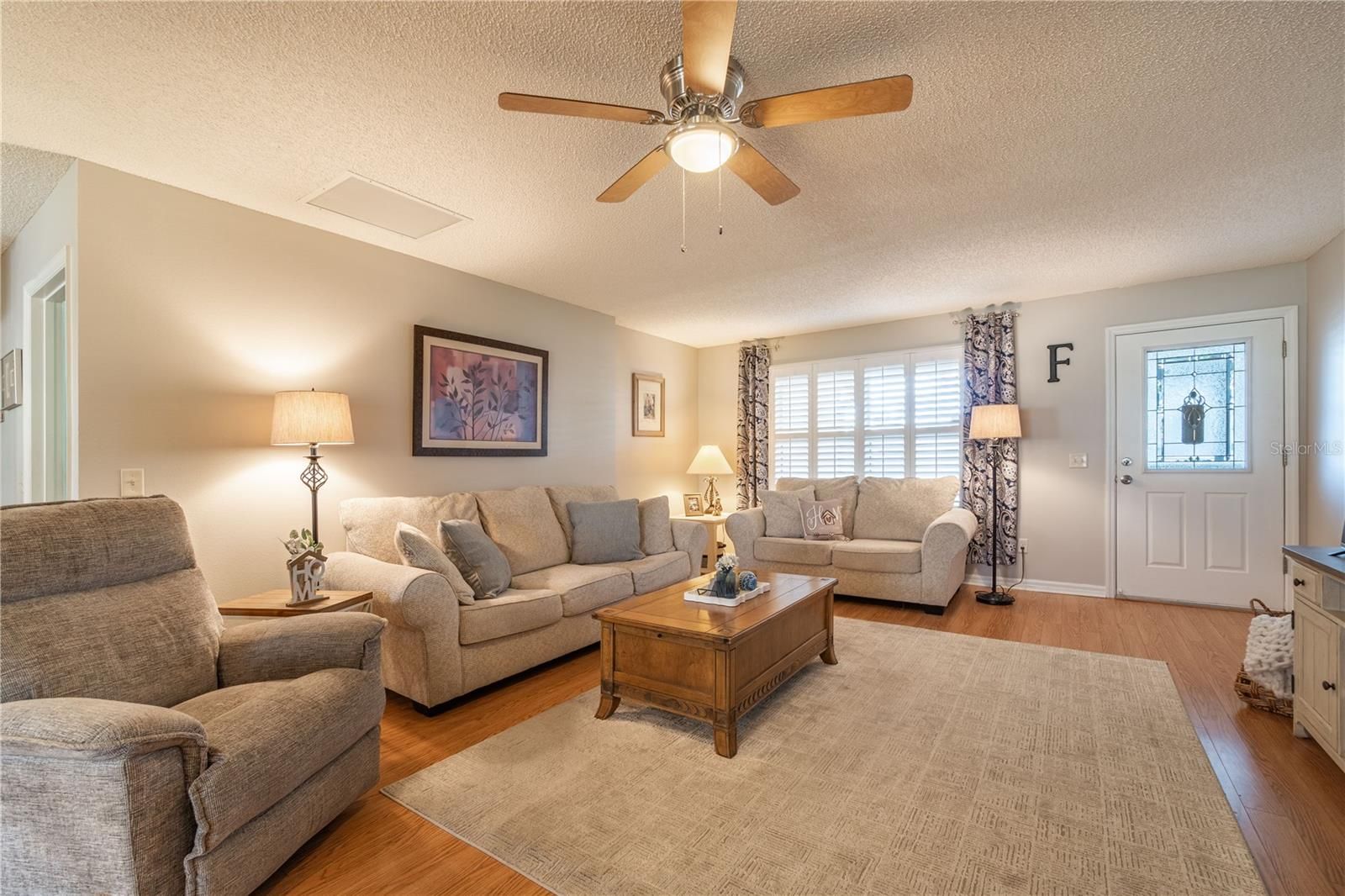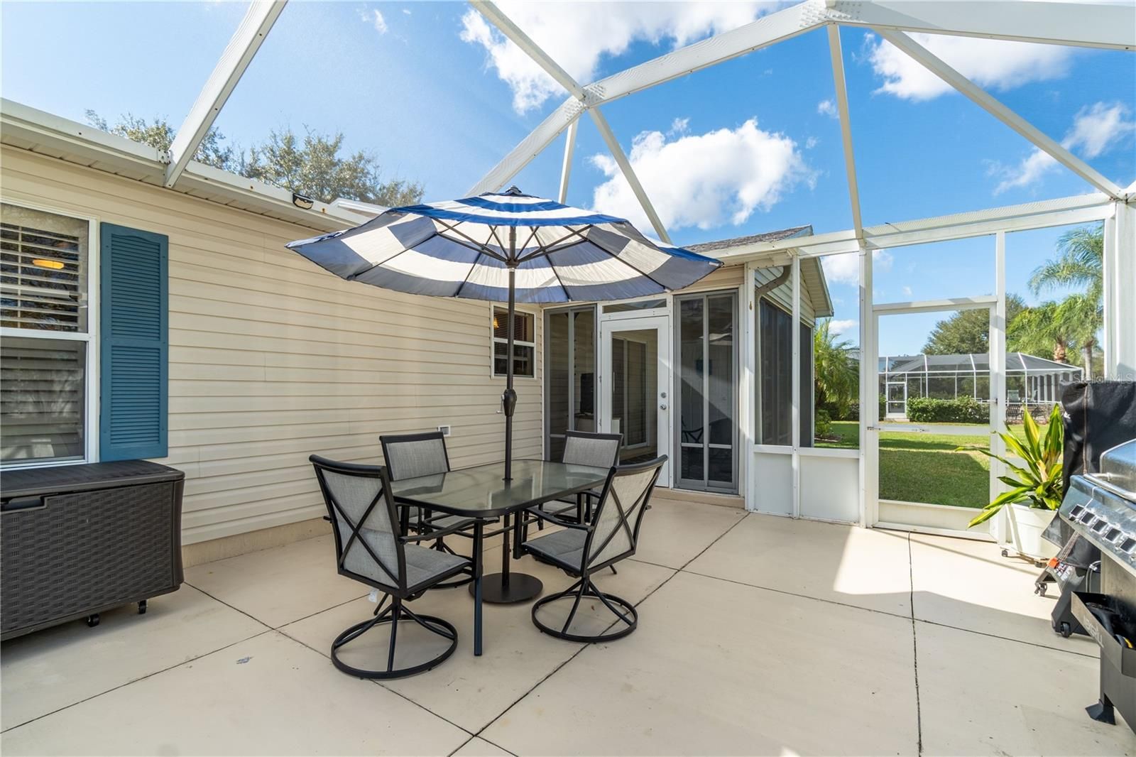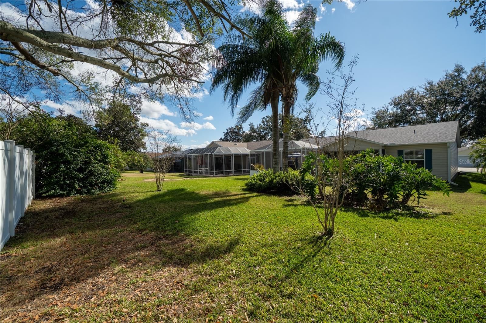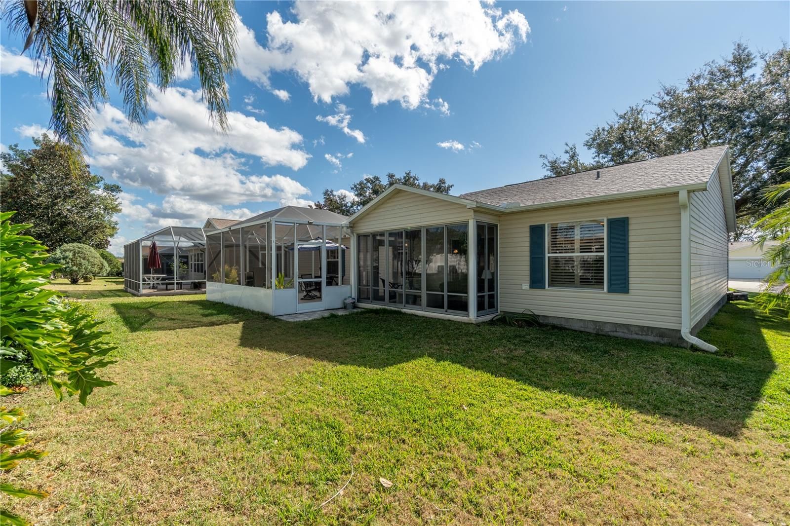 Welcome to 16902 SE 96th Chapelwood Circle, a beautifully upgraded home in The Villages where quality craftsmanship meets exceptional comfort. Inside, you’ll find GRANITE countertops, SOLID WOOD KITCHEN CABINETS, PLANTATION SHUTTERS, and a 5-ft LIVING ROOM EXTENSION that adds valuable space for everyday living and entertaining. Both bathrooms feature solid-surface countertops and UPGRADED walk-in showers for a refined, modern feel. A NEW whole-home WATER FILTRATION SYSTEM installed in 2025 provides enhanced water quality and peace of mind. Step into the spacious lanai, upgraded with floor-to-ceiling sliding enclosed windows, allowing you to enjoy the space year-round while maintaining natural light and beautiful views. Beyond the lanai is an impressive 21' x 18' oversized birdcage, offering an ideal outdoor retreat. With HUGE BACK YARD.... over 50 feet from the lanai to the end of the property, you’ll enjoy added privacy(WITH NO BACK NEIGHBORS, NO KISSING LANAI) and an incredible opportunity...PLENTY OF ROOM to build a FUTURE POOL—a rare advantage in this area. Featuring top-tier finishes, expanded living space, and exceptional outdoor potential, this home is move-in ready and perfectly positioned for the Villages lifestyle. Location is 5 minutes to pharmacy, grocery store, gas station, restaurants and VA Clinic! Rec Center Mulberry Grove and Springdale Pool Rescreened birdcage in 2023 Roof 2021, AC 2015 & HWH 2025....NO BOND!
