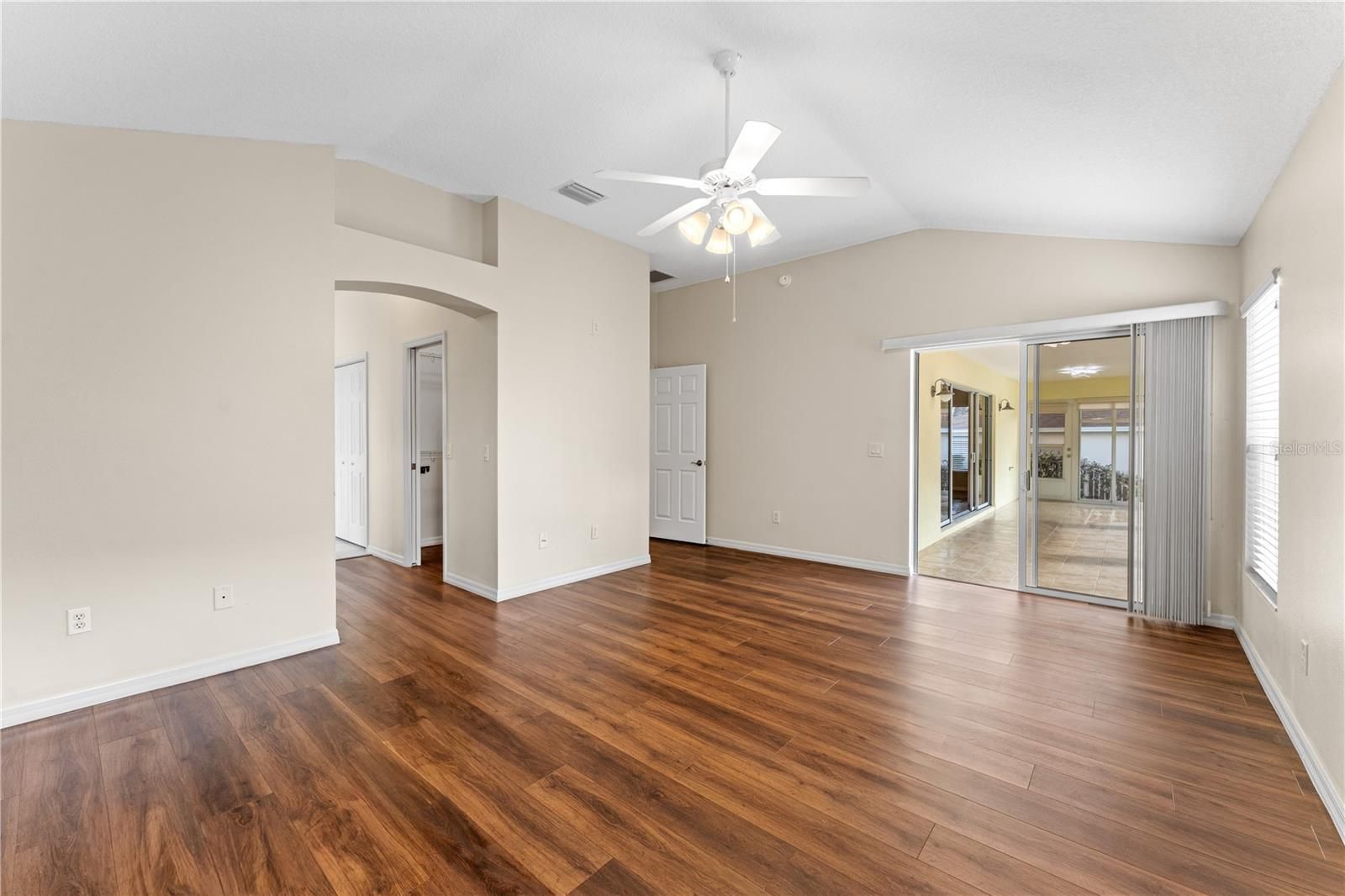 - Ceiling Fan(s), Eat-in Kitchen, High Ceilings, Kitchen/Family Room Combo, Open Floorplan, Main Level Primary, Split Bedrooms, Thermostat, Vaulted Ceiling(s), Walk-In Closet(s)