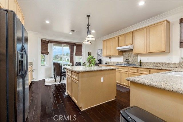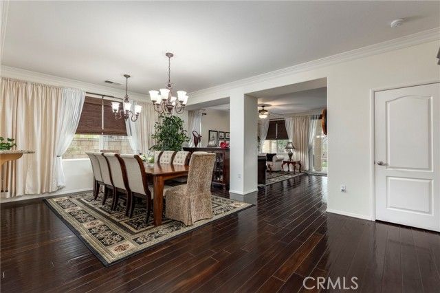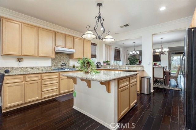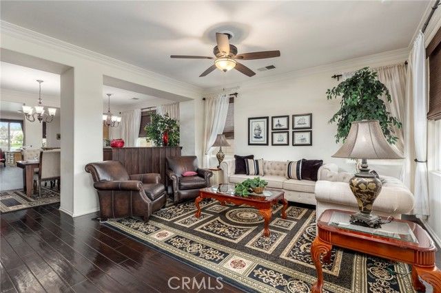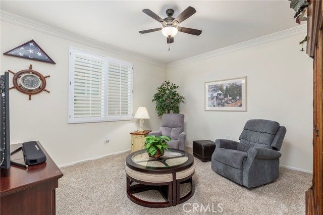 Beautiful LAUREL I Model (2126 SF, 2 BD + 2 BA + Sitting Room) perfectly located on a "corner" lot with no home behind and only to one side, in the highly desirable community of K. Hovnanian's FOUR SEASONS - BEAUMONT, Southern California's Elevated 55+ ACTIVE ADULT COMMUNITY. The many UPGRADES and FEATURES Include: Formal Entry area, RICH MAHOGANY WOOD FLOORING ($22,00) throughout, plus Neutral Carpeting the bedrooms, Plantation Shutters, Crown Molding, Large Gourmet Entertainers Kitchen with Plenty of Maple tone Storage Cabinets and Counter Space, Breakfast Bar, Extra Large Island in the Center ALL w/GRANITE Counters, Sharp, Black, Built In Kitchen Appliances, Cozy breakfast Nook provides views of the San Gorgonio Mountains , Natural Light shines in from the front Glass Slider to brighten the Kitchen Breakfast Nook, Rich Wood Mantle Fireplace in Living Room, Spacious Primary Bedroom Suite w/Fireplace upgrade and Mounted Flat Screen ROKU TV Included, Upgraded to Slider to Backyard, Primary Bath w/Spa Tub, Walk In Closet w/Built In Closet World Organizers,Dining room with Double Custom Chandeliers, Custom Ceiling Fans throughout, Guest Bedroom w/dedicated Guest Bath, NEWER HEATING AND AIR CONDITIONING SYSTEM, Indoor Laundry Room with Washer and Dryer Included. The lovely backyard enjoys a lush woodsy view, a relaxing covered patio area and backyard lined with colorful Roses and Fruit Trees. Front Yard Maintenance is Included in the HOA Dues. This is a lively and variety filled community with endless opportunities for new friendships and countless activities. The HOA amenities include 3 pools/spa hot tub, 3 clubhouses, fire pit, paddle tennis, bocce ball, billiard room, card room, movie theater, banquet facilities, 3 fitness centers, BBQ area, pickle ball courts, restaurant, beauty salon, many social groups, guard gated, controlled access security, dog park, and hiking trails. Close to shopping, medical facilities, Cabazon Premium Outlet, Morongo Casino, and Palm Springs. EVERY DAY FEELS LIKE A VACATION!