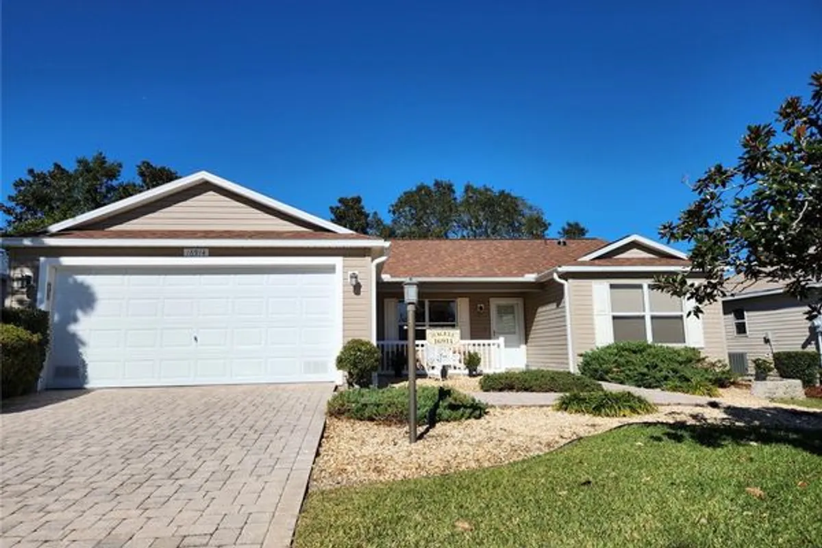 $0 Bond Balance; AMARILLO OPEN-FLOOR concept; HUGE BACKYARD- Enough ROOM FOR A POOL or plenty of space to enlarge the home; Village of Woodbury; MOVE-IN READY; Originally the MODEL HOME; One-Owner; Immaculately Clean and Well-Loved; Looks like a new home; New Roof 2021; Water Heater 2018; Air Conditioner (2020?); Newer Dishwasher, Washer Dryer and Refrigerator; QUARTZ Countertop in Kitchen; Large GRANITE sink; WHOLE HOUSE WATER SOFTENER keeps the faucets clean, helps with laundry and doesn't leave spots on your shower doors; Pavers in driveway, walk-way and front porch; Storm Door, Neutral Paint Colors; Vaulted Ceiling; Clean Berber carpet with a unique design; Laundry has pantry cabinets; EN-SUITE Primary Bath with DOUBLE SINK; Private TOILET CLOSET; HIS/HERS WALK-IN Closets; Bonus Room has windows throughout looking onto a HUGE private back yard with a vinyl fence at the back; Enclosed Lanai; Easy access to shopping, restaurants and medical offices on 42 and 441; (Publix Plaza, VA CLINIC, Mulberry Recreation Center; Nancy Lopez Legacy Championship Golf Course, Golf Cart ride to Sumter Landing or Spanish Springs for music and dancing, Chatham or Savannah Recreation Centers, Claim this house so you can start enjoying your retirement in The Villages. Bond Annual Maintenance Fee is included in yearly taxes.
