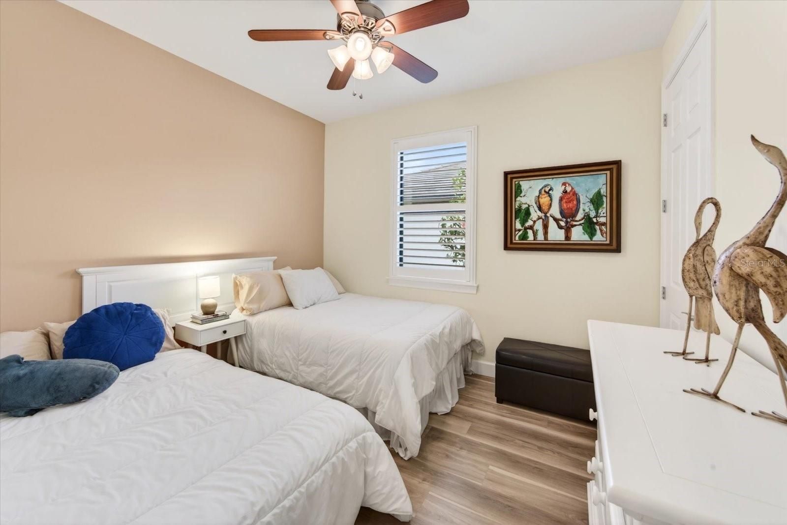- Ceiling Fan(s), Crown Molding, Eat-in Kitchen, High Ceilings, In-Wall Pest Control, Kitchen/Family Room Combo, Open Floorplan, Main Level Primary, Solid-Wood Cabinets, Split Bedrooms, Stone Counters, Thermostat, Tray Ceiling(s), Walk-In Closet(s), Window Treatments