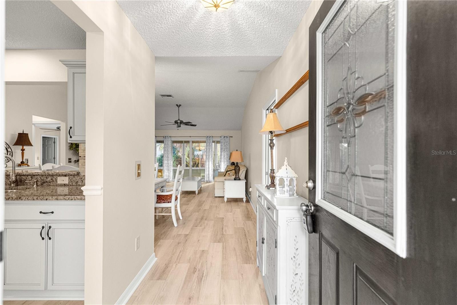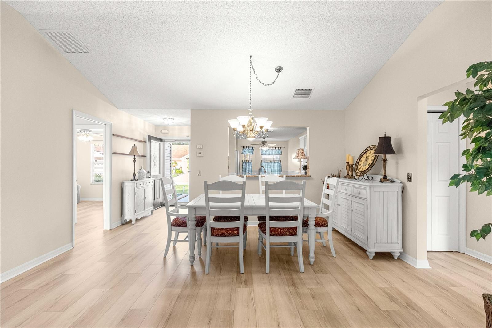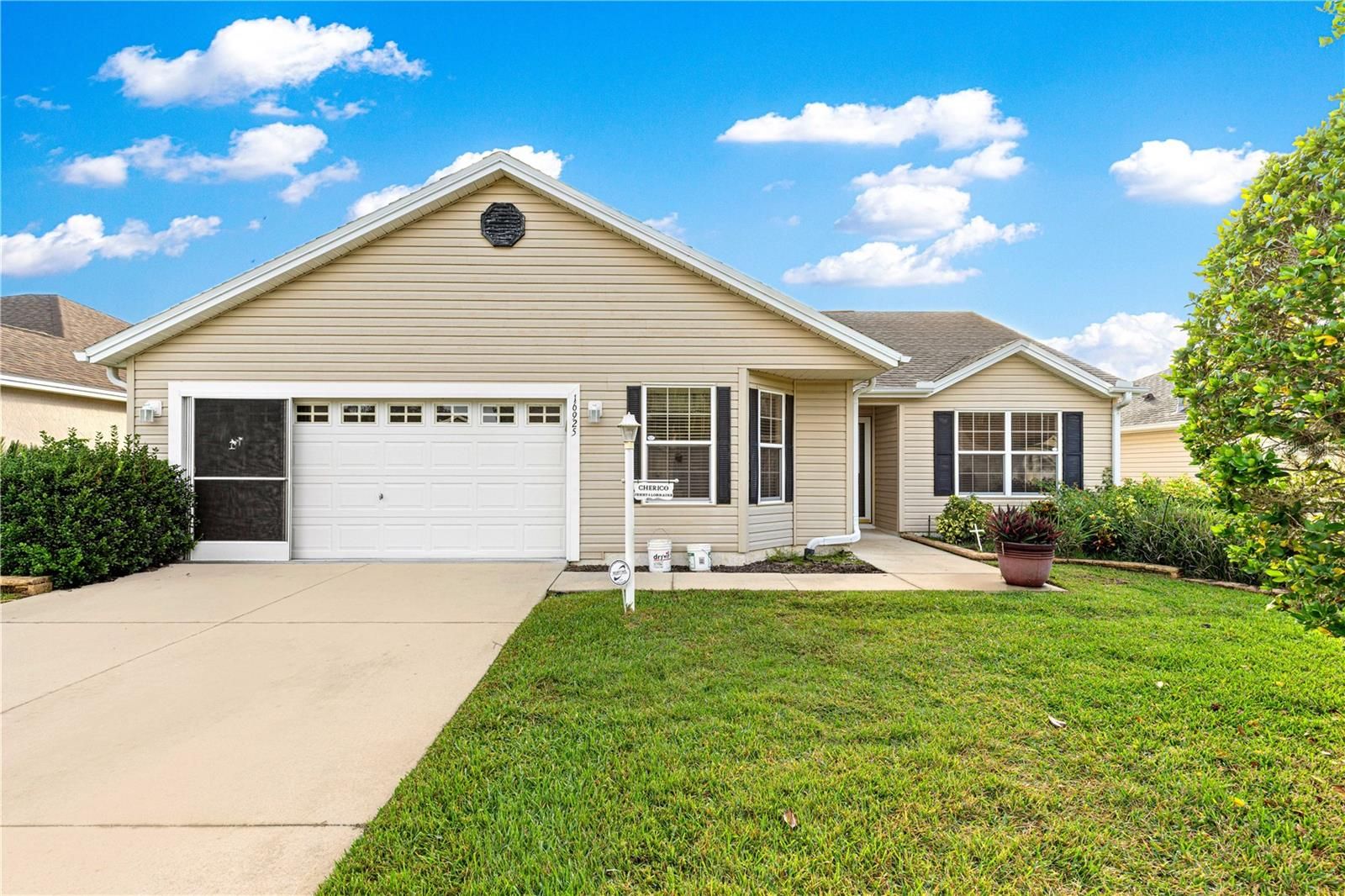 New Luxury Vinyl Flooring !! Freshly Painted !! Roof 2020 !! HVAC 2015 - Start living your Village life style with this partial furnished 3 bedroom, 2 full bath designer home - The home has been recently painted throughout and new vinyl flooring was installed with the exception of the bathrooms that offer tiled flooring - As you enter the home you will feel the warmth and inviting floor open plan, The home is being sold partial furnished, The living area has high ceiling and sliding glass doors that lead out to the Enclosed Lanai - The Kitchen offers white cabinet with decorative molding, Tiled Backsplash, Granite Counter Tops, dual stainless steel sink, Stainless Steel Refrigerator and Dishwasher, Gas Range, a solar tube with a light, and a breakfast nook - The split floor plan is ideal for having your friends and family come visit - The owners Bedroom has a walk in closet, and ensuite bath, with step in tiled shower, with a grab bar, Granite Counter Tops with double sinks - The Laundry Room is located just off the owners bedroom both washer and dryer convey - Both guest bedrooms have closets and ceiling fans - The Guest bath offers a tub/shower combo - Nestled in the Village of Calumet Grove, near Lopez Legacy County Club, one of the finest Championship golf courses in The Villages®, First Responders Recreation Center - where you can enjoy Beach Tennis, Walk Away the Pounds club, card and board games and so many other activities - Mulberry Grove offers Publix®, VA Outpatient clinic, Walgreens® and so much more - Low Bond Balance of $2010 - Start living your retirement dream today!