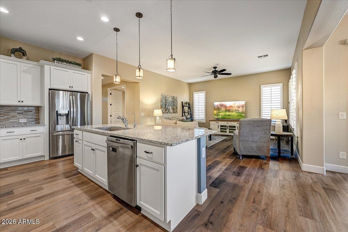 Beautifully upgraded Home located in the highly desirable PebbleCreek 55+ Active Adult Community. Open Floor Plan with split bedrooms for privacy plus den/office, Many upgrades throughout the home (see attached document), Primary Bedroom and Guest Bedroom offer private bathrooms, with the primary featuring vanity with dual sinks, large custom shower and walk-in closet. Attached 2-car garage with epoxy flooring. Whole home water filter system. Come and enjoy the World Class Amenities and the Wide-Open Spaces of the PebbleCreek Community, including (3) 18-hole Golf Courses, Walking Trails, Pickleball ball (40+ courses), Tennis, Bocce Ball, Indoor/Outdoor Swimming Pools, Theaters, Restaurants (w/catering) Ballrooms, Fitness Centers and more!!!
